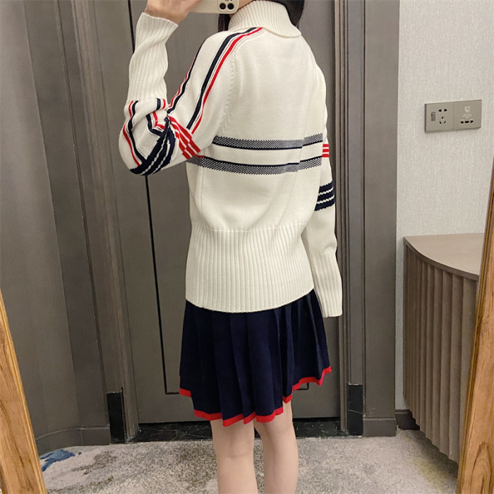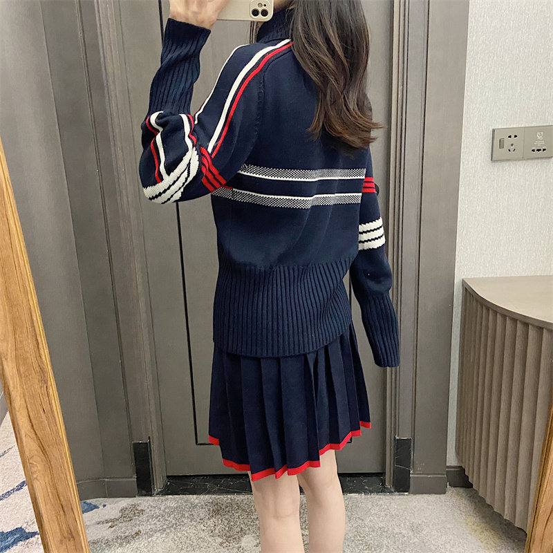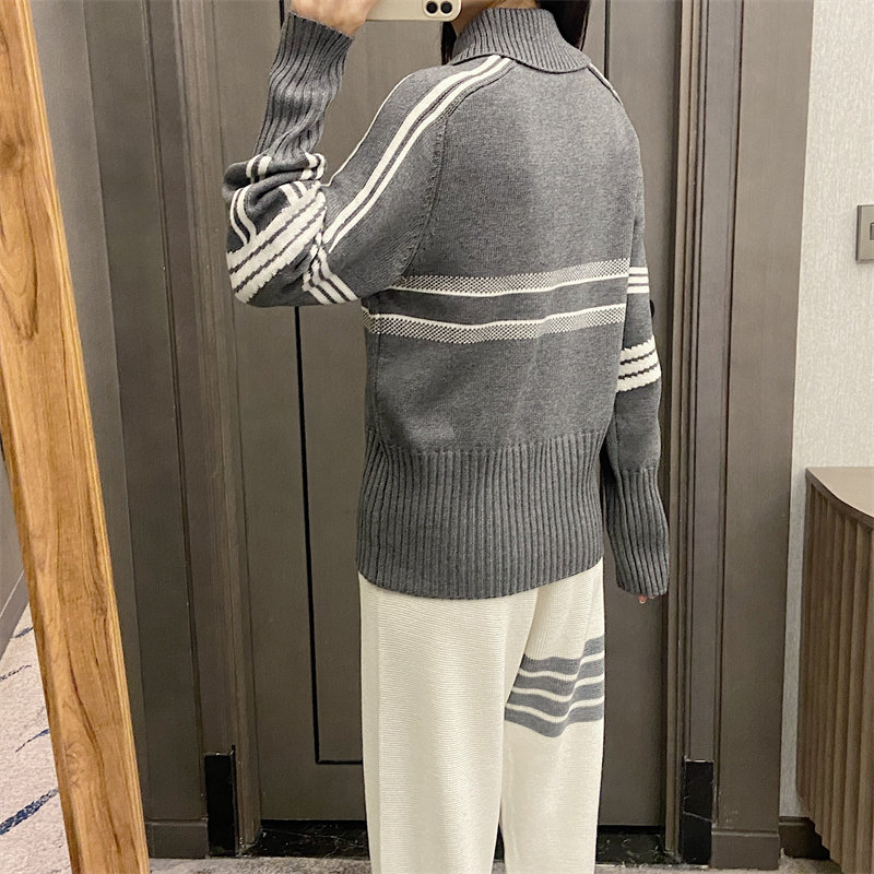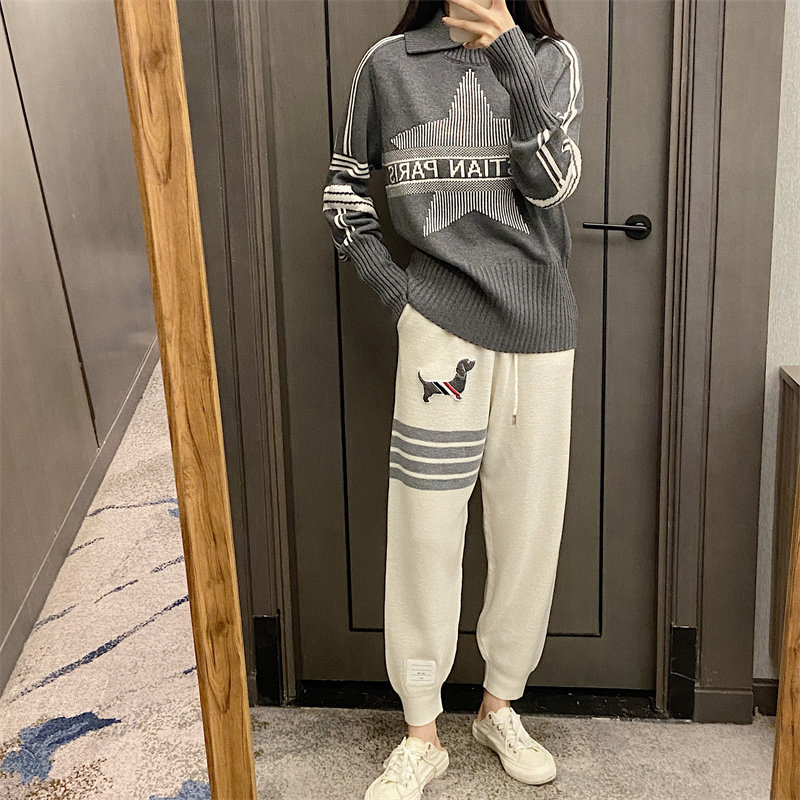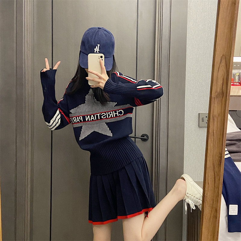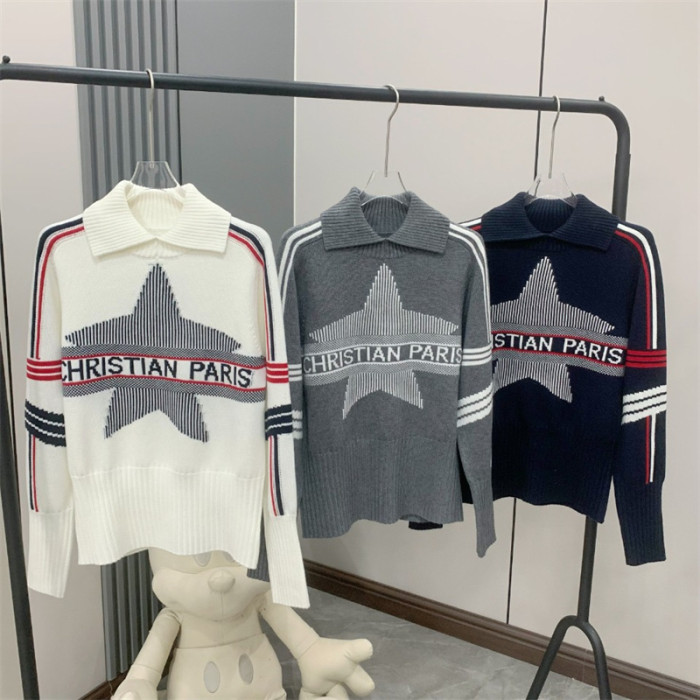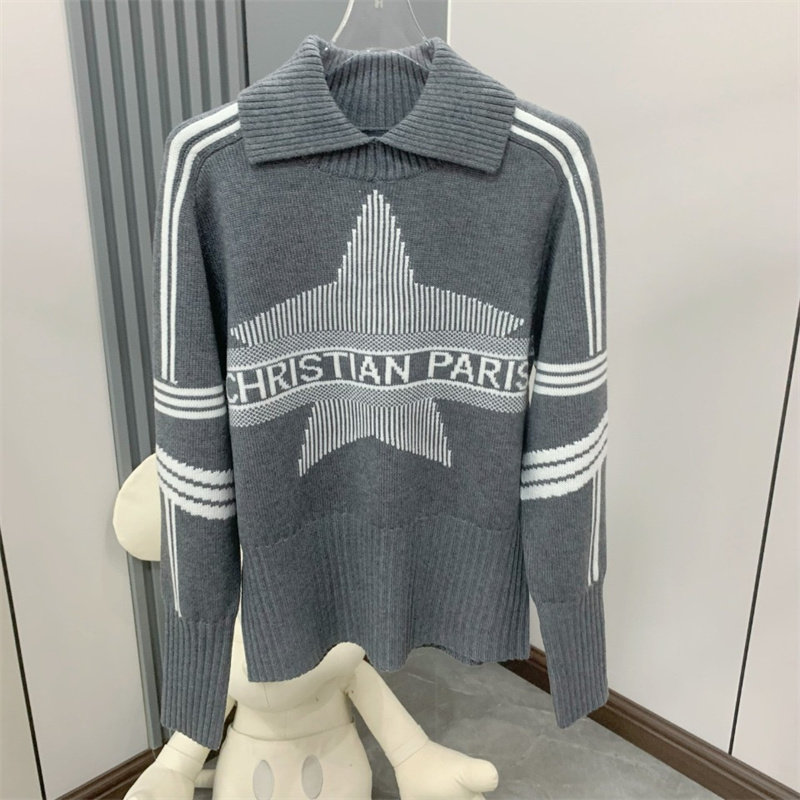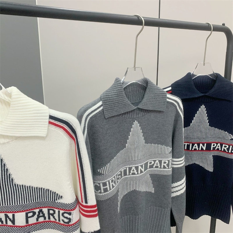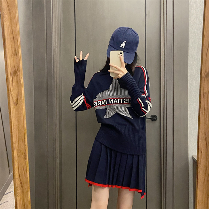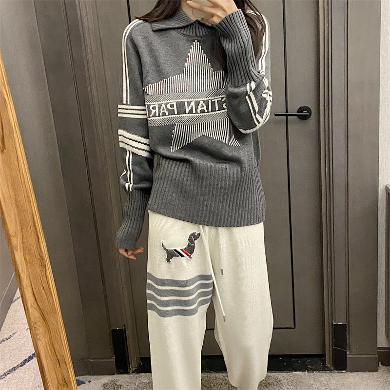25秋冬法式繙領小衆設計感打底衫毛衣五角星字母提花針織上衣百搭