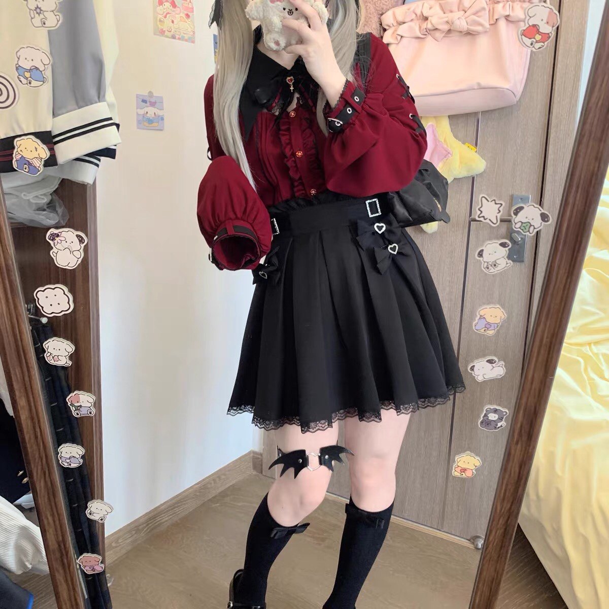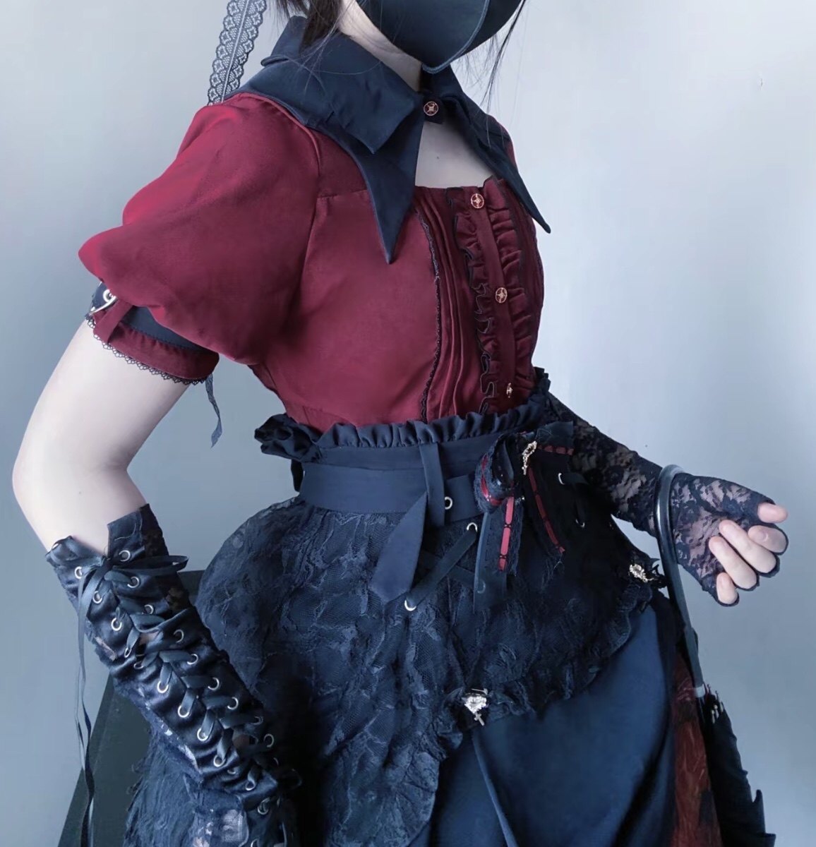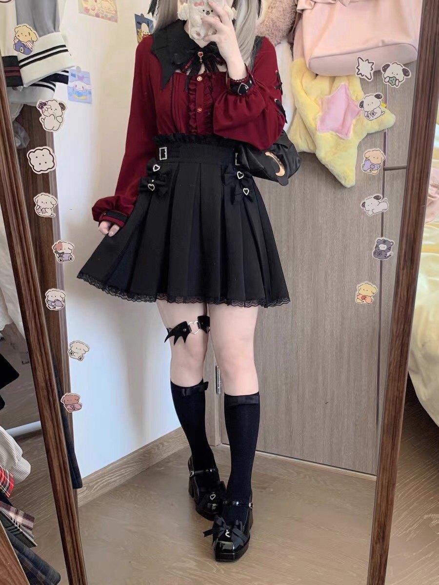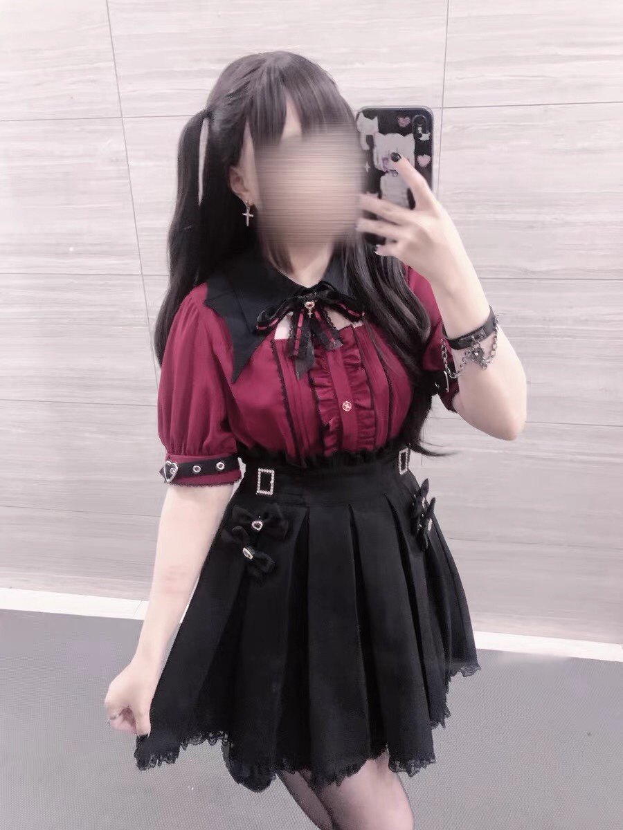 暗黑萬聖節吸血姬甜酷蝙蝠蕾絲領子黑紅色長短袖襯衫上衣