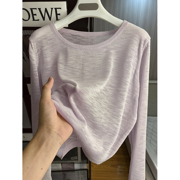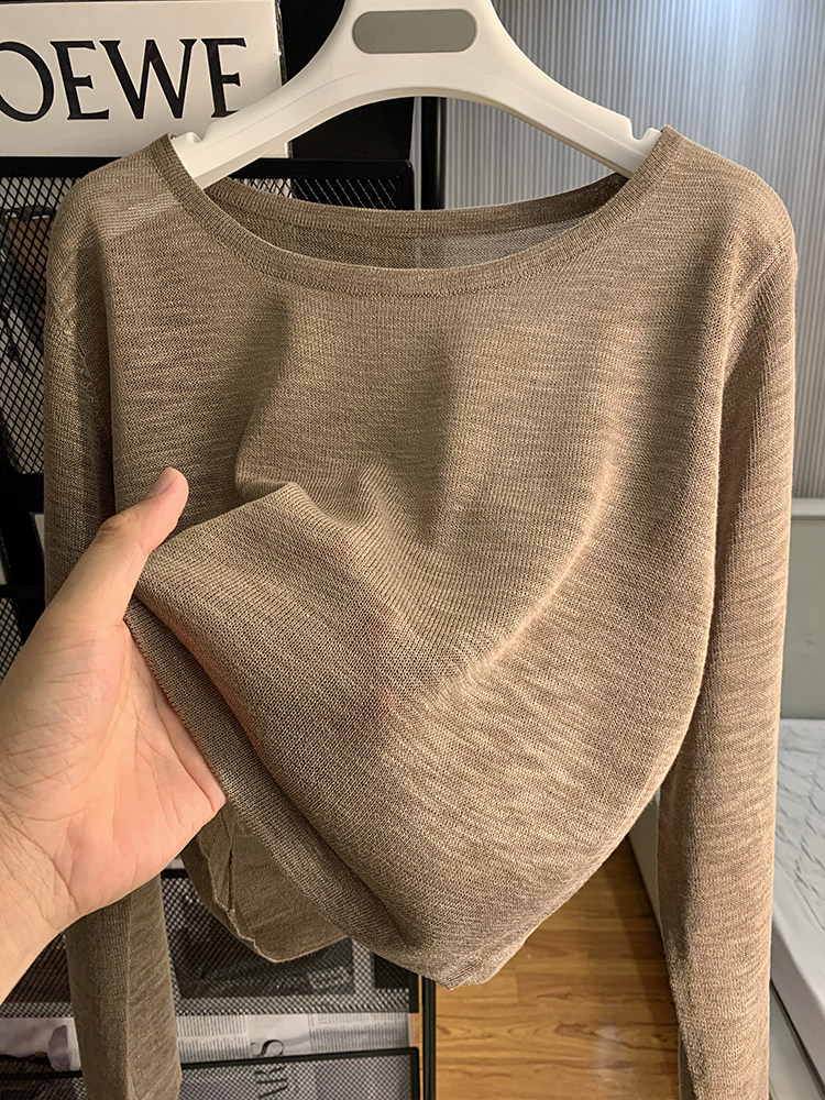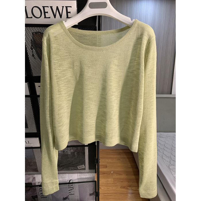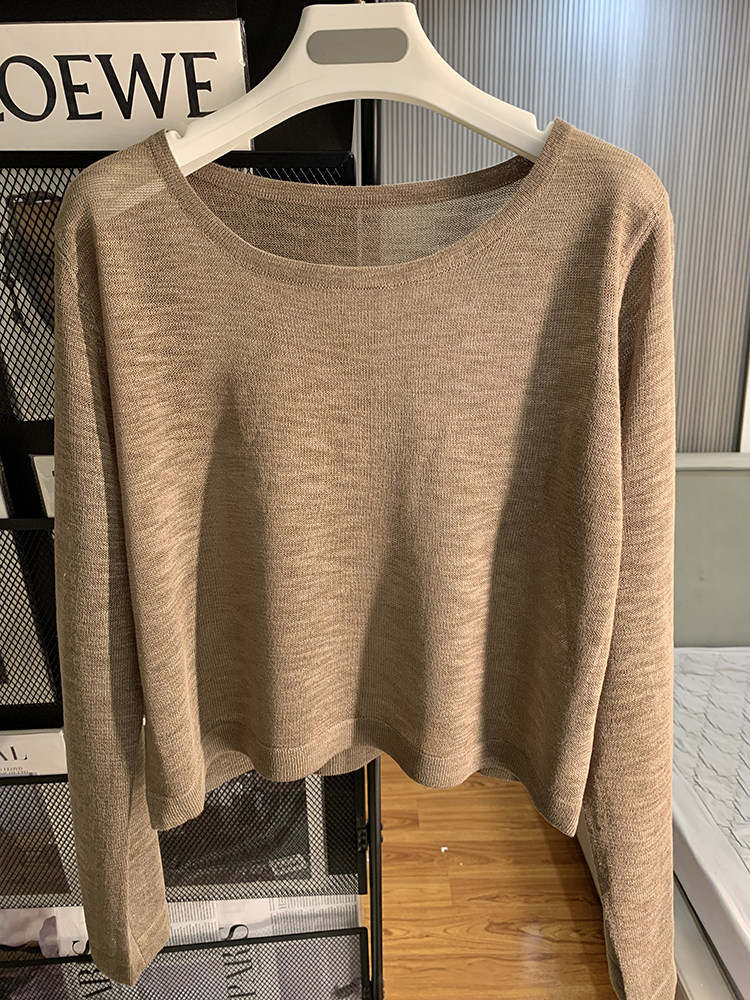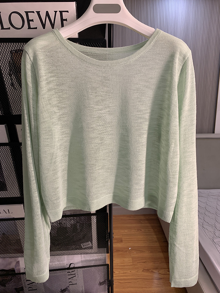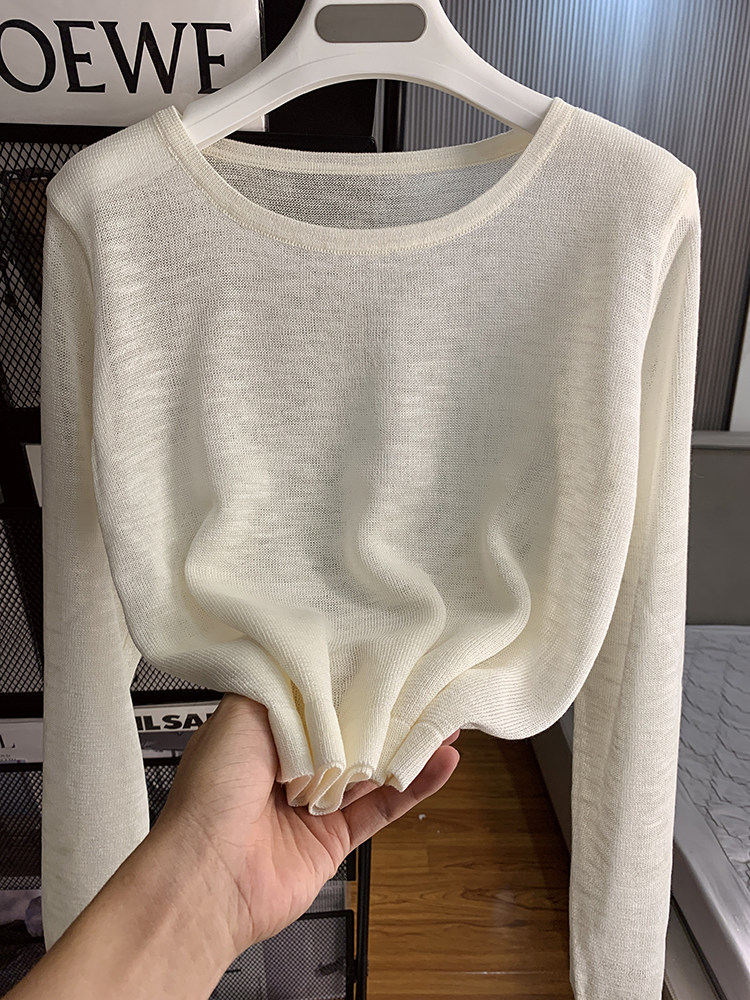 秋季簡約風純色休閒針織衫夏裝薄款氣質小衆百搭長袖防曬衫上衣女