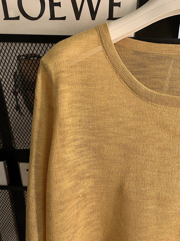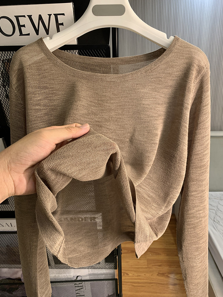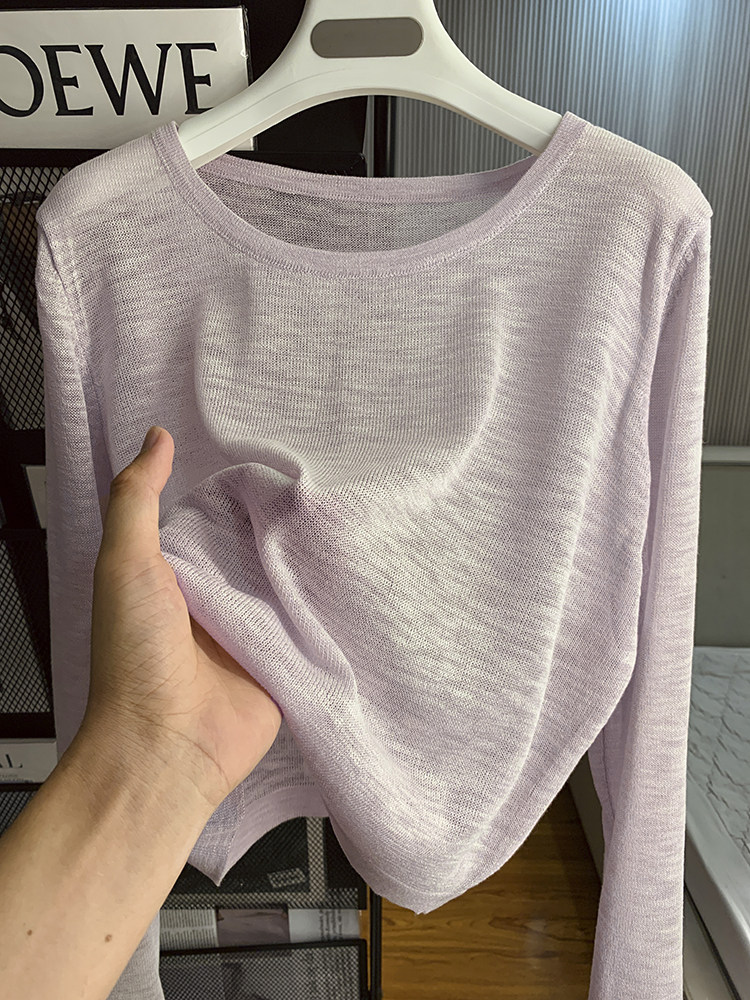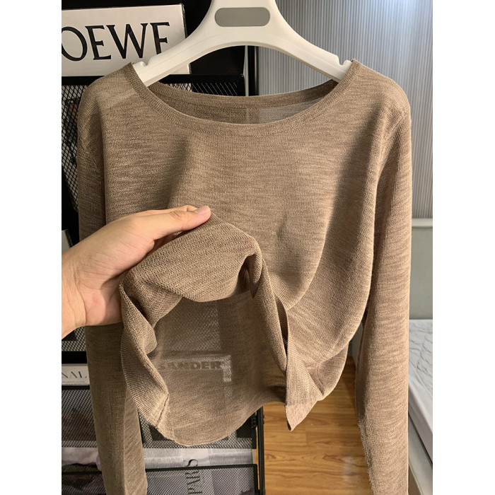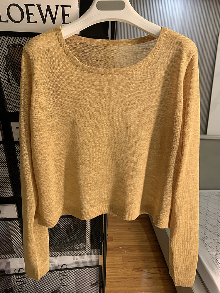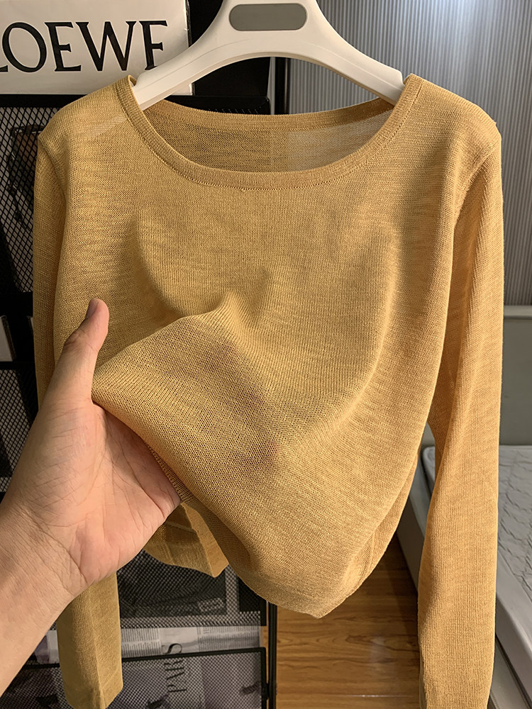 秋季簡約風純色休閒針織衫夏裝薄款氣質小衆百搭長袖防曬衫上衣女