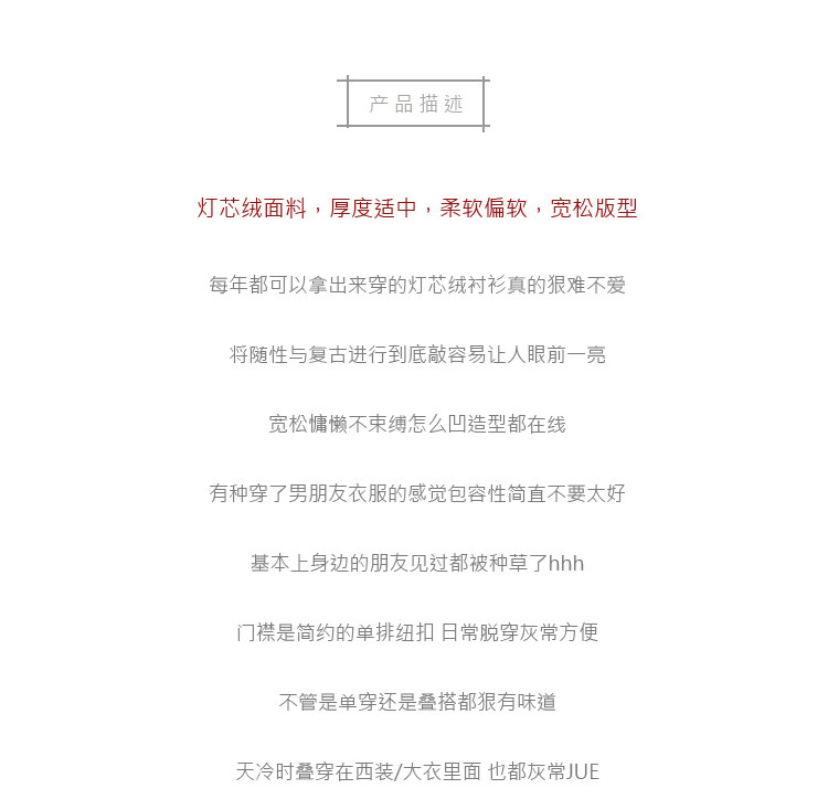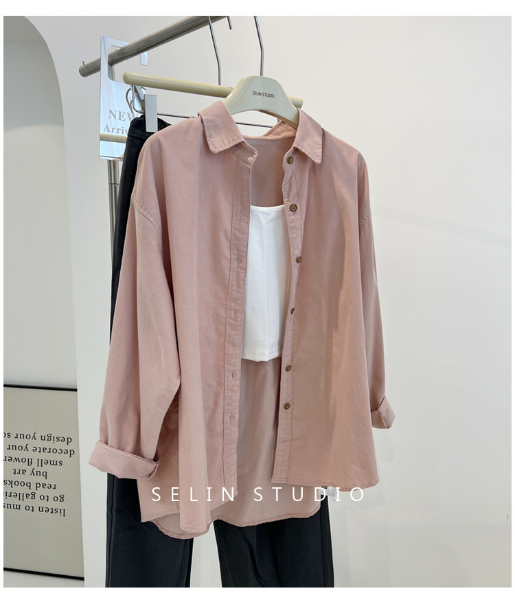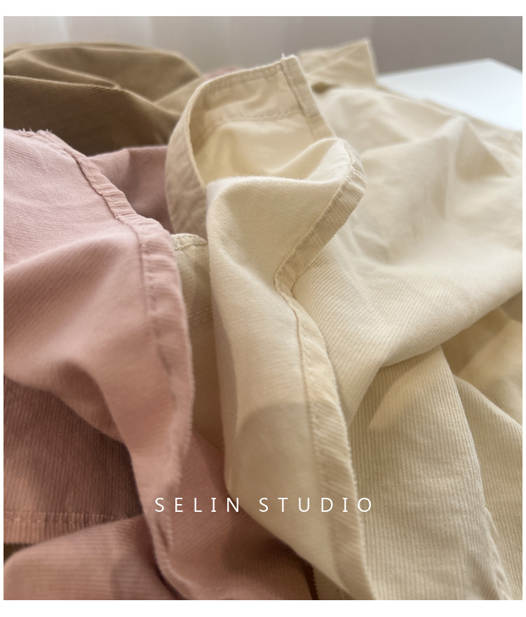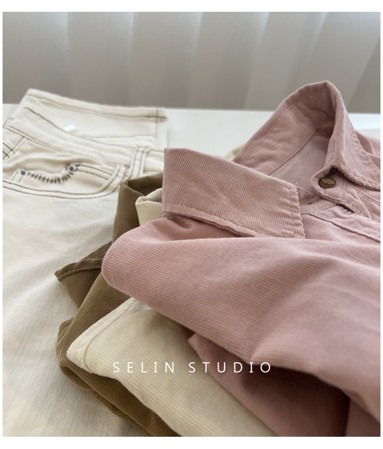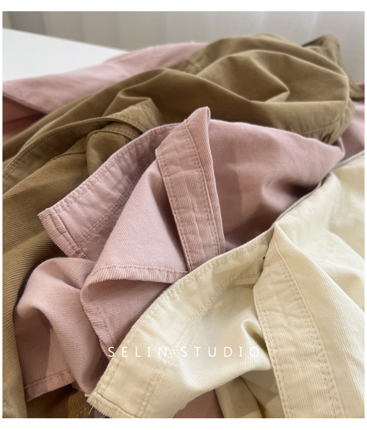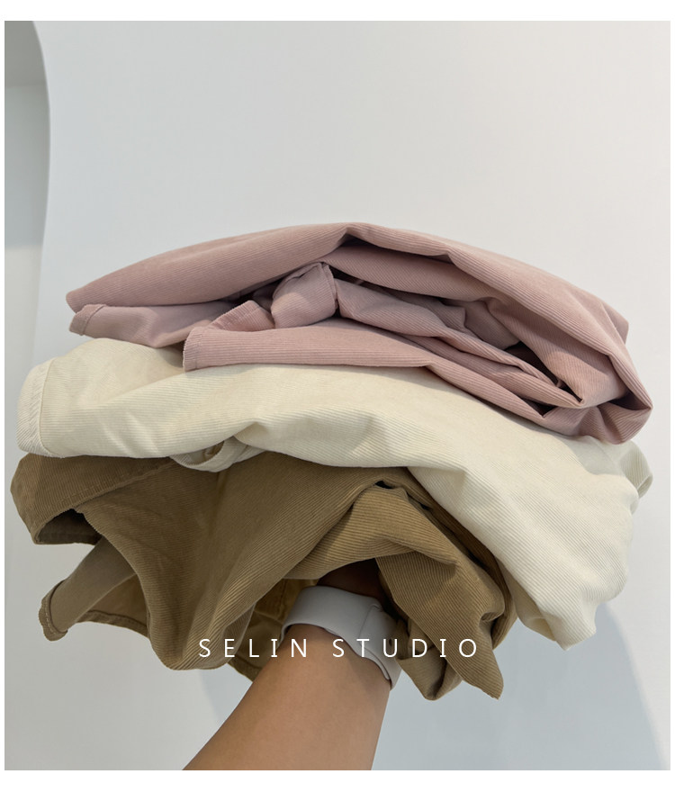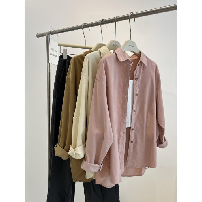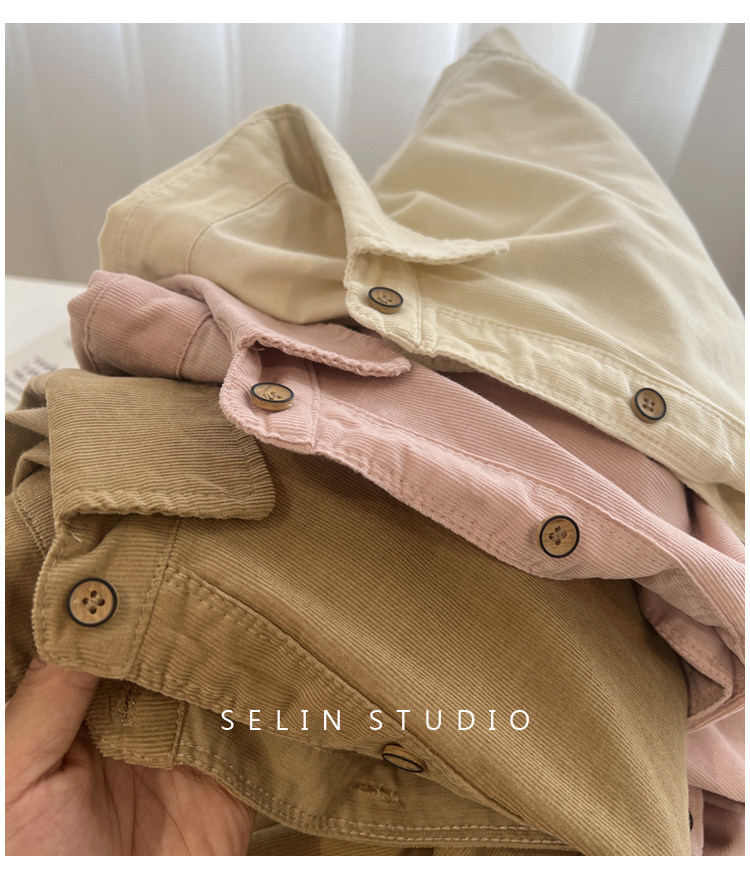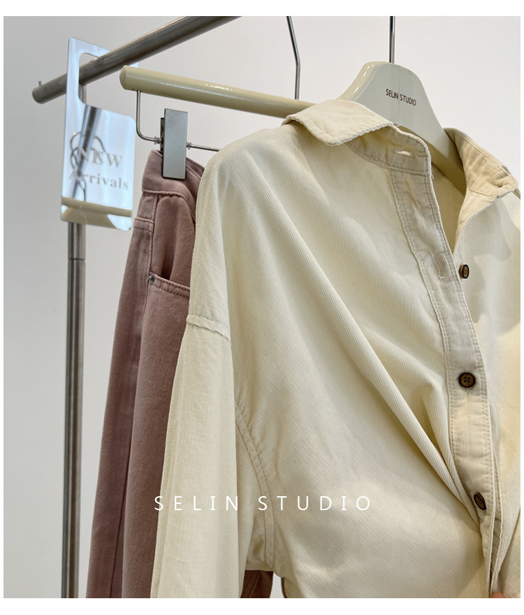 復古燈芯絨繙領長袖襯衫女!韓系曡穿寬鬆慵懶中性BF風襯衣薄外套