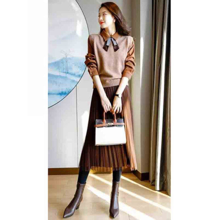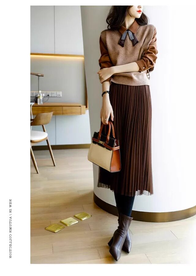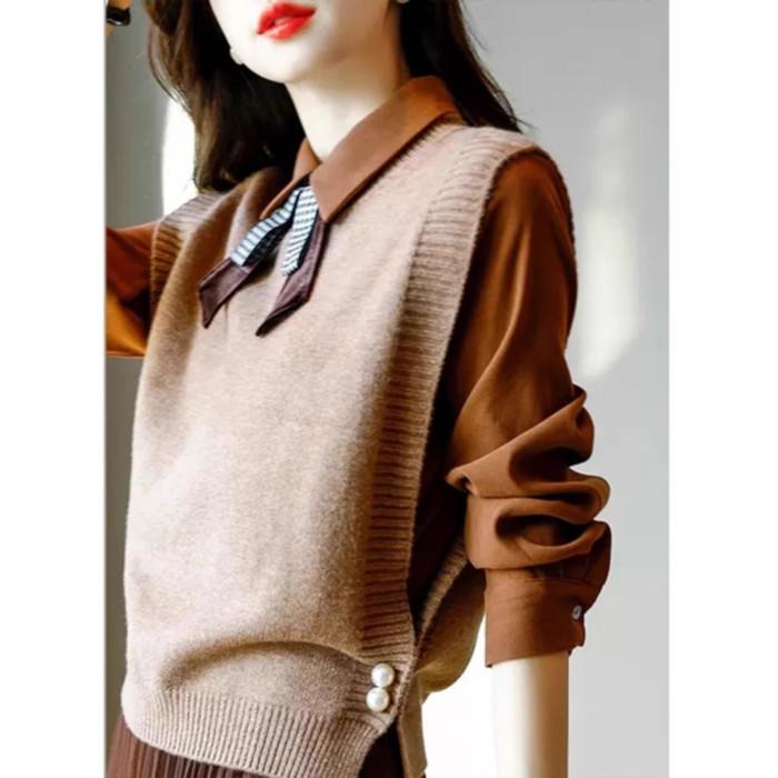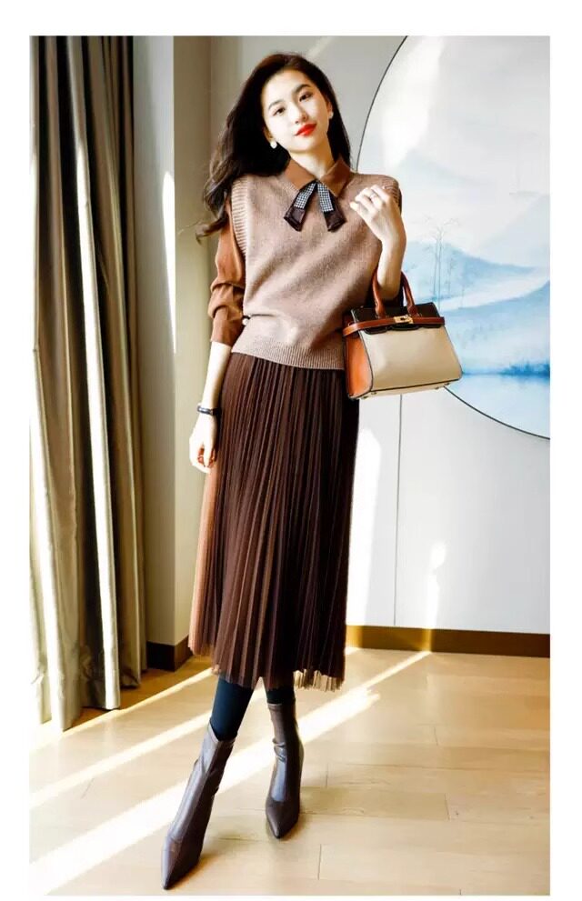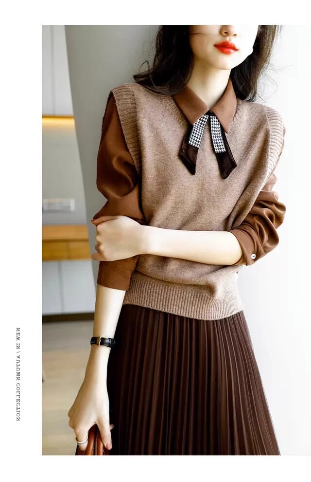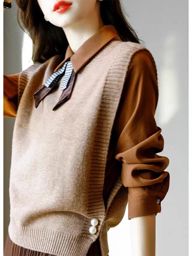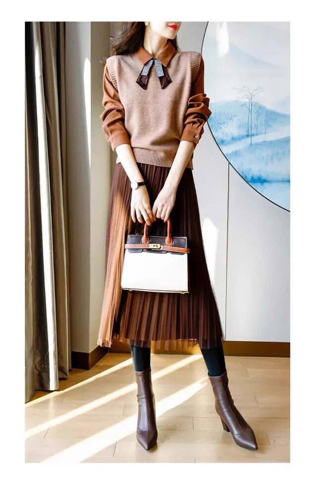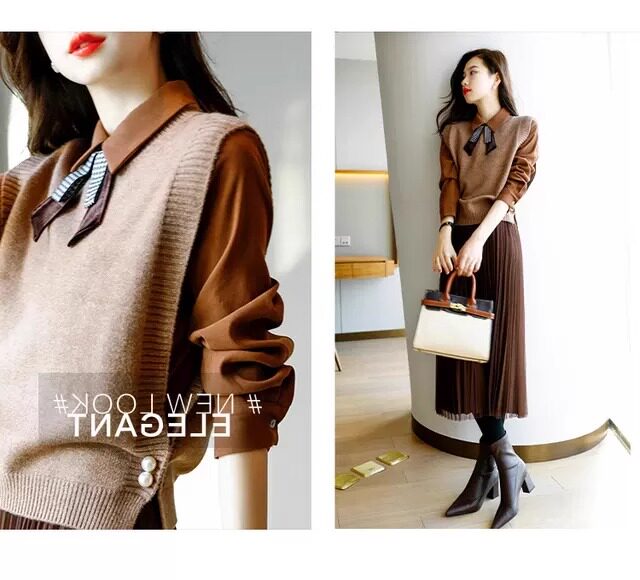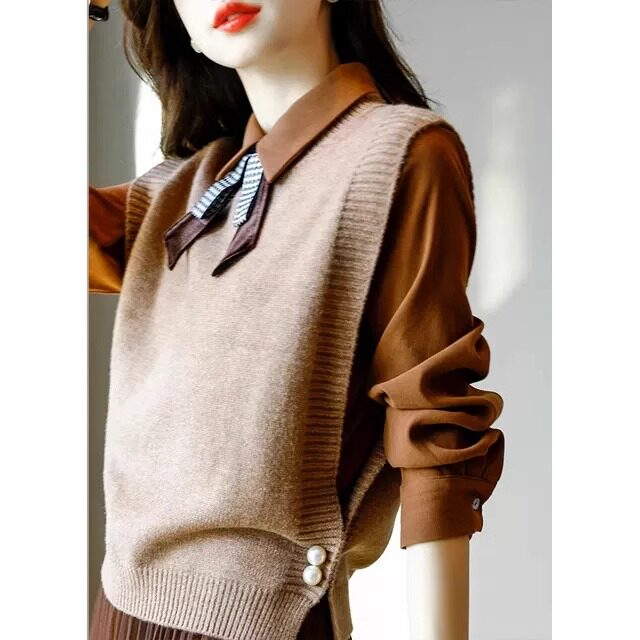 氣質女裝2025年新款秋季時尚法式高級感復古型毛衣馬甲三件套裝裙