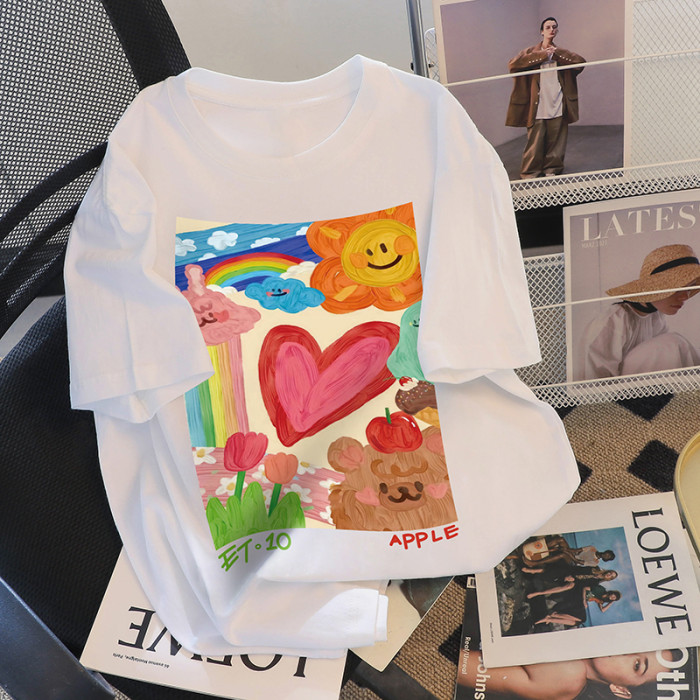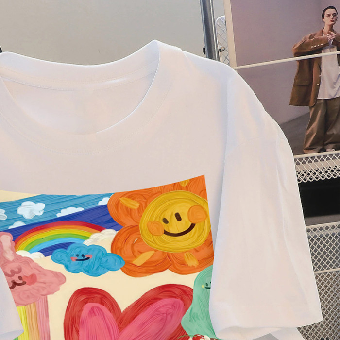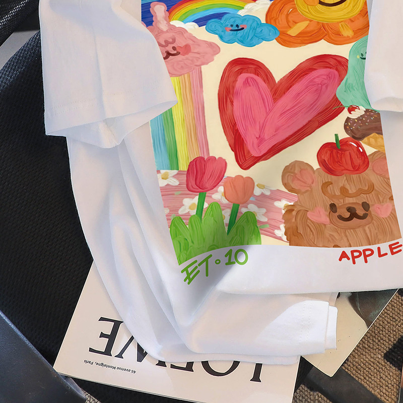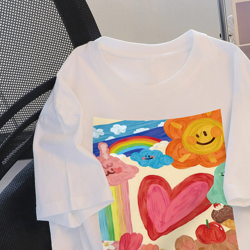 撿漏白色短袖t恤女裝ins潮寬鬆設計感小衆印花甜美韓系上衣小個子