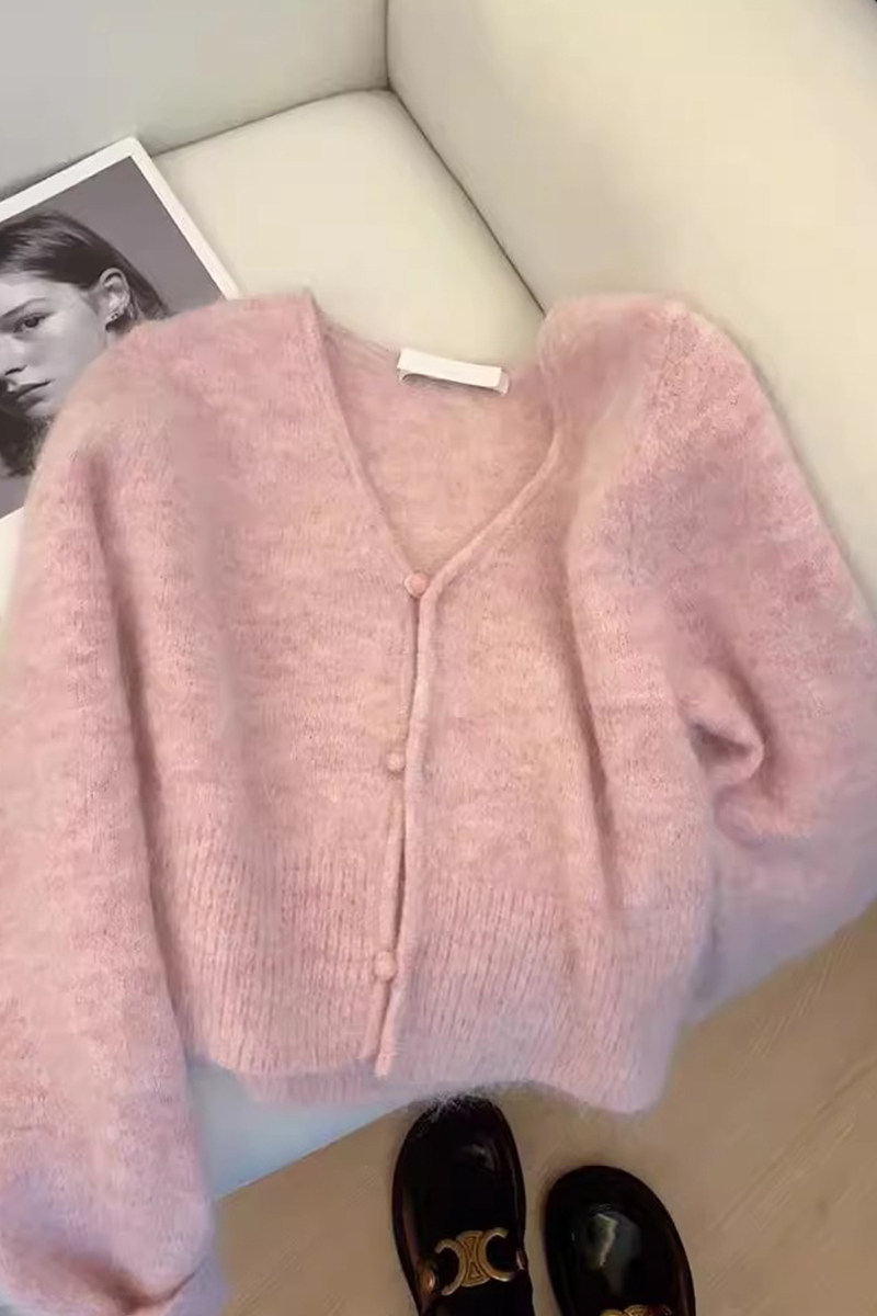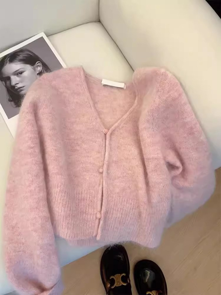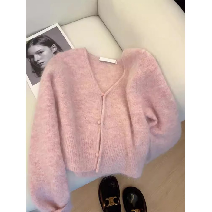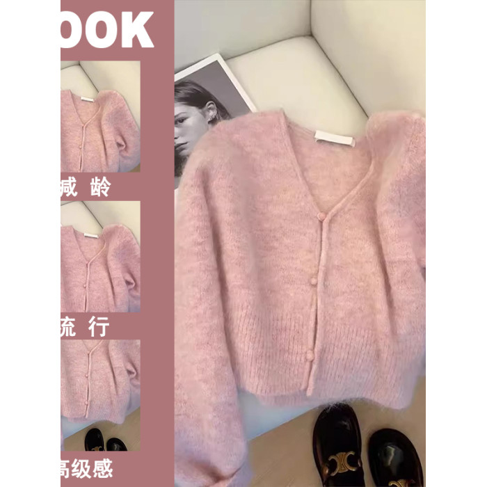 大牌女裝專櫃撤廻秋冬軟糯浣熊絨毛衣女加厚短款針織開衫外套