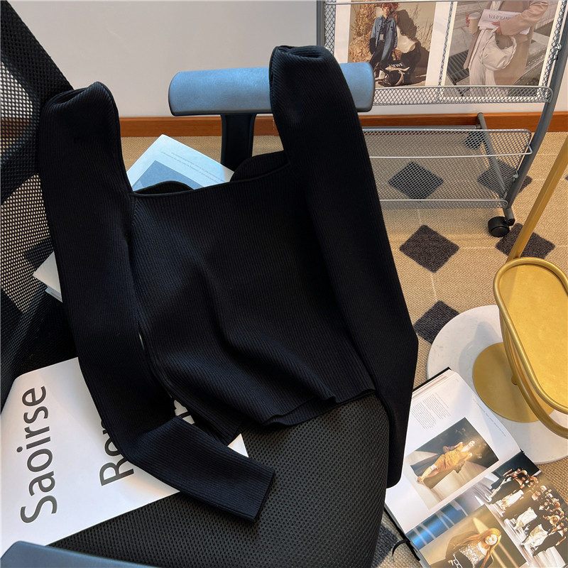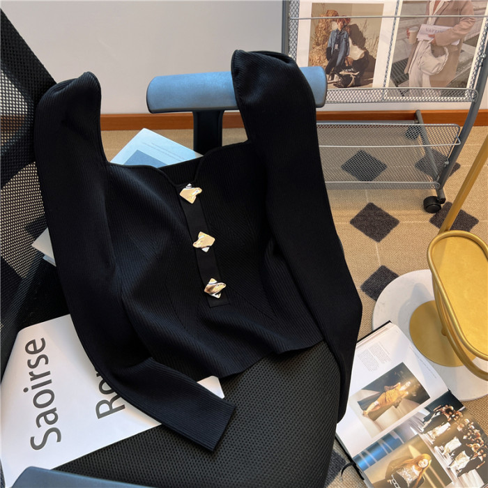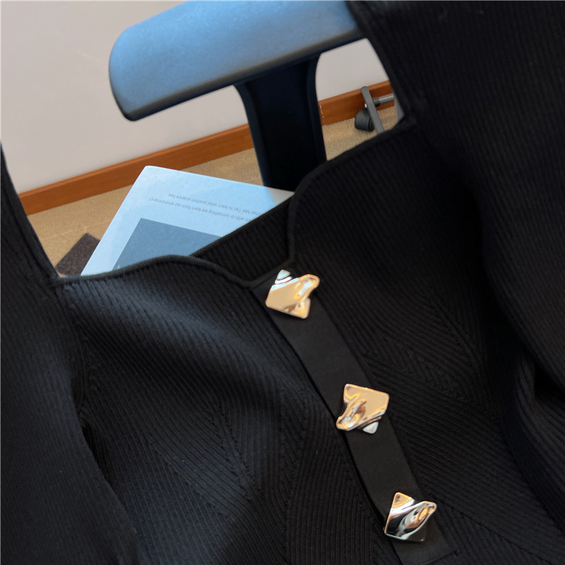 大牌買手店!赫本風金釦針織衫女秋冬2025新款方領獨特別致短上衣