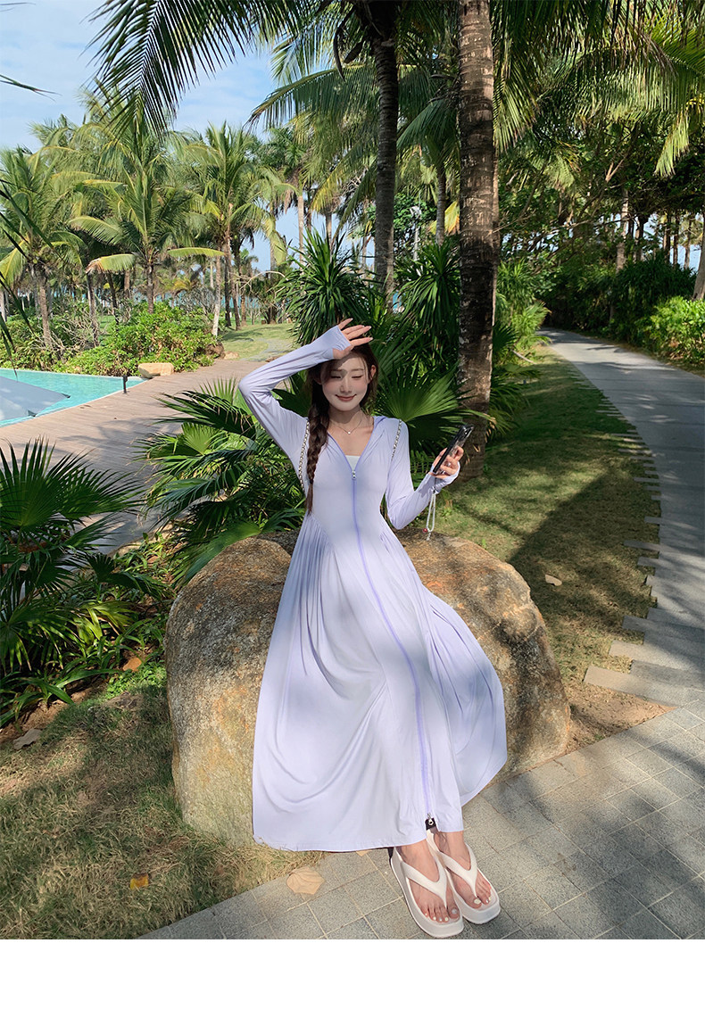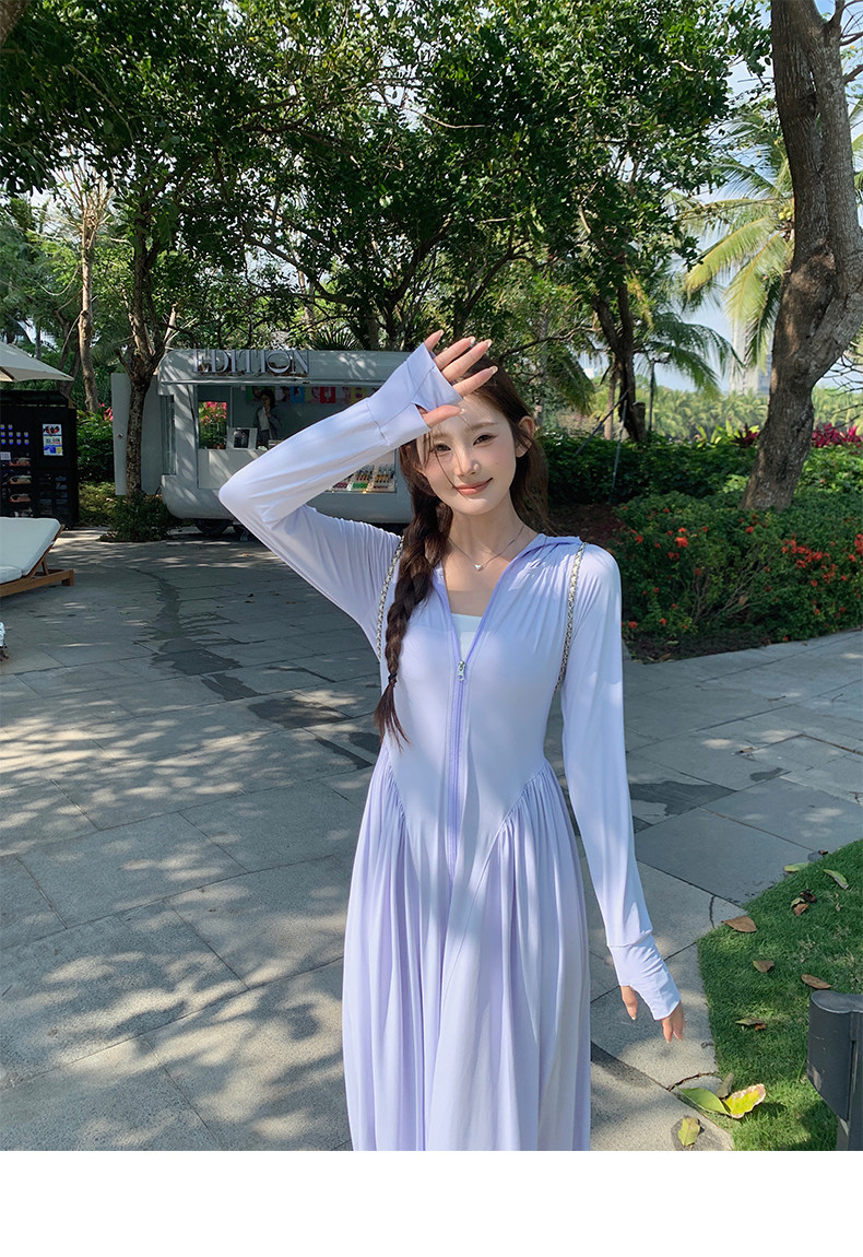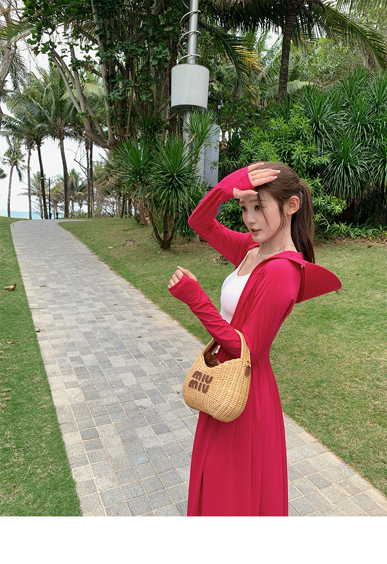 夏季防曬衣女2025新款海邊輕薄透氣防紫外線中長款防曬服修身外套