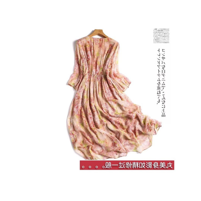 高級真絲連衣裙女夏季新款洋氣質收腰a字顯瘦碎花桑蠶絲中長裙子