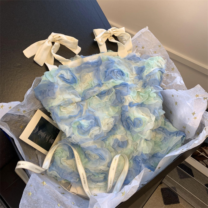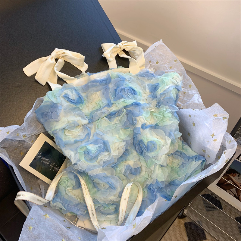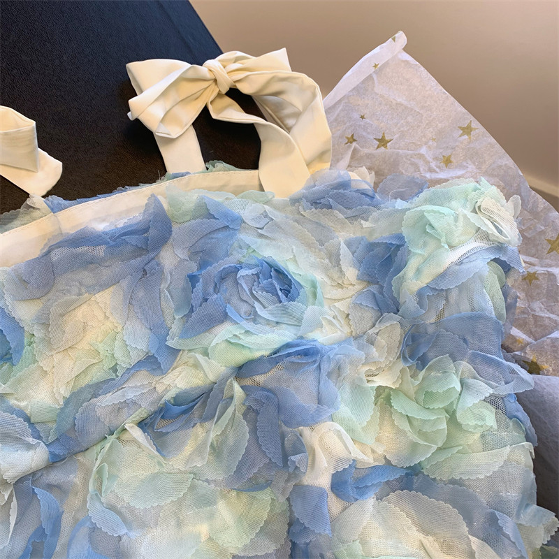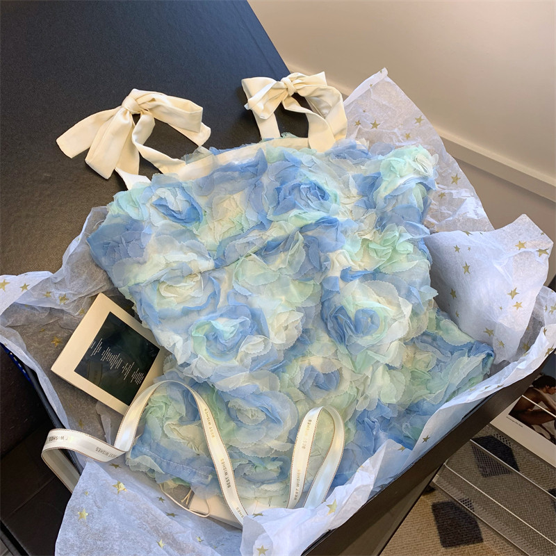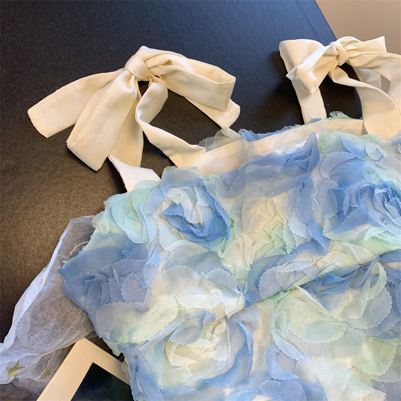 薄荷曼波風小上衣花瓣藍色吊帶小衫女夏季法式甜美超仙氣質抹胸