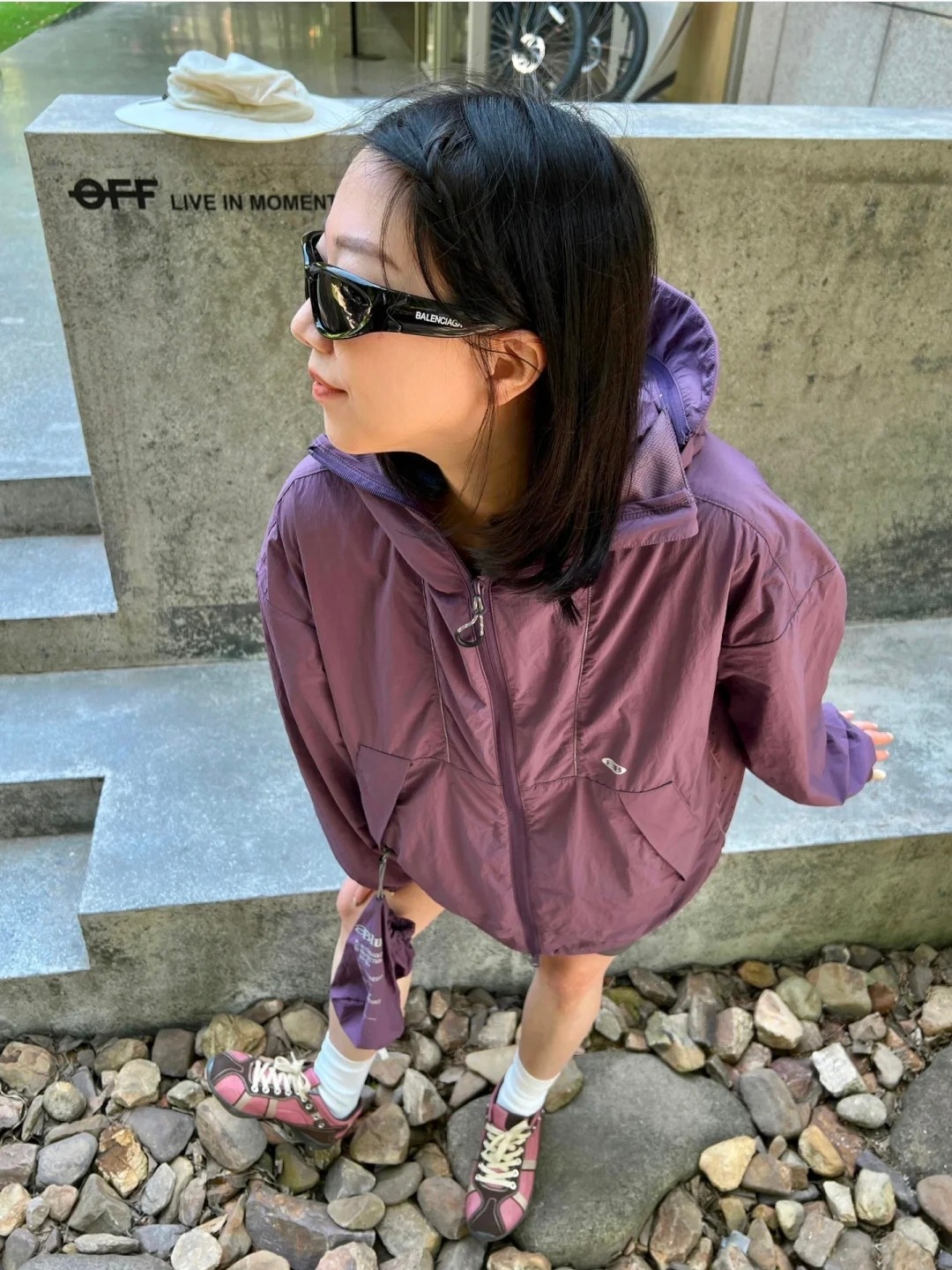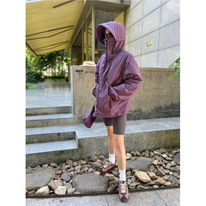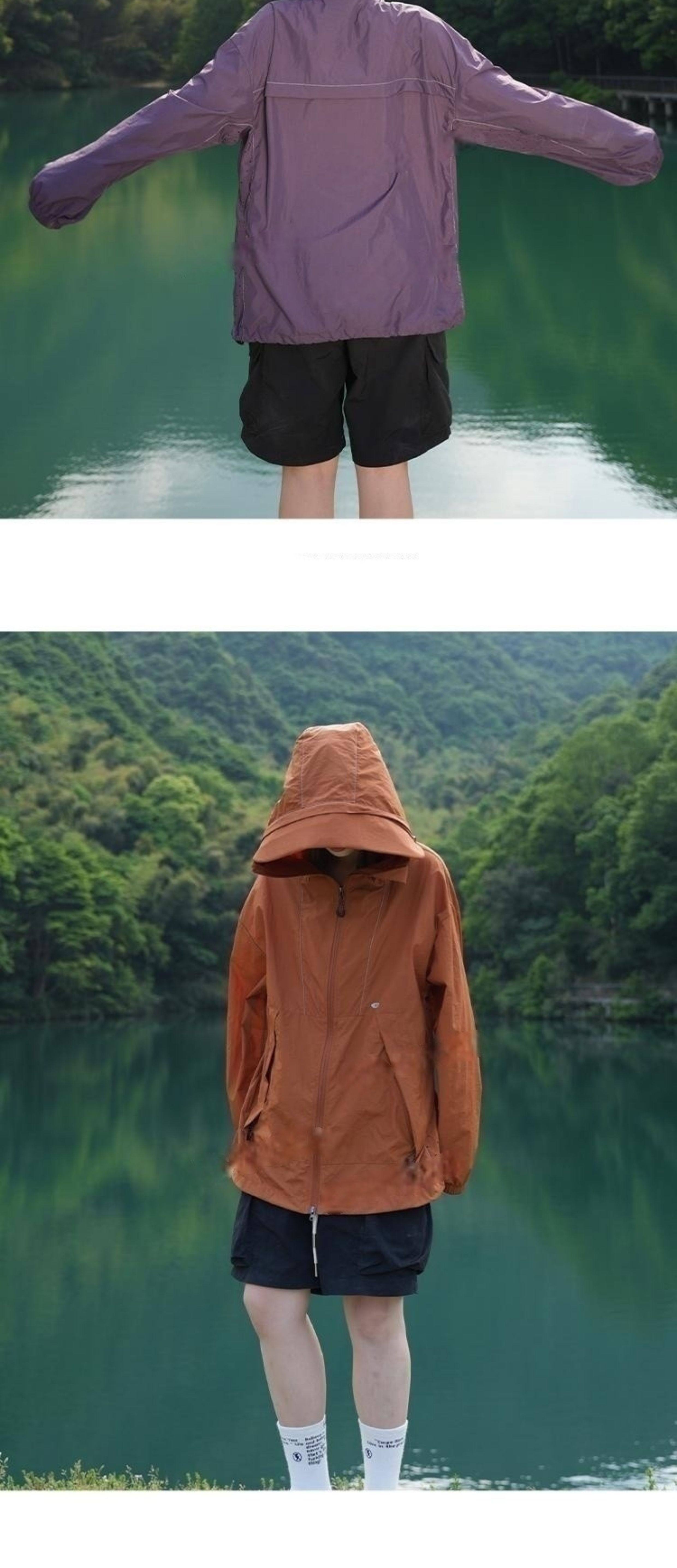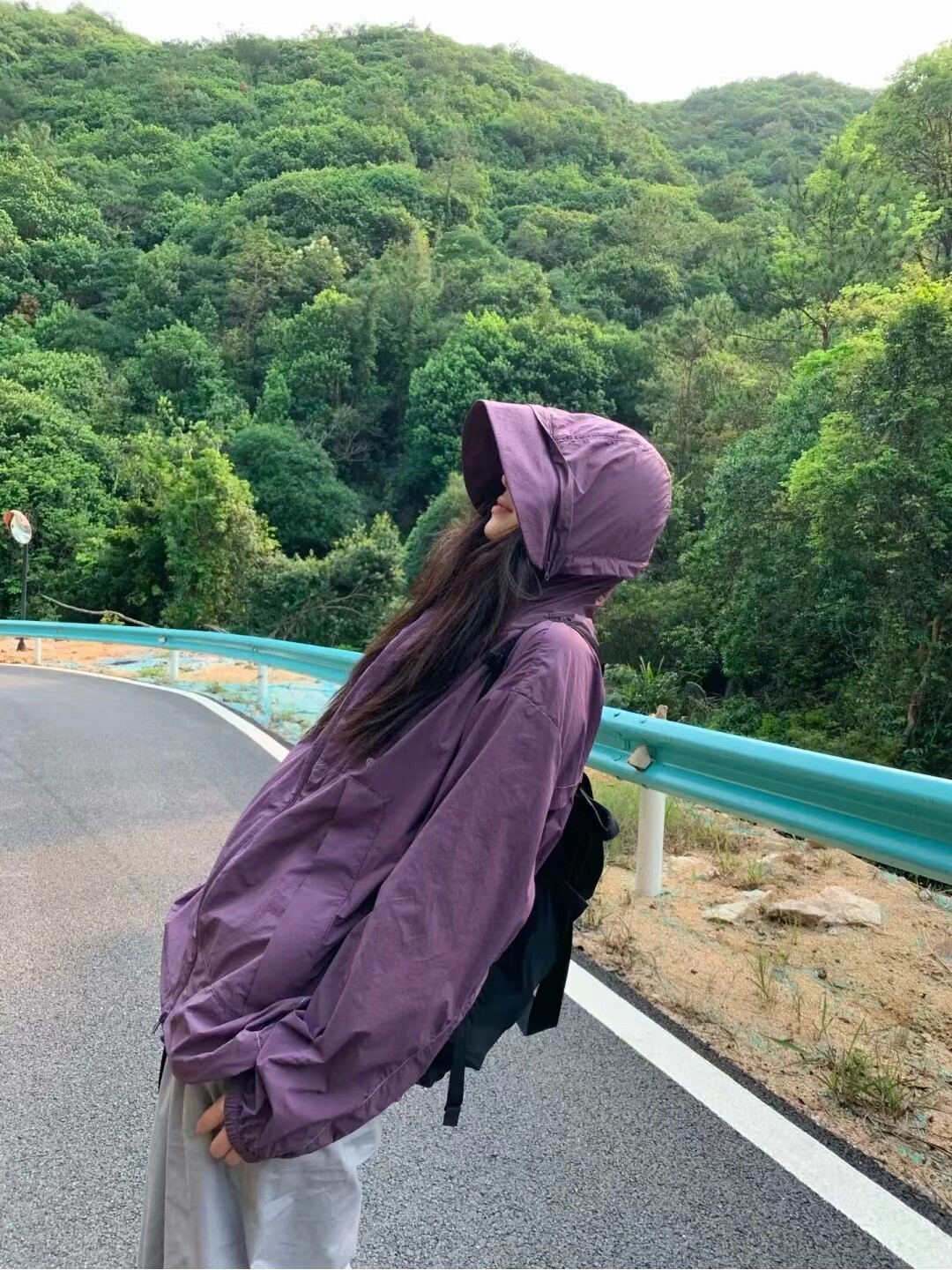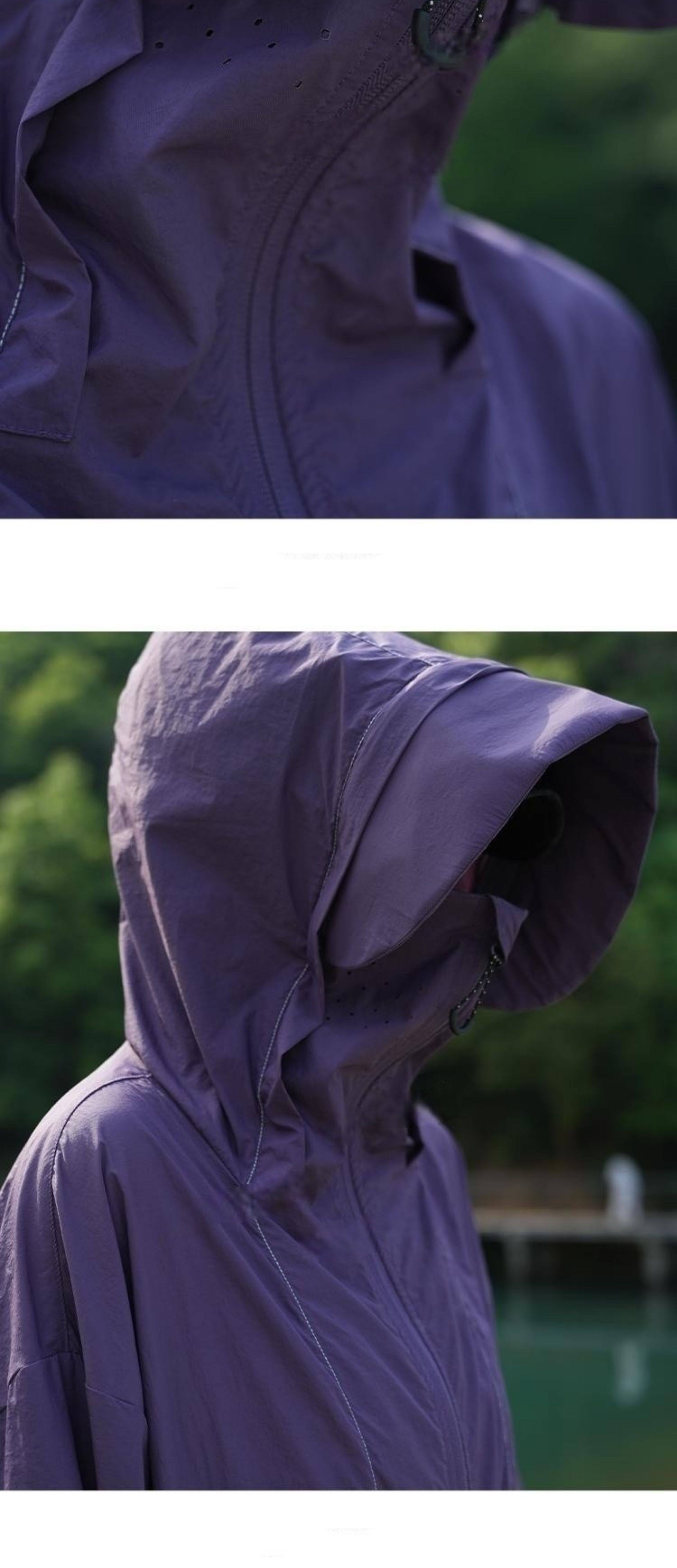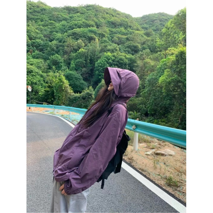 美式戶外UPF50+紫色連帽防曬沖鋒衣女夏季工裝輕薄皮膚衣外套男潮