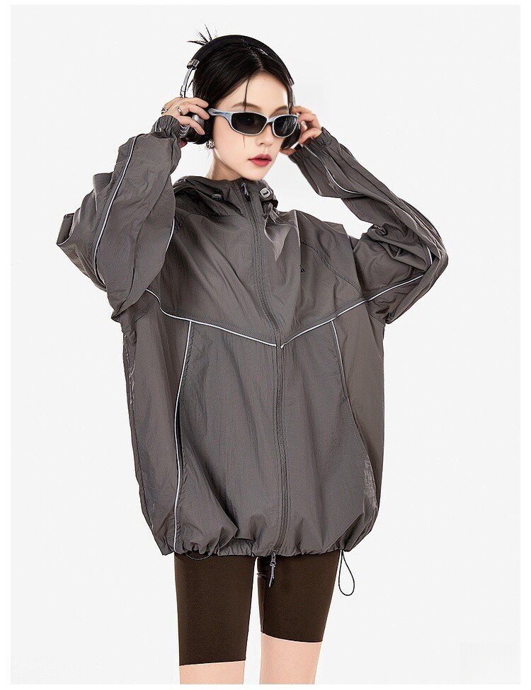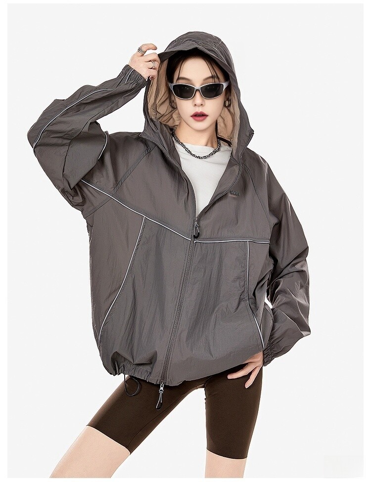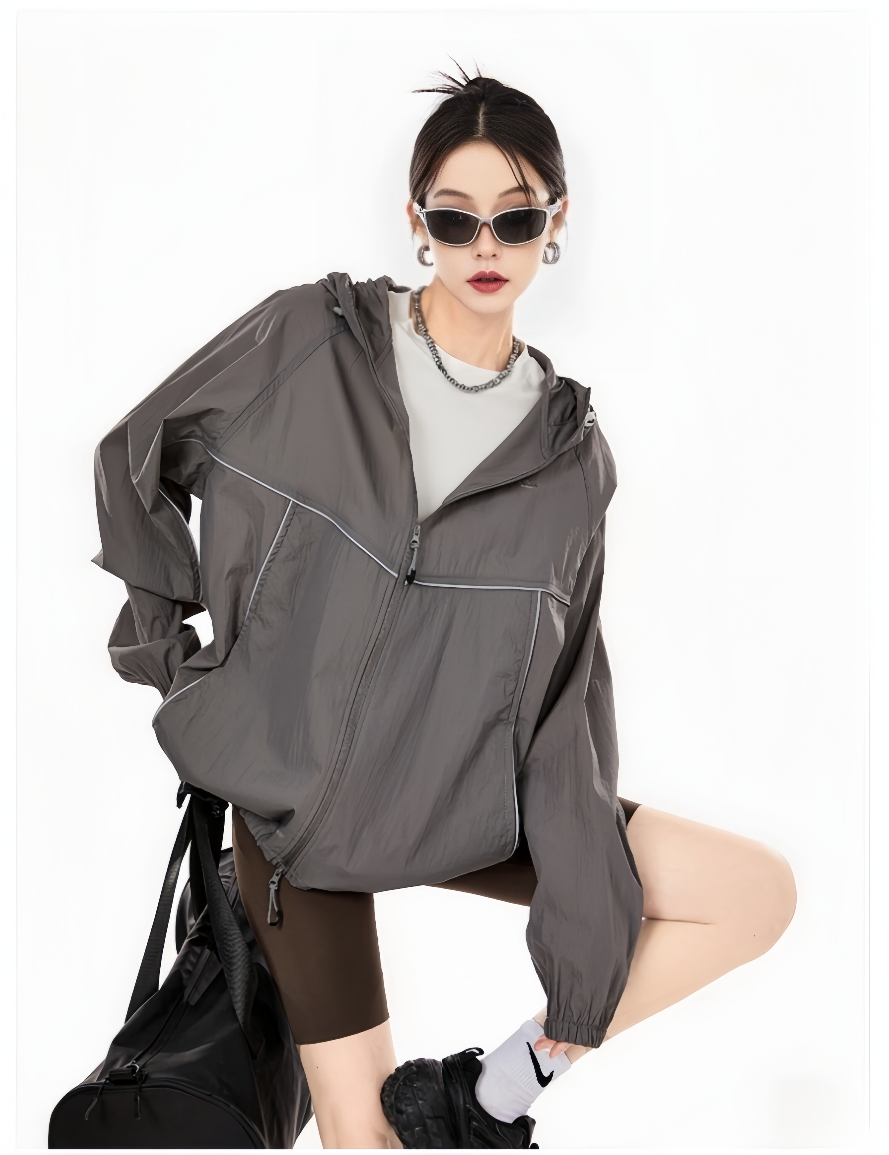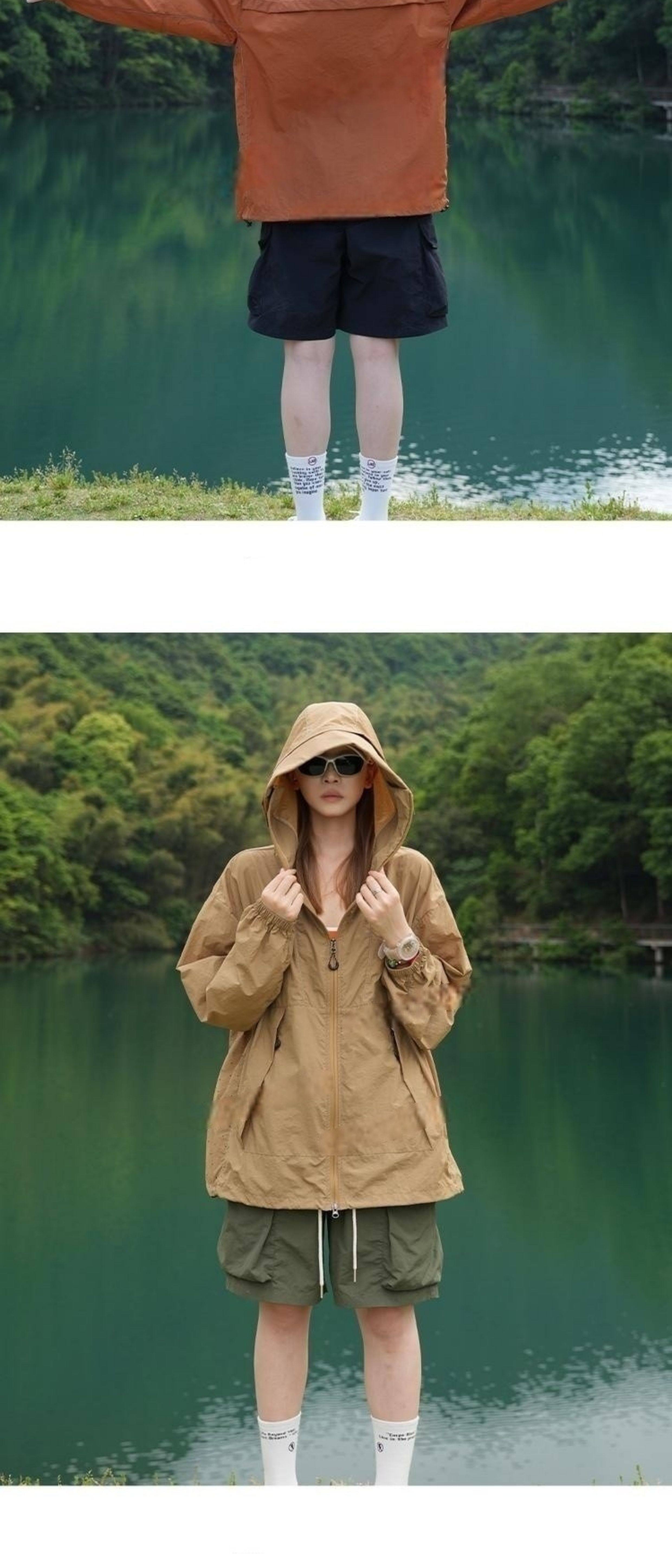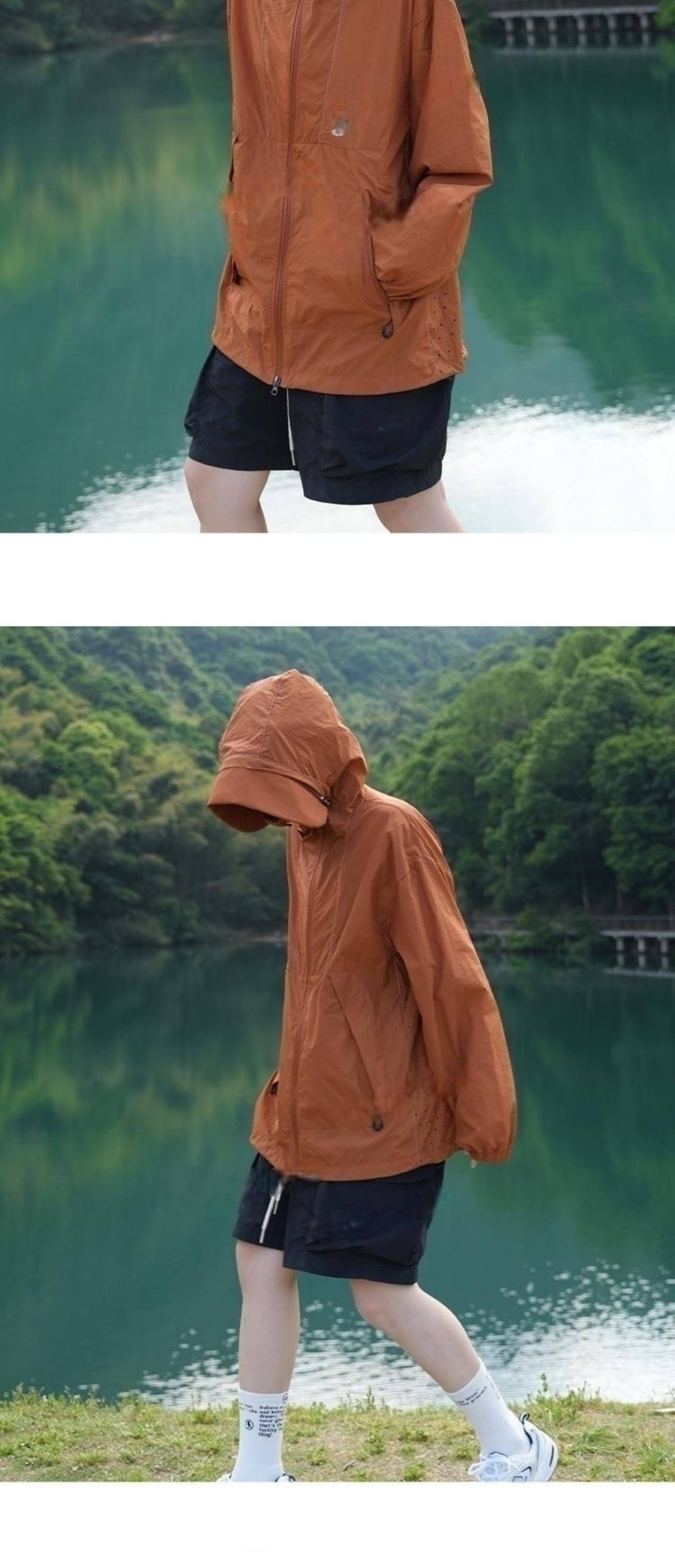 美式戶外UPF50+紫色連帽防曬沖鋒衣女夏季工裝輕薄皮膚衣外套男潮