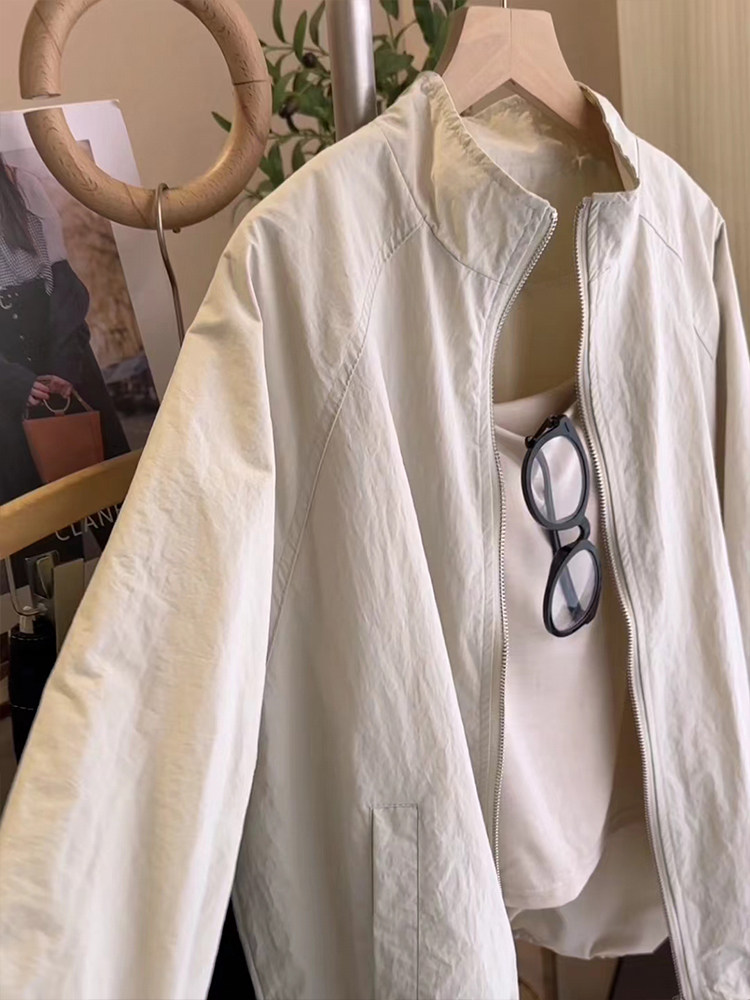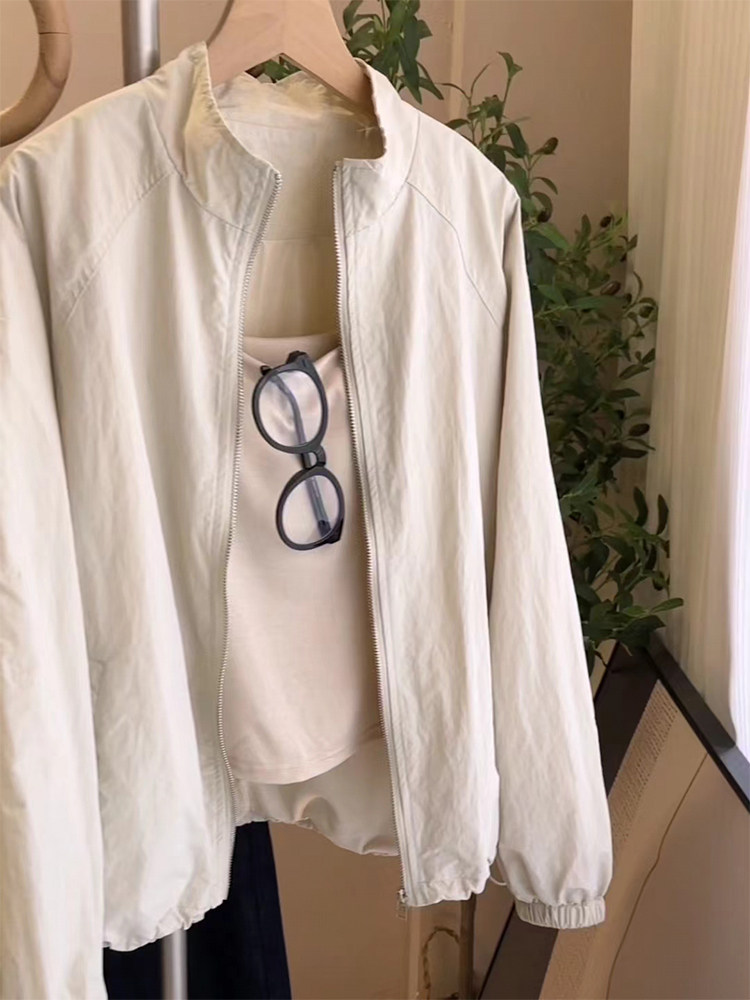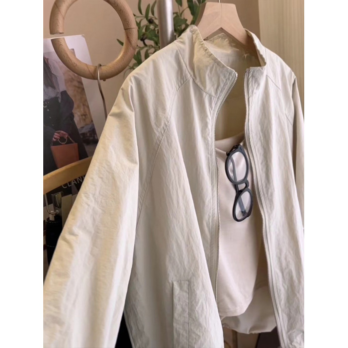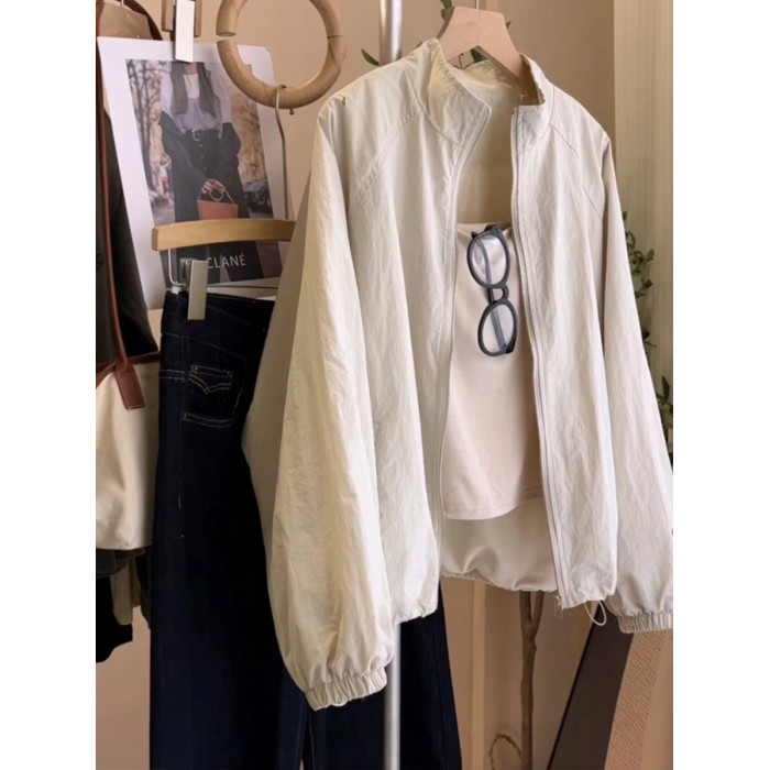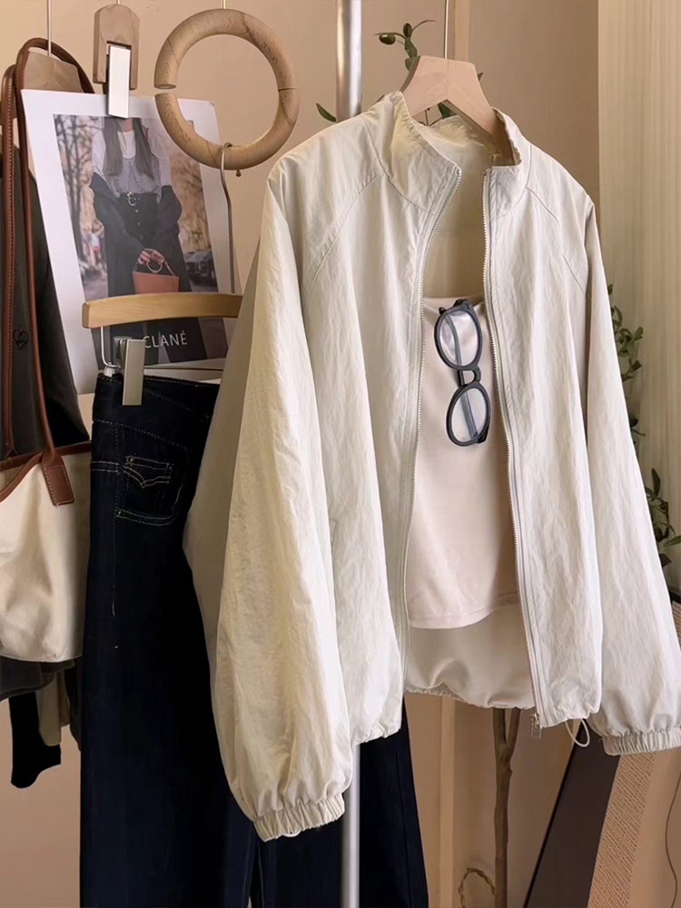 韓版休閒立領防曬衣薄款外套夏季新款戶外寬鬆沖鋒衣運動夾克女潮