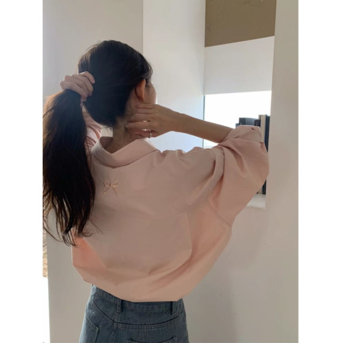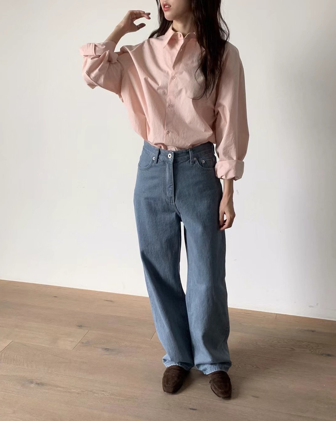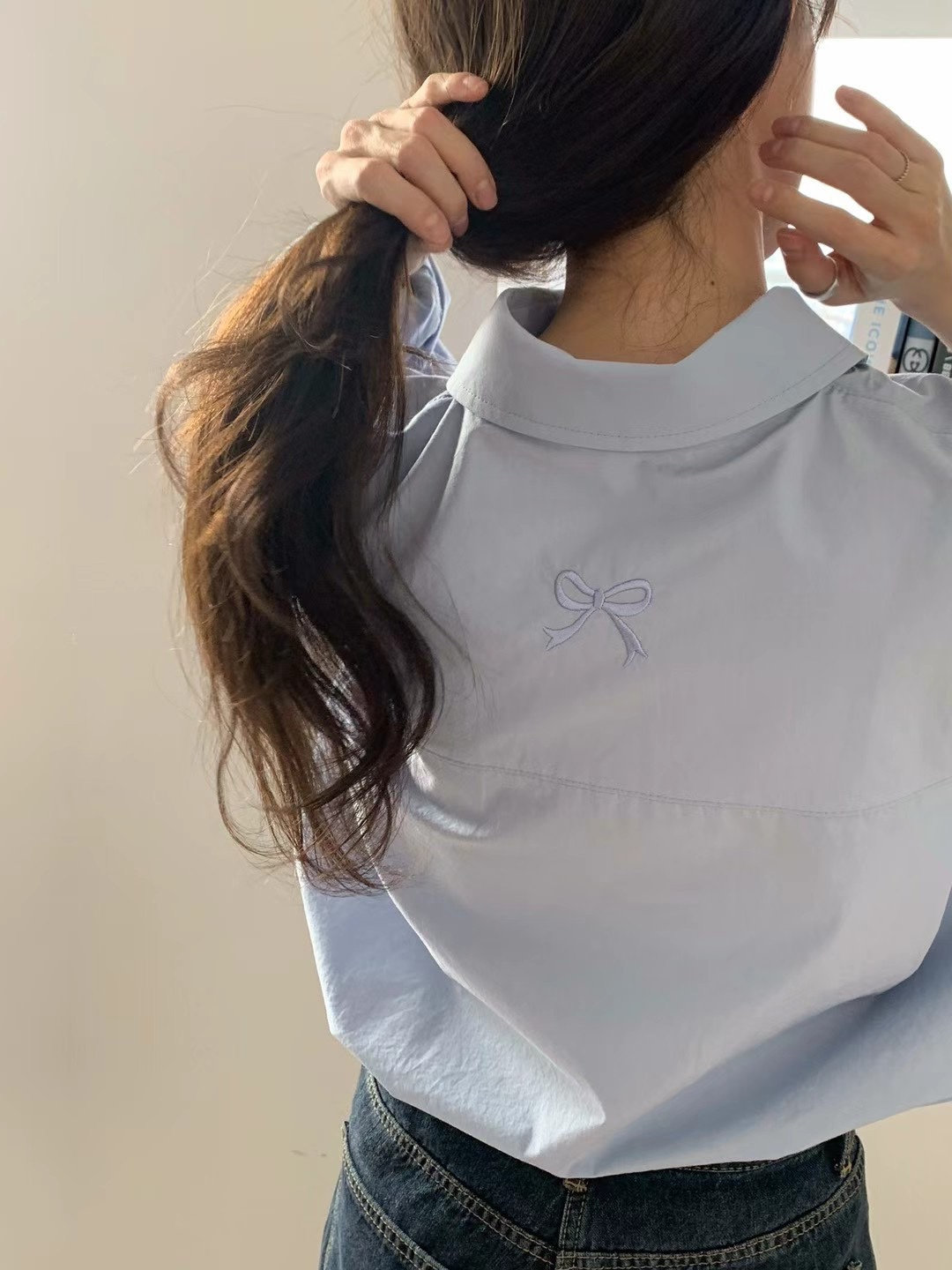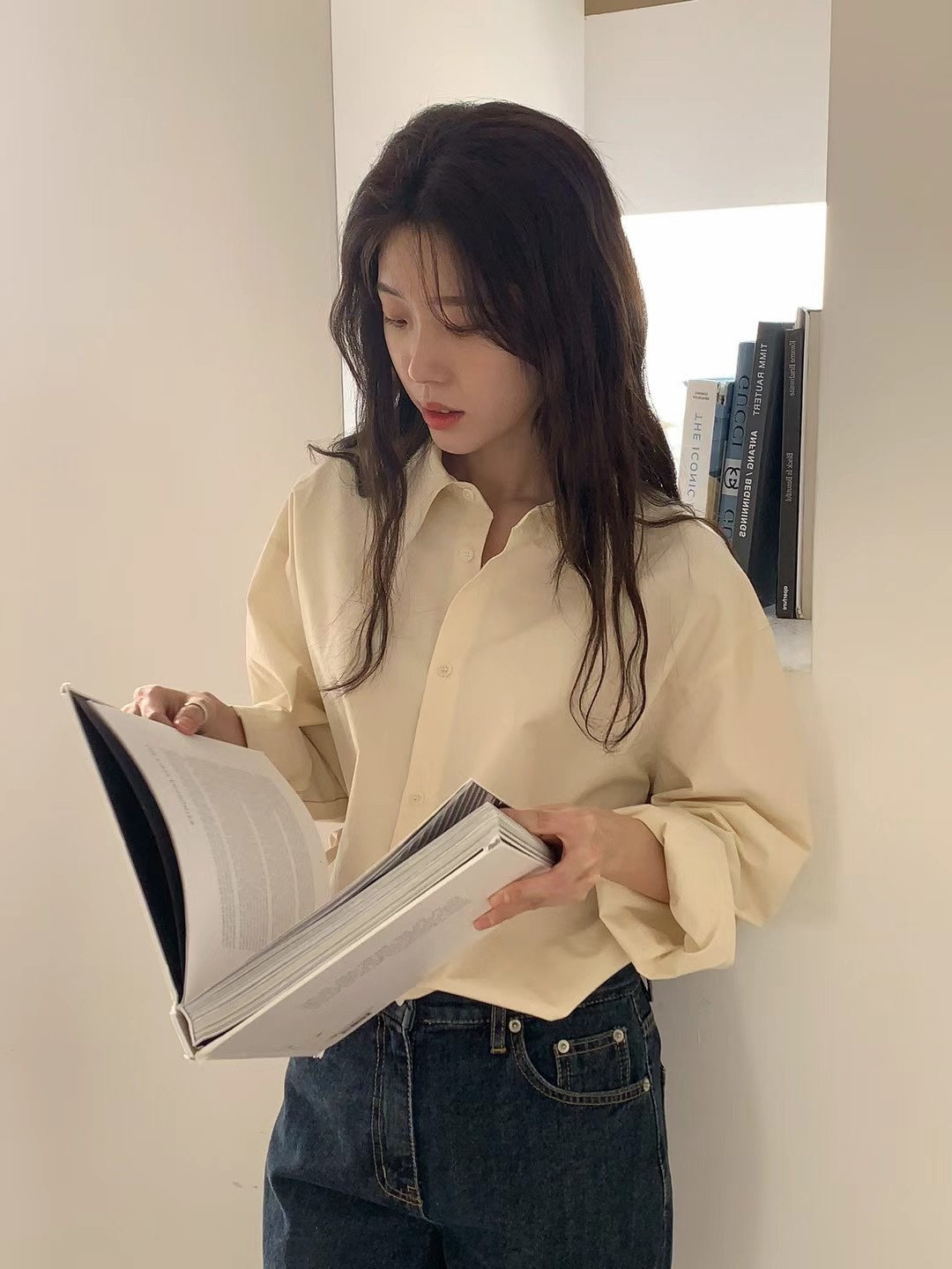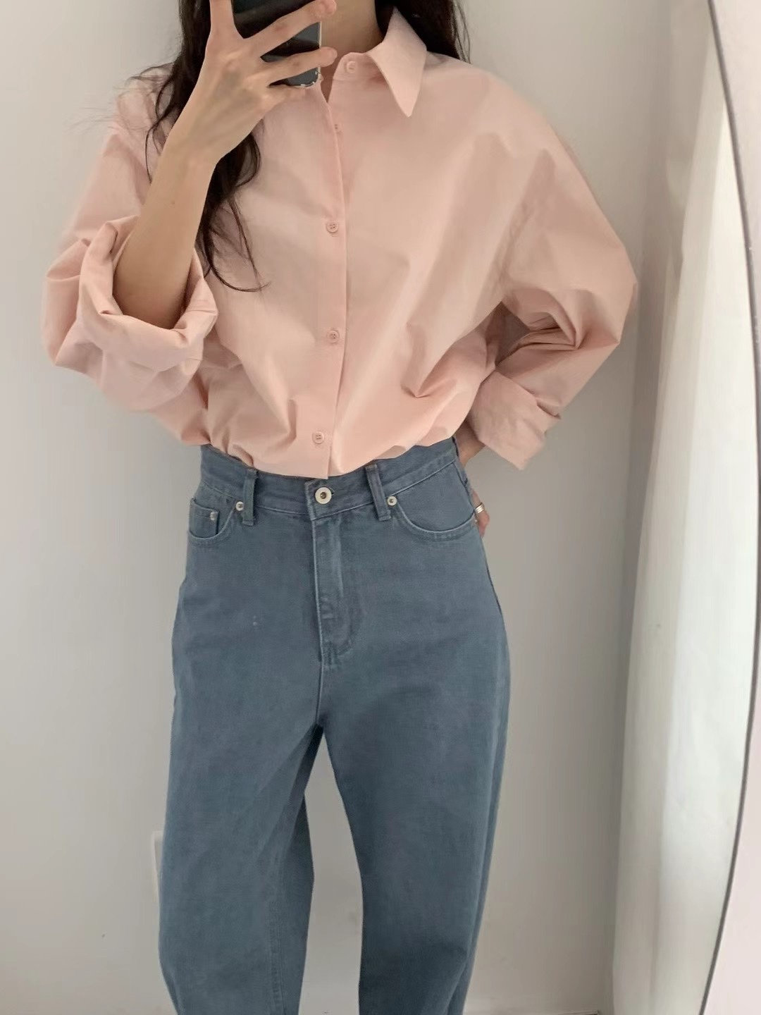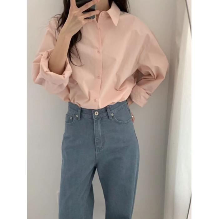 春季新款ins上衣女法式復古藍色襯衫寬鬆打底高級感小衆長袖襯衣