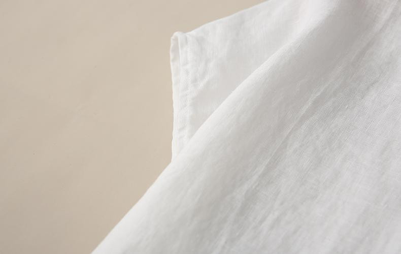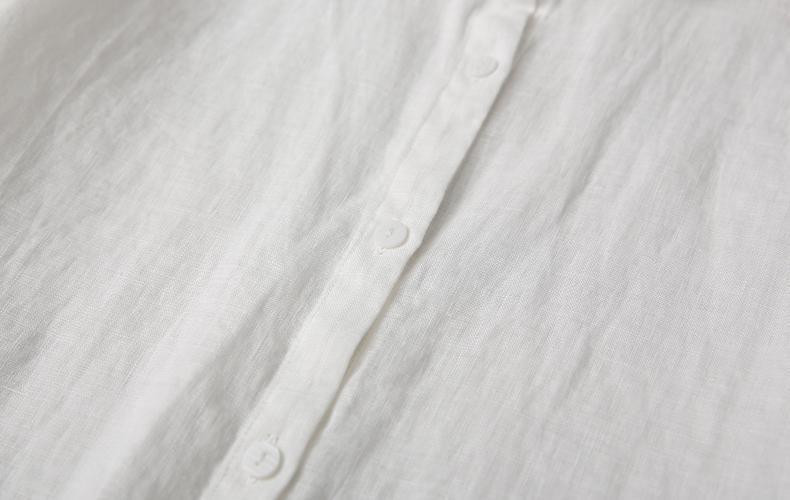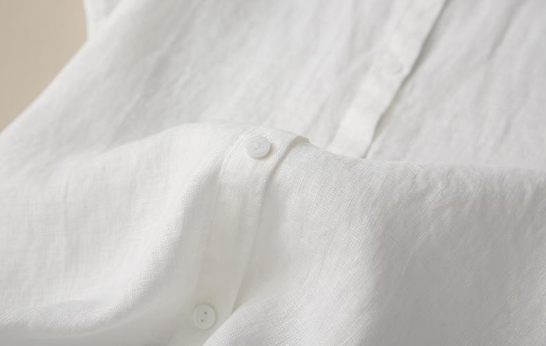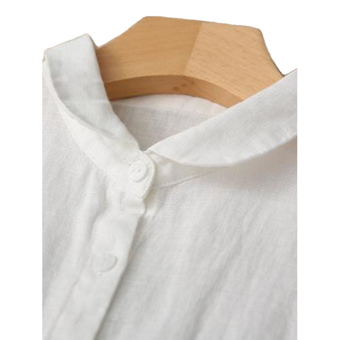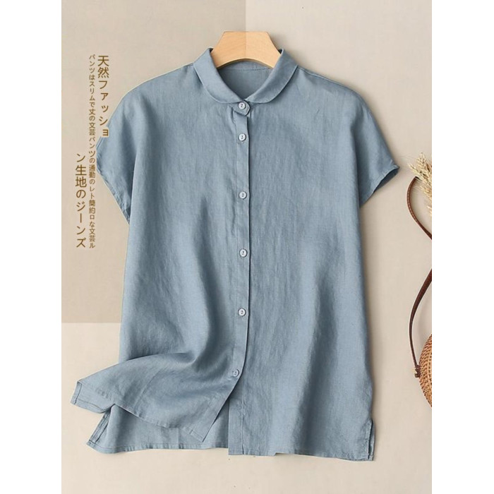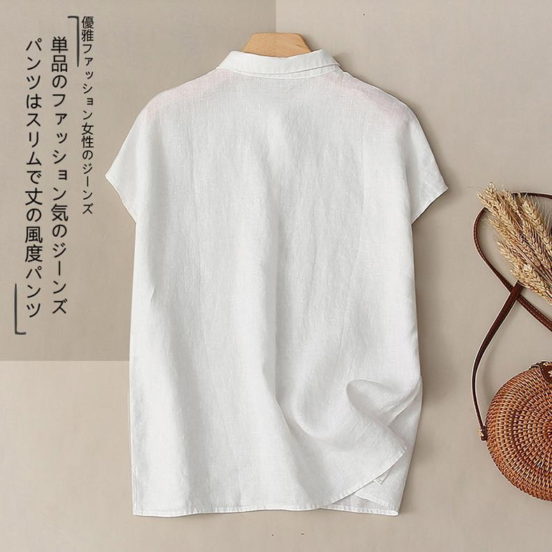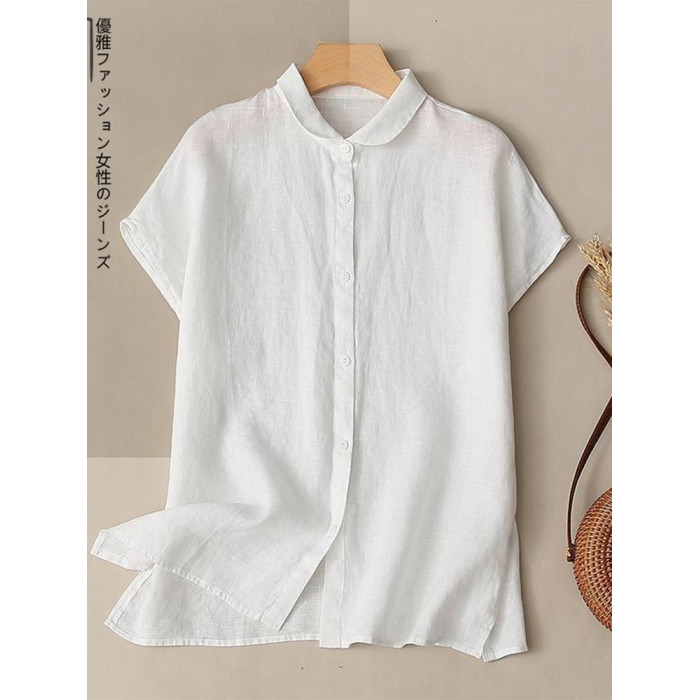 日韓出口剪標純亞麻短袖上衣立領寬鬆百搭設計感文藝棉麻襯衫