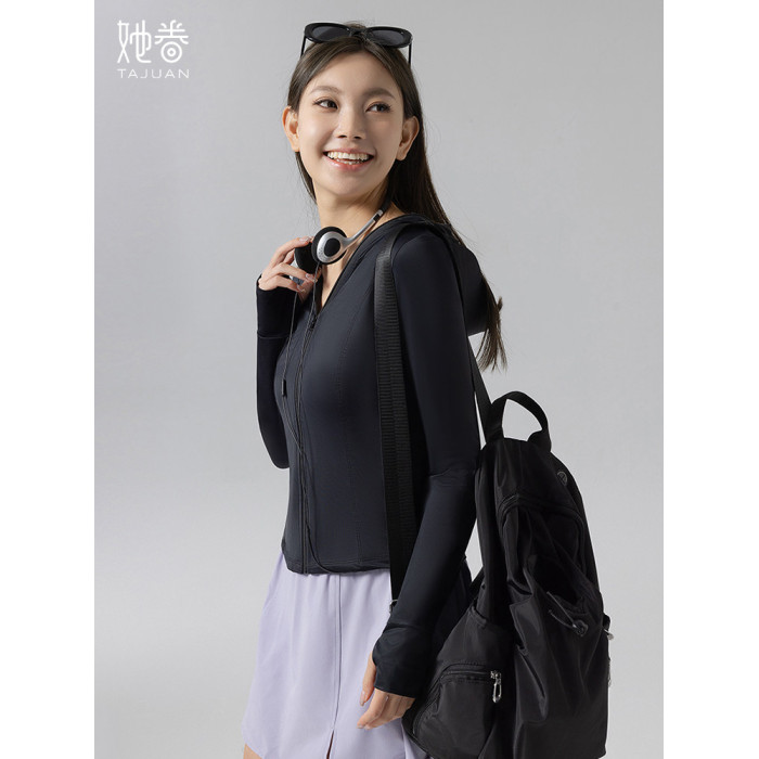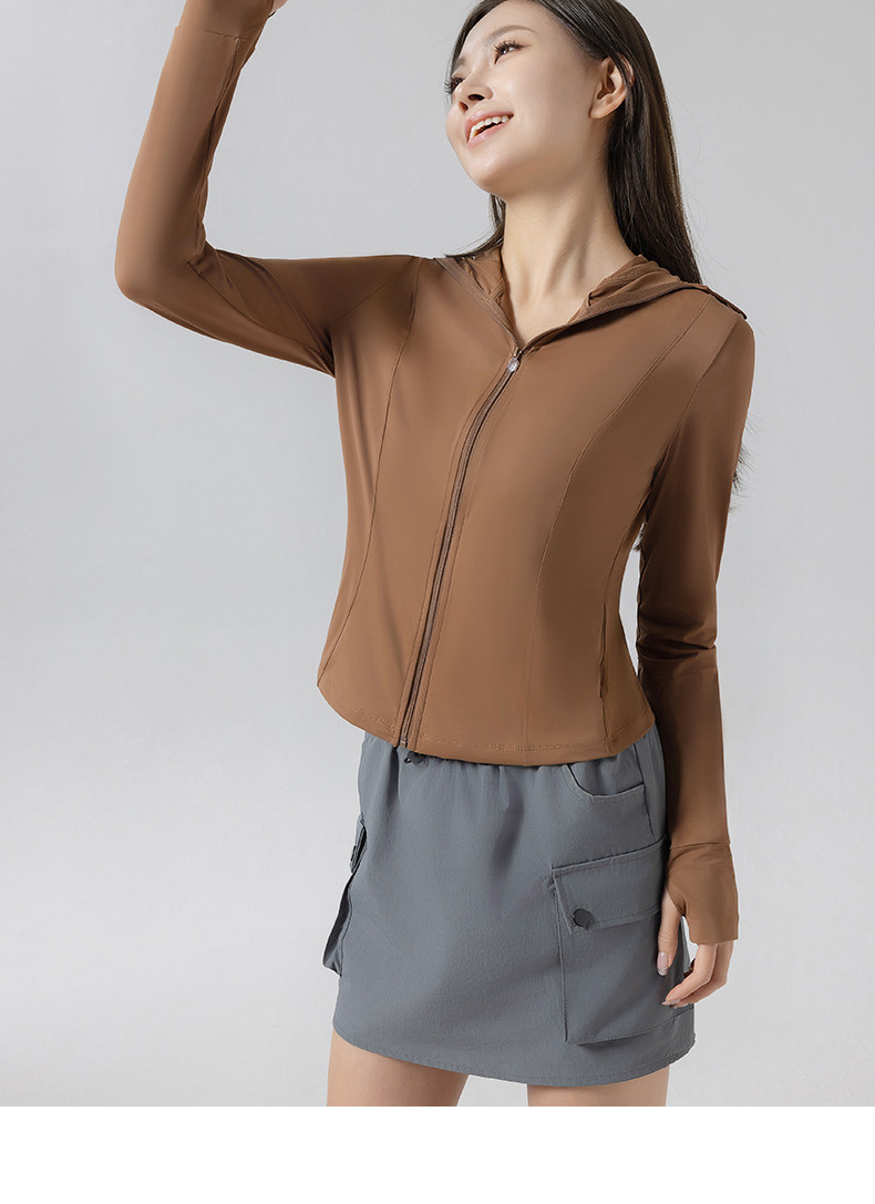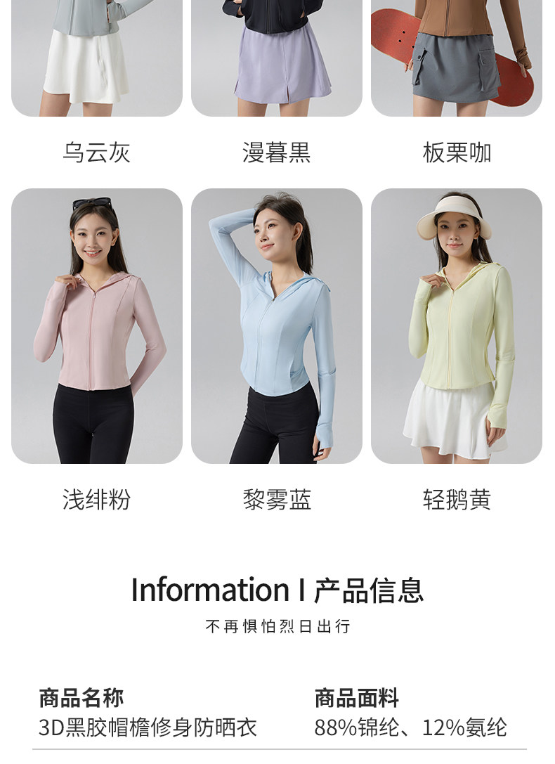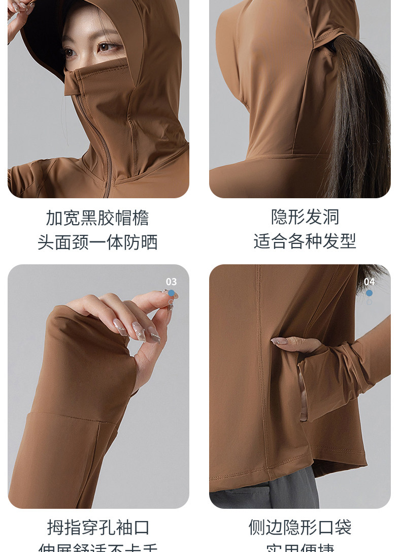 冰絲收腰修身防曬衣女夏季薄款防紫外線防曬服連帽帶帽簷外套上衣
