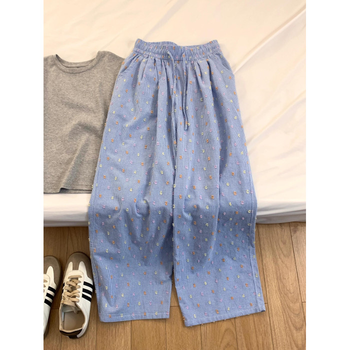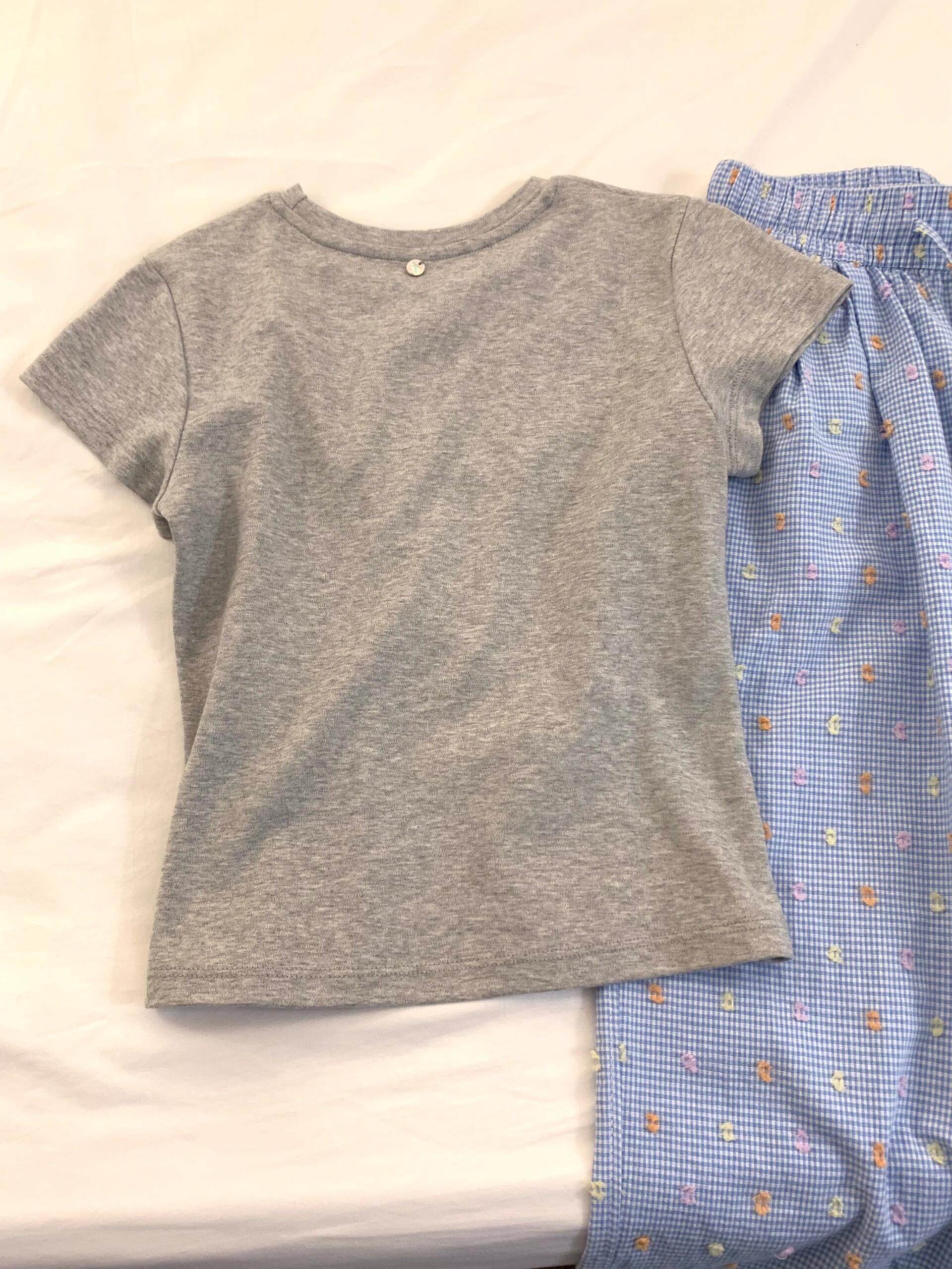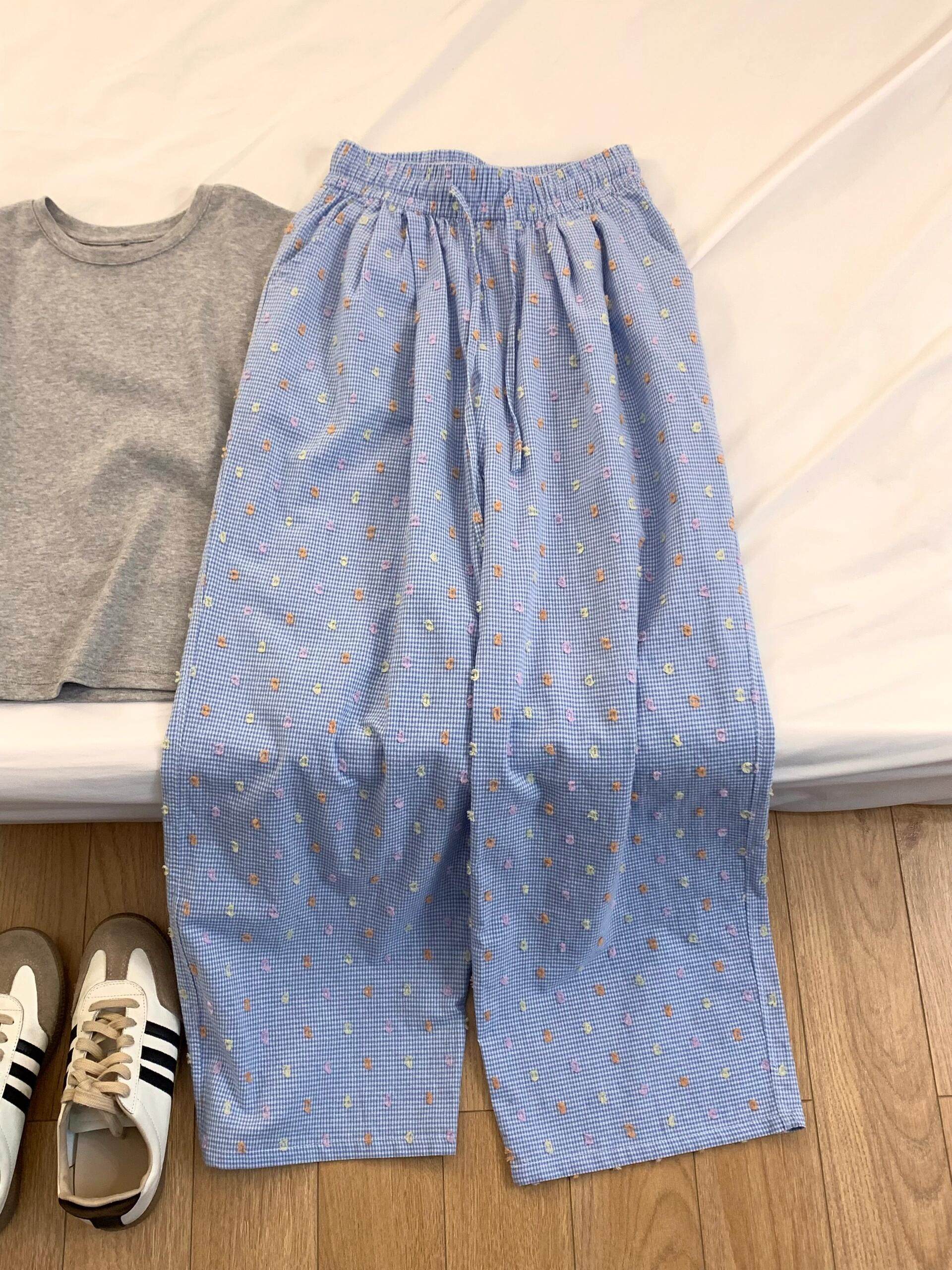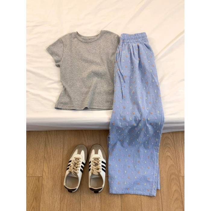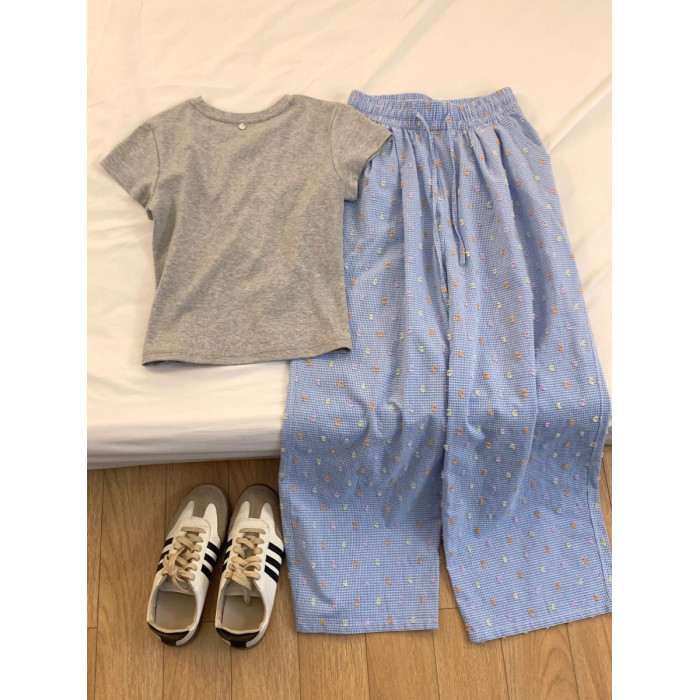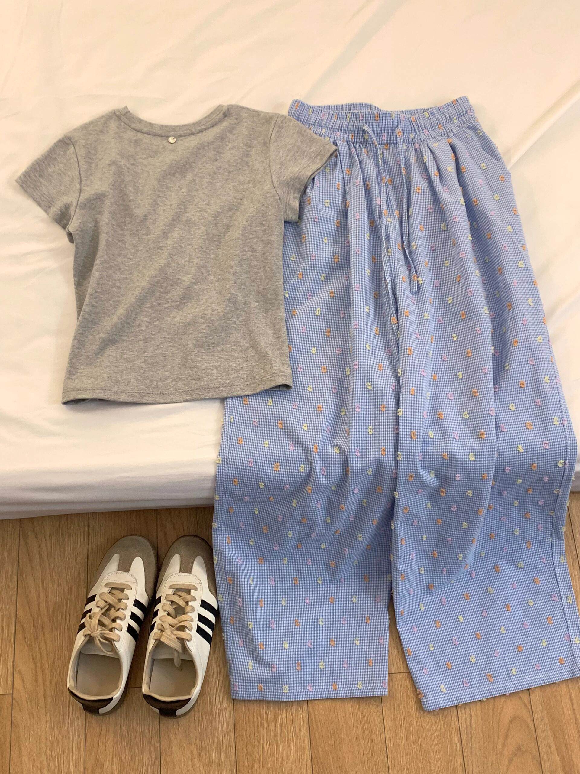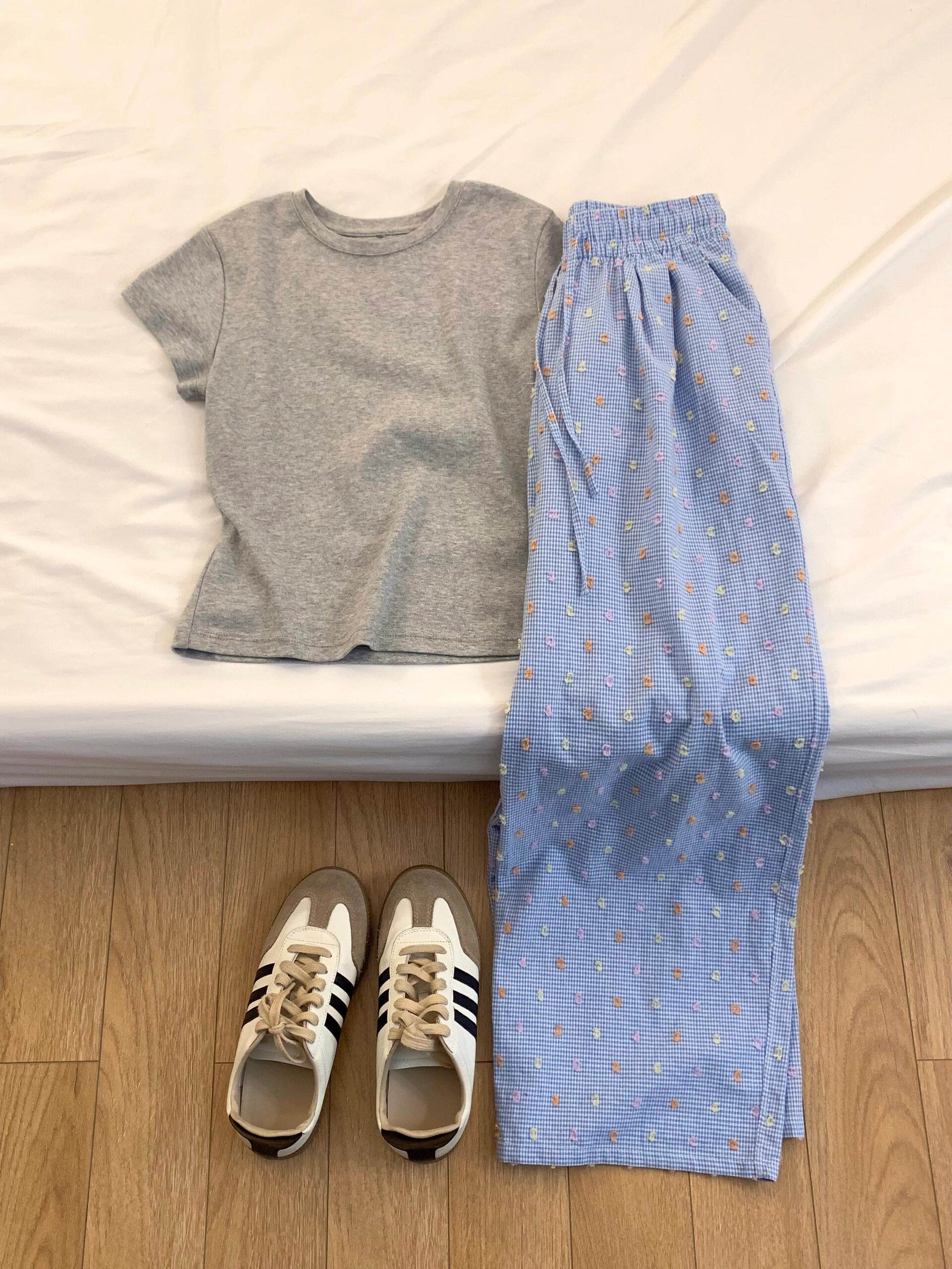 簡單乾淨藍灰搭配好舒適松弛~夏季新款大方灰色T恤+彩色點點褲子