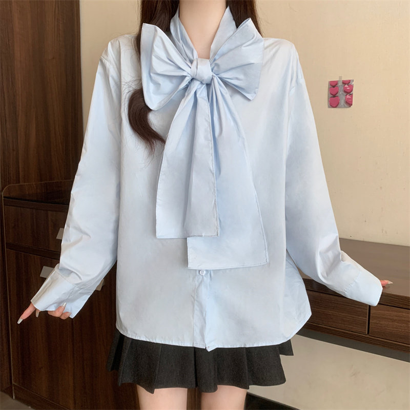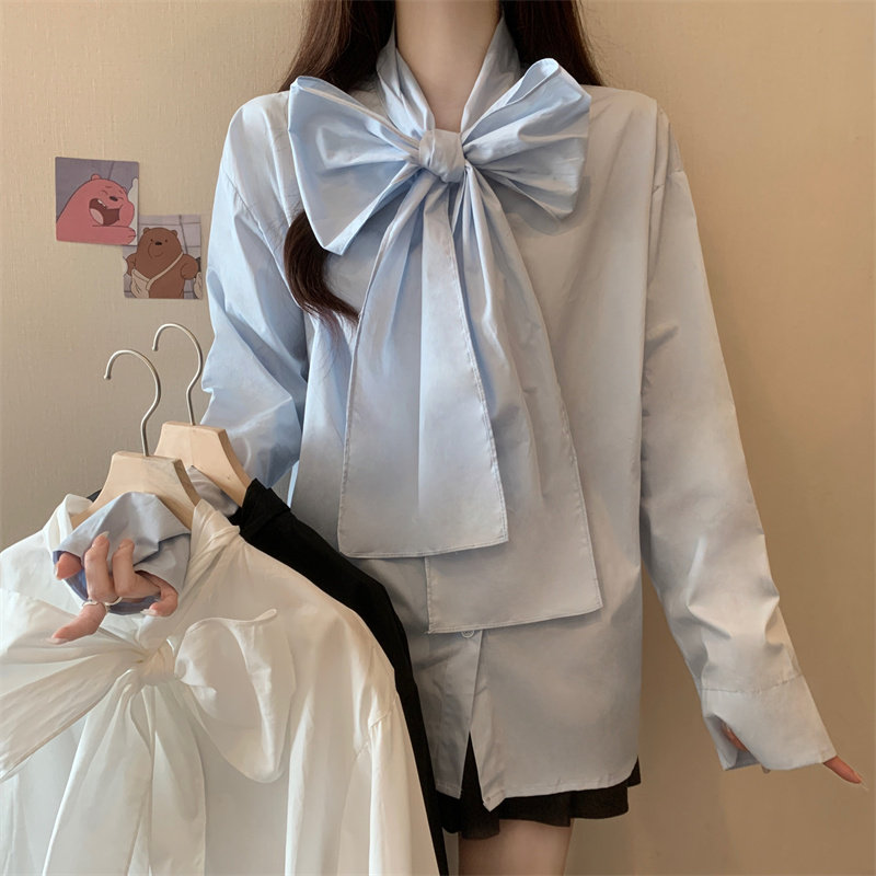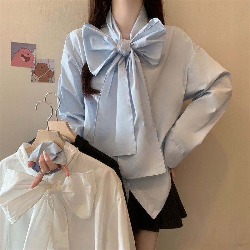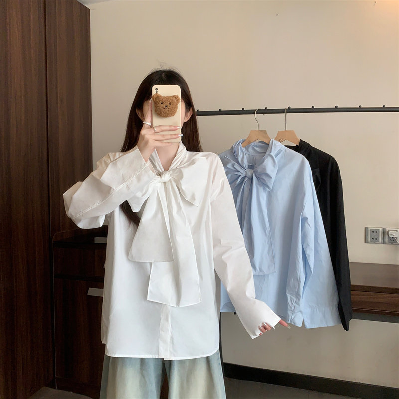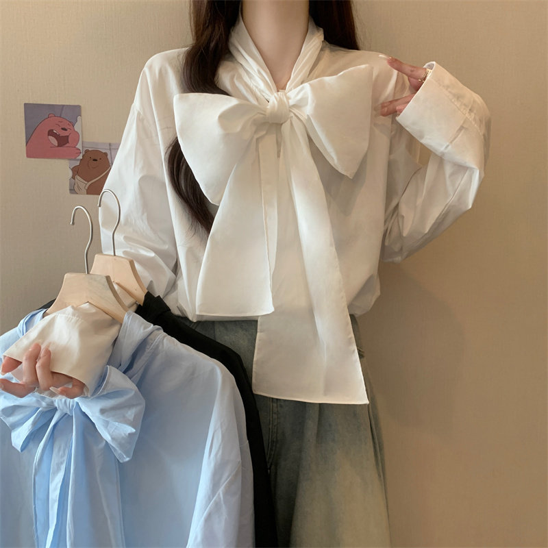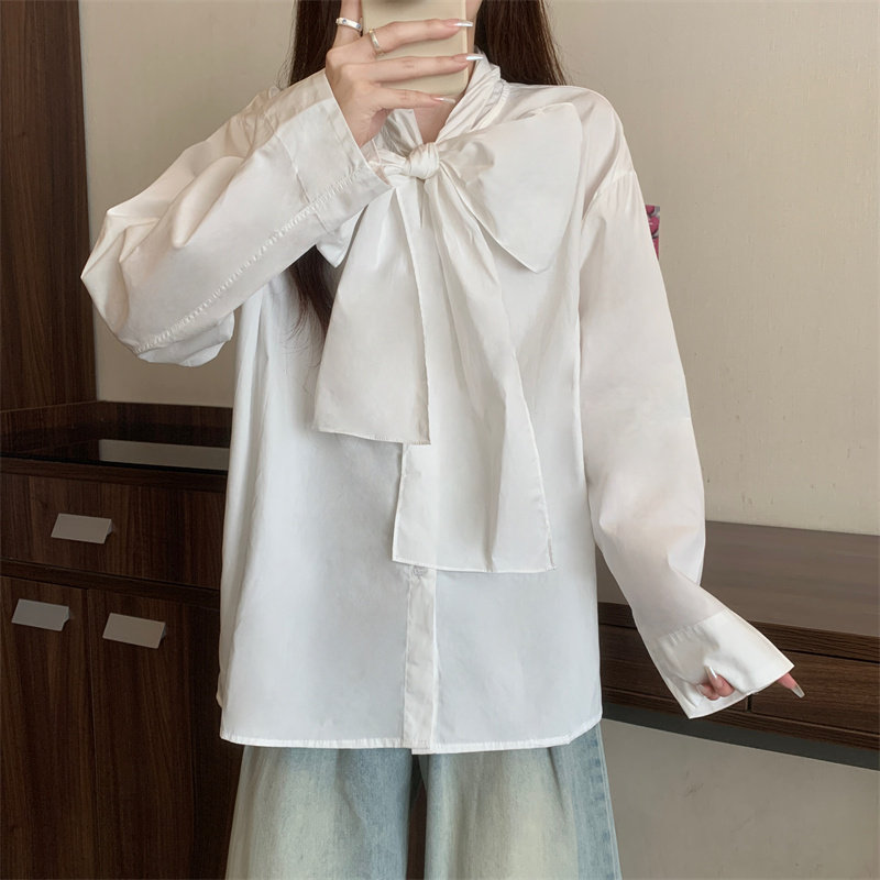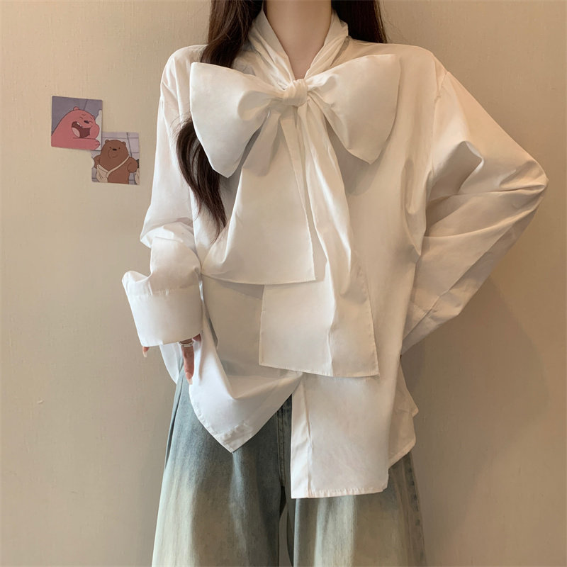 大碼法式休閒襯衫女2025新款秋季蝴蝶結白色襯衣胖MM遮肉顯瘦上衣