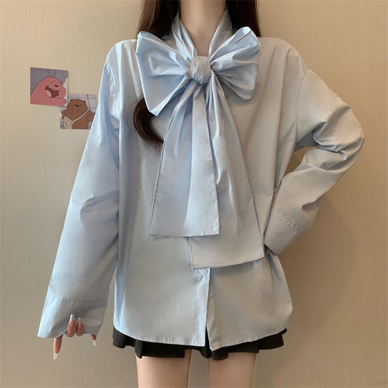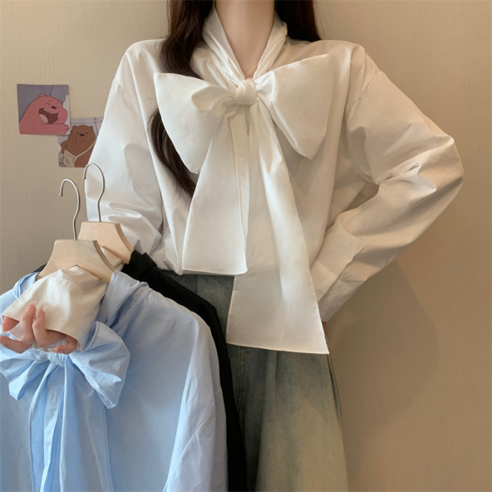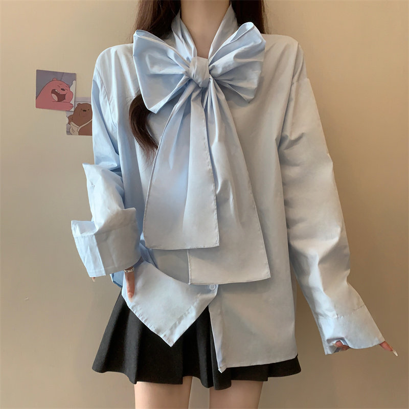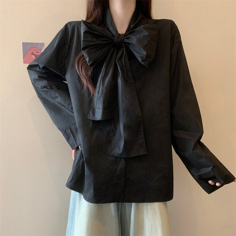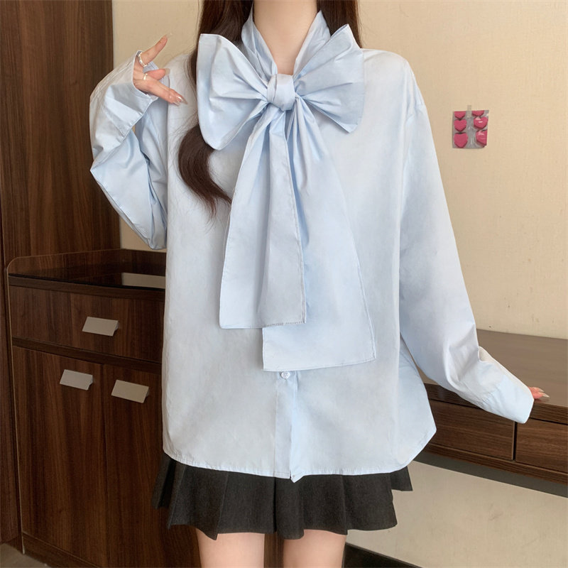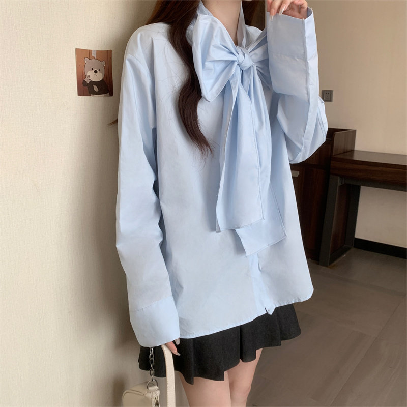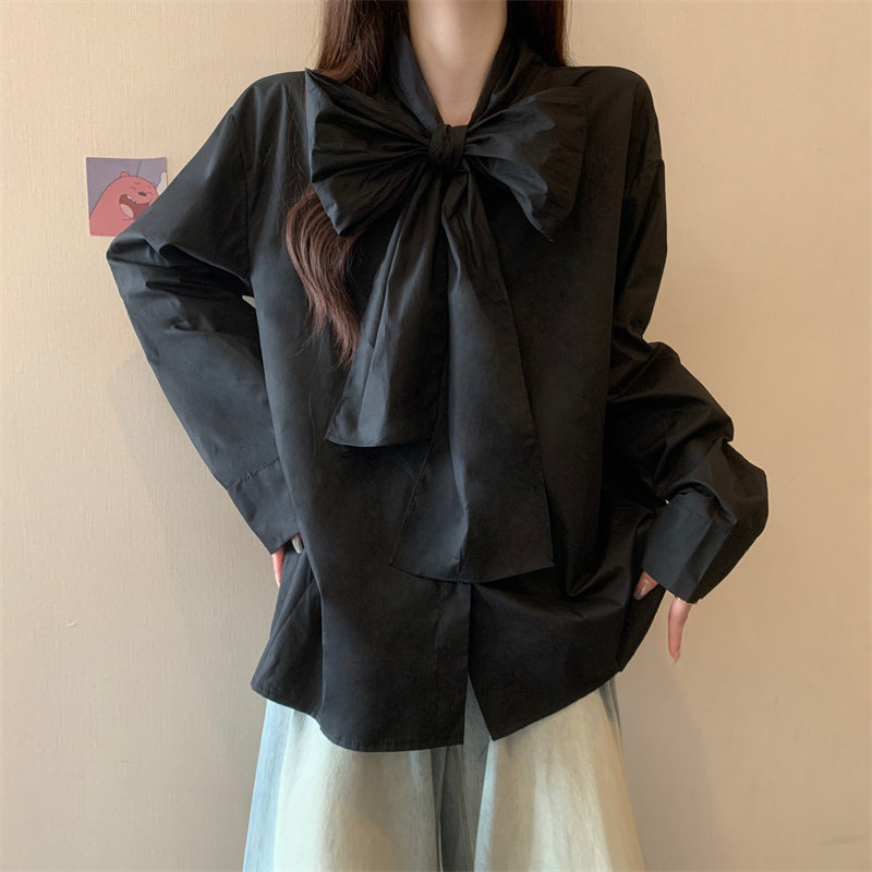 大碼法式休閒襯衫女2025新款秋季蝴蝶結白色襯衣胖MM遮肉顯瘦上衣