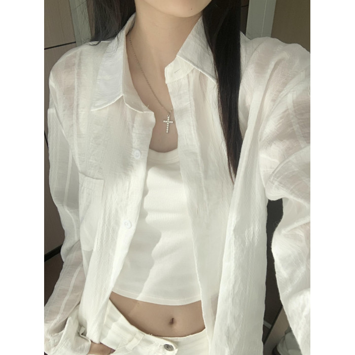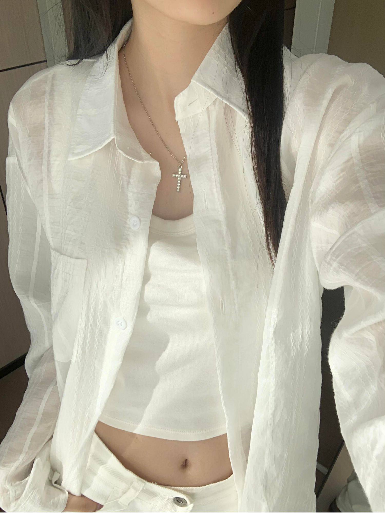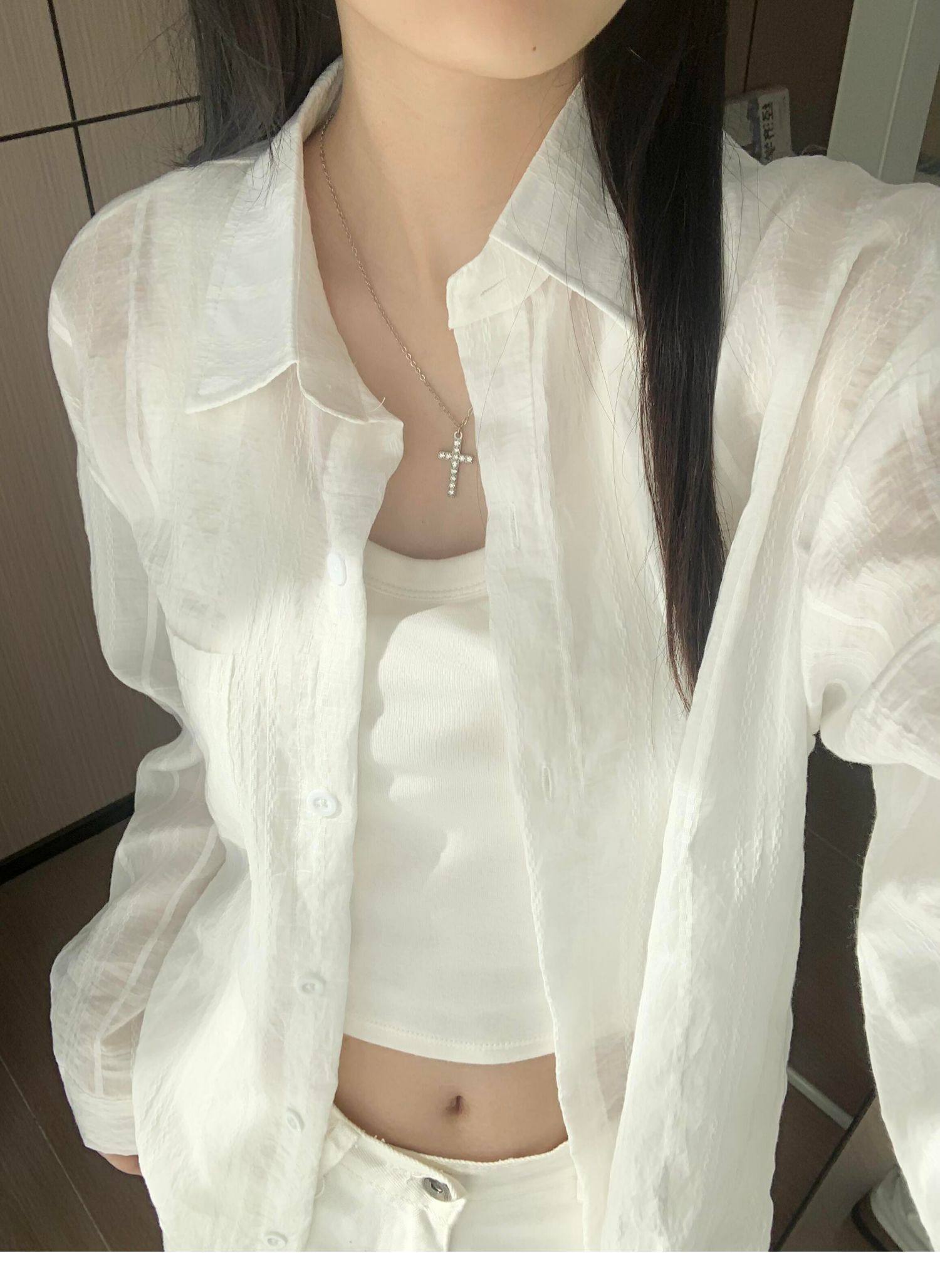 白色輕薄款防曬襯衫女款夏季2025新款氣質早春穿搭高級感上衣外套