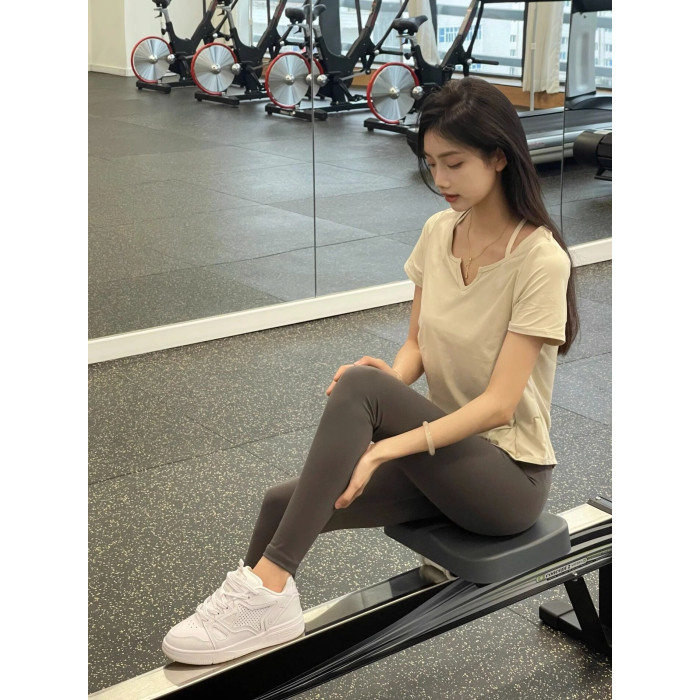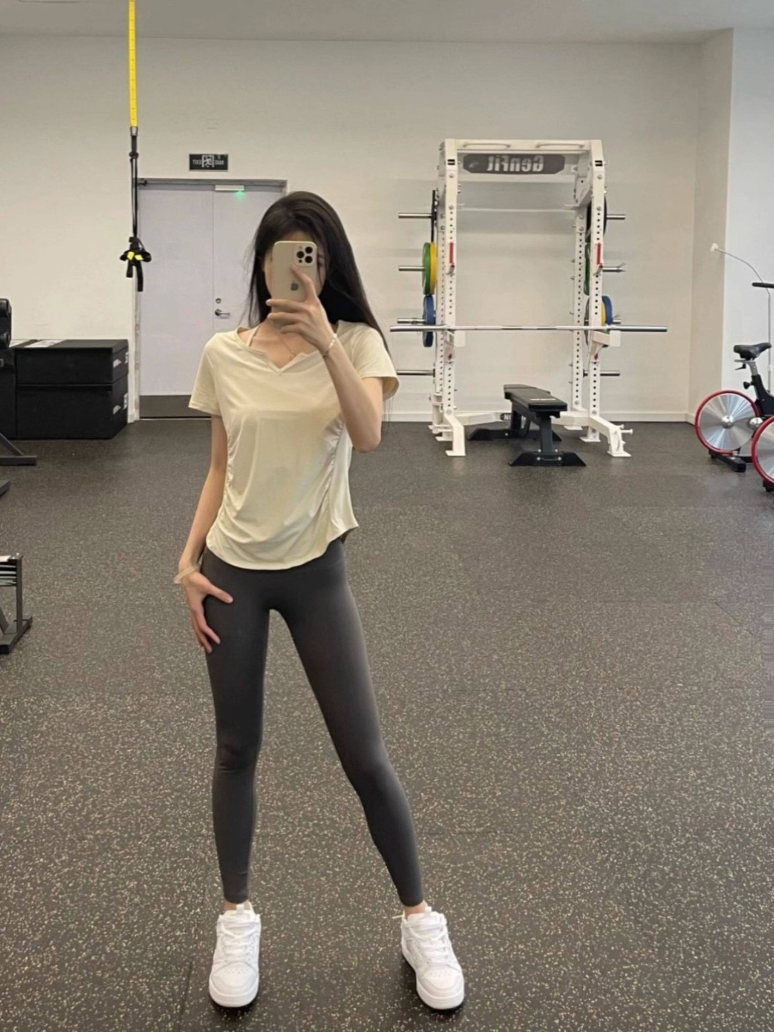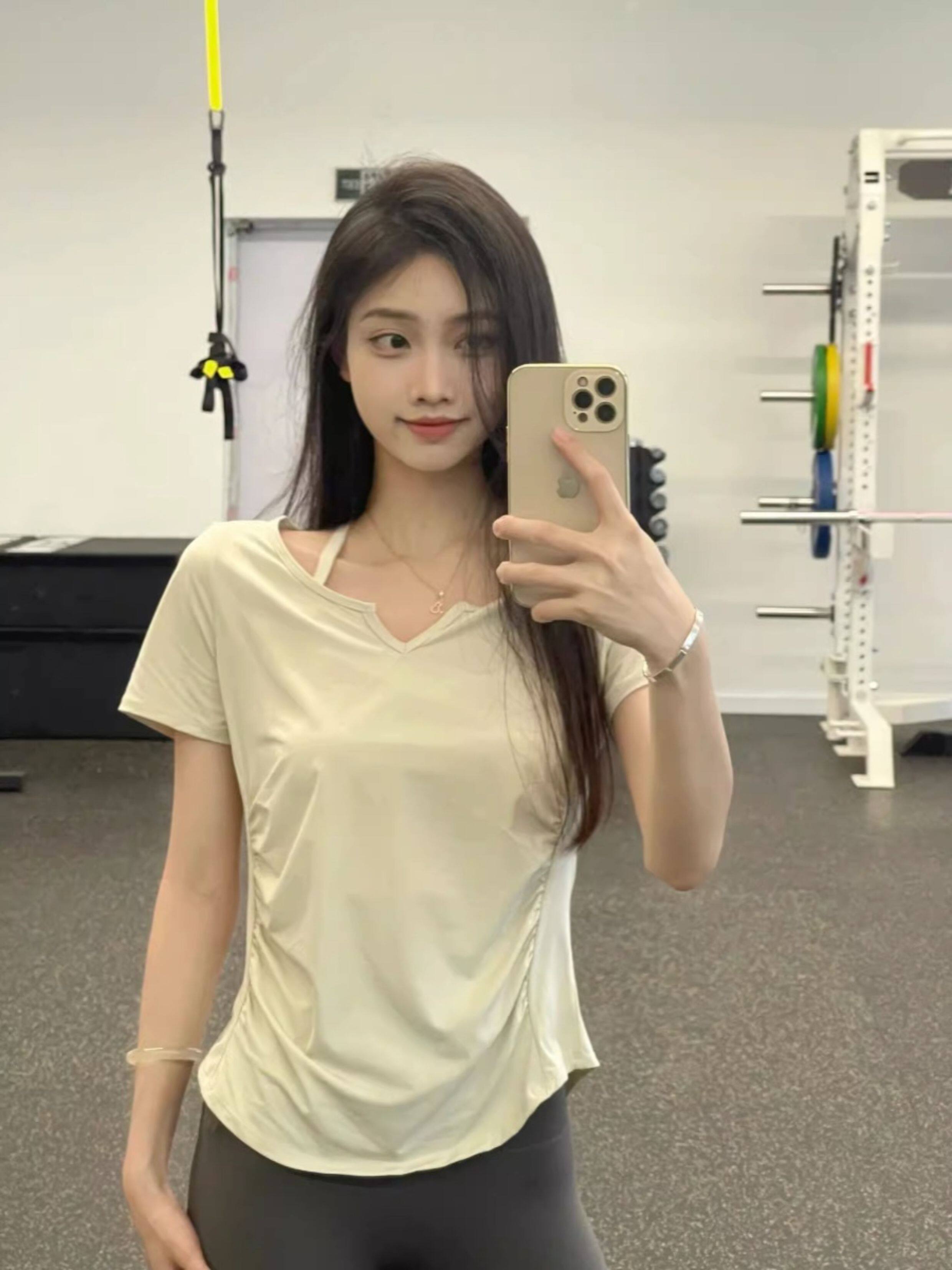美得怦然心動~運動健身短袖t恤女新款夏季緊身V領透氣瑜珈服上衣