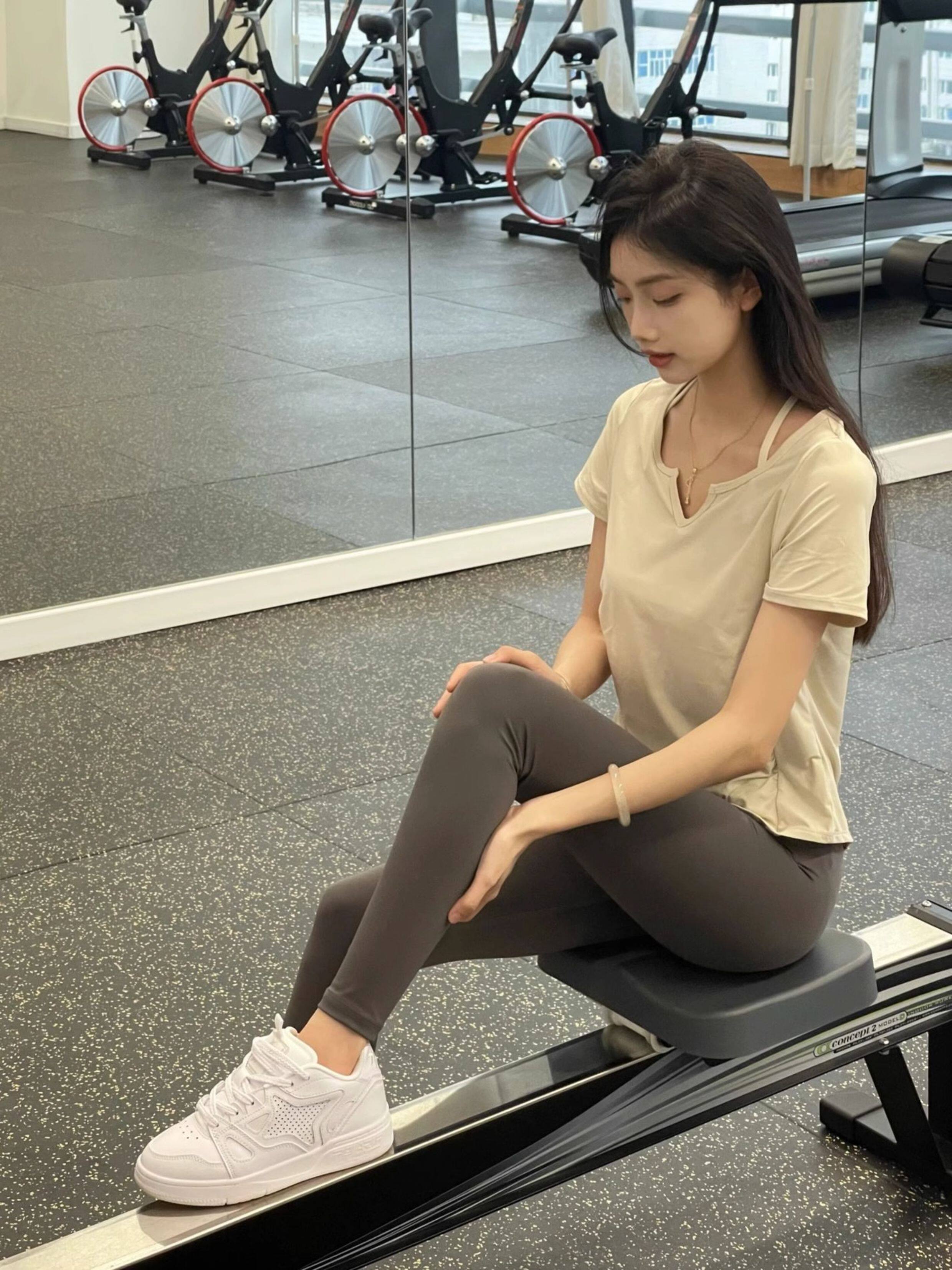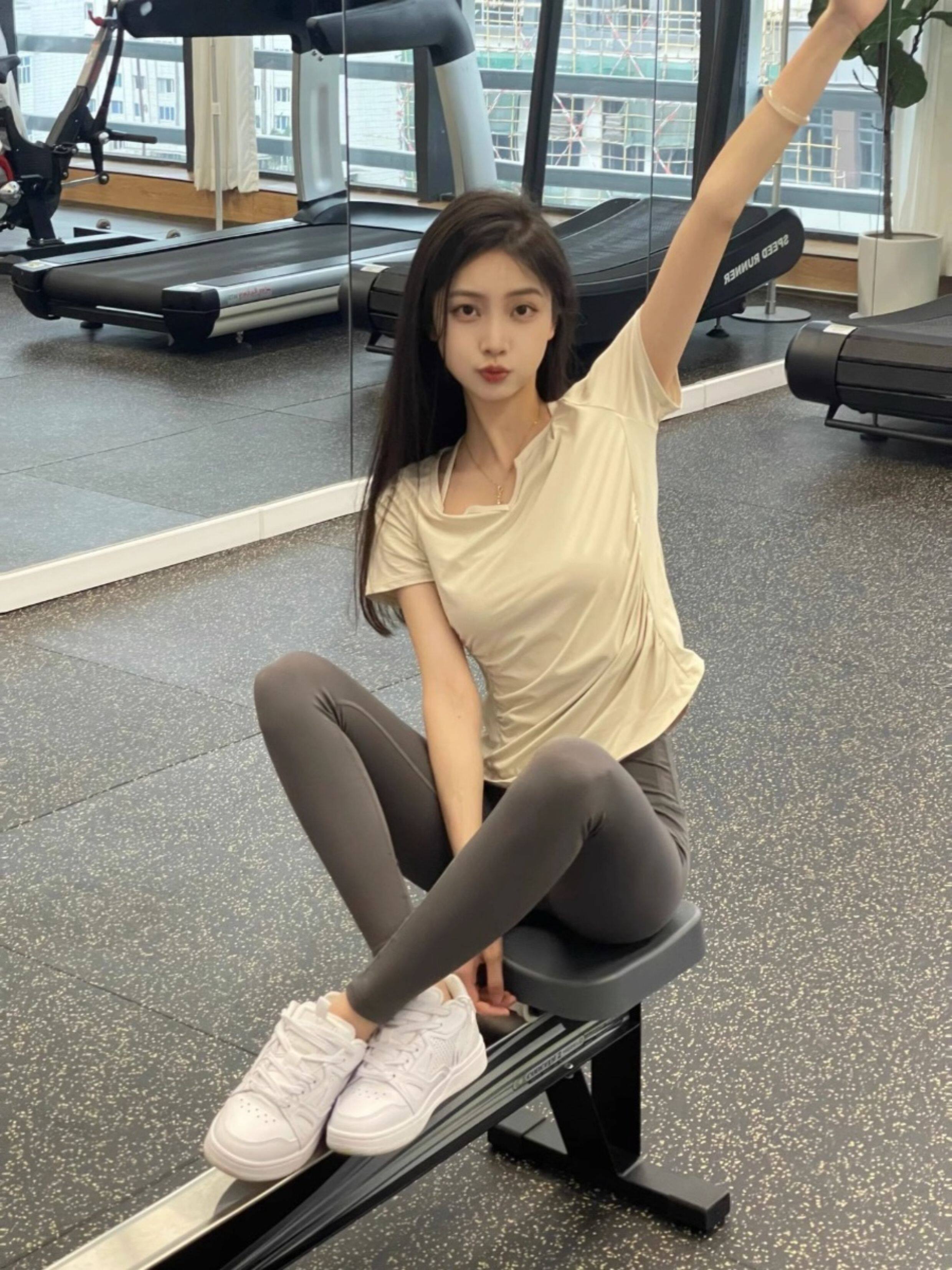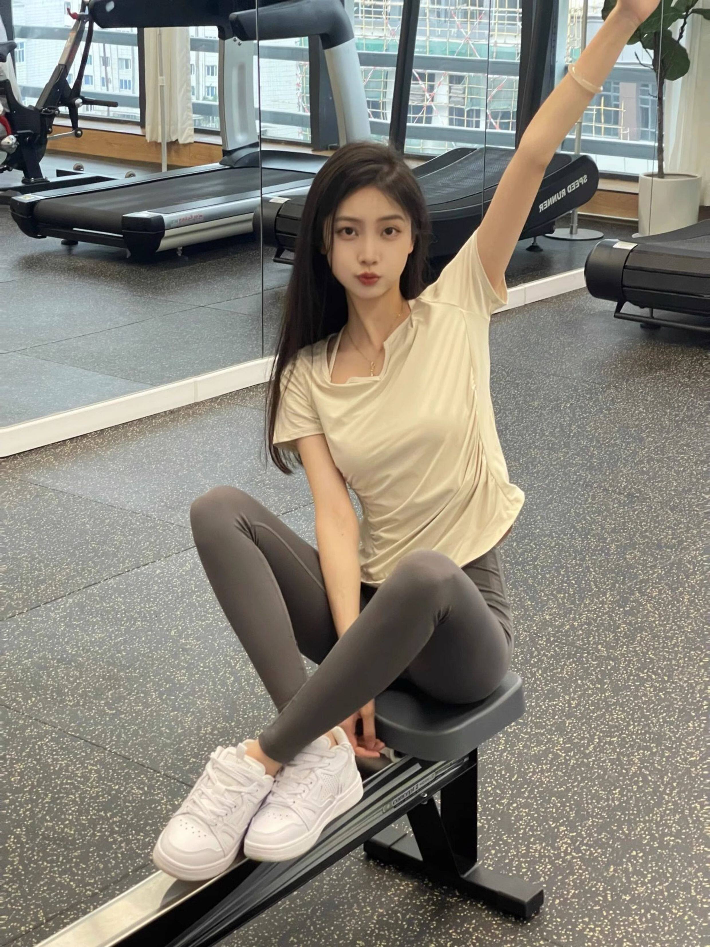 美得怦然心動~運動健身短袖t恤女新款夏季緊身V領透氣瑜珈服上衣