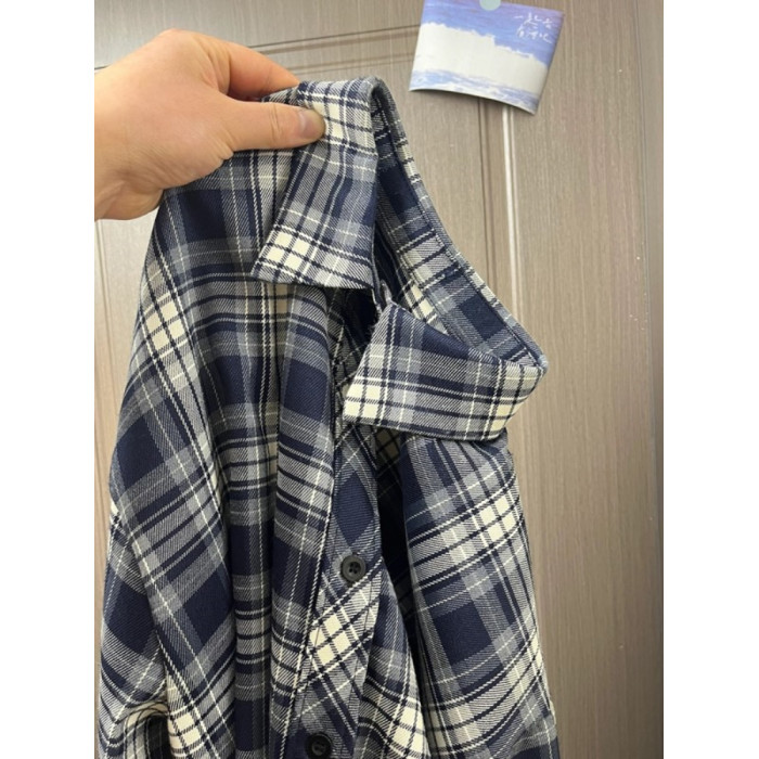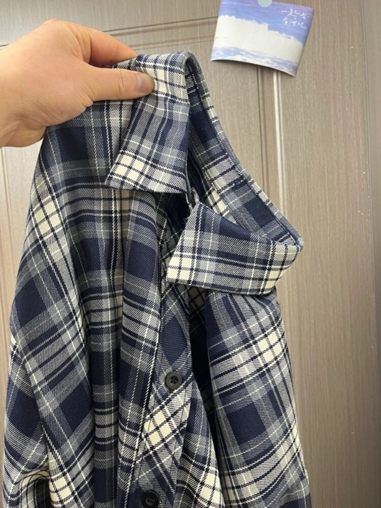 藏藍色格子襯衫內搭曡穿外穿上衣2025新款外套春秋款情侶裝襯衣女