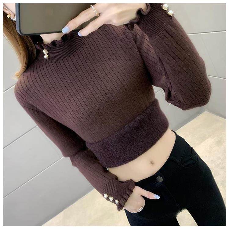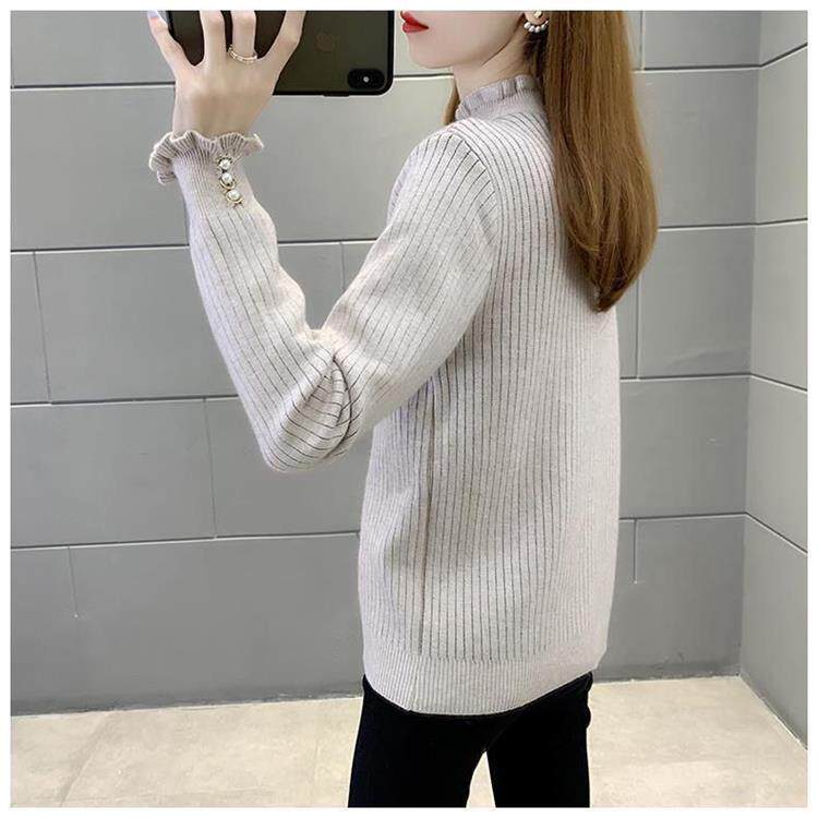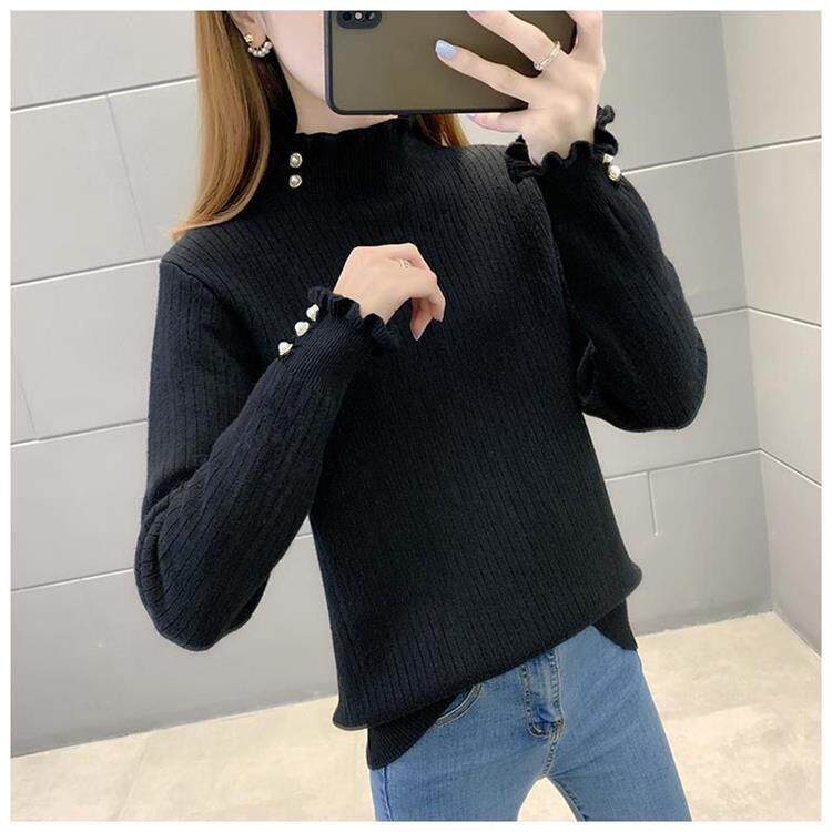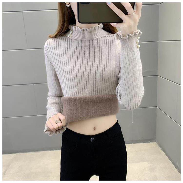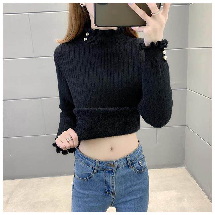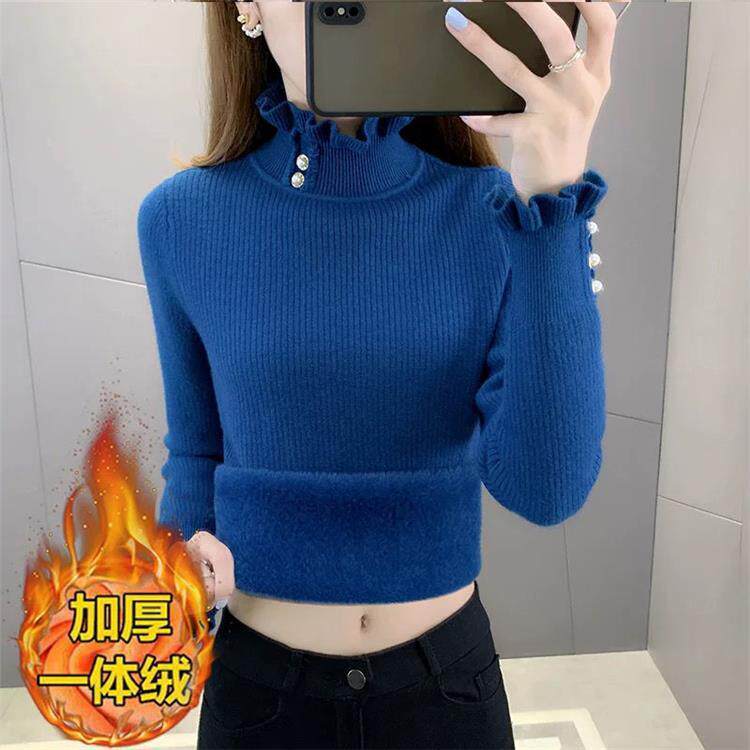 一體絨保暖修身毛衣女秋冬半高領加絨加厚針織打底衫女內搭套頭