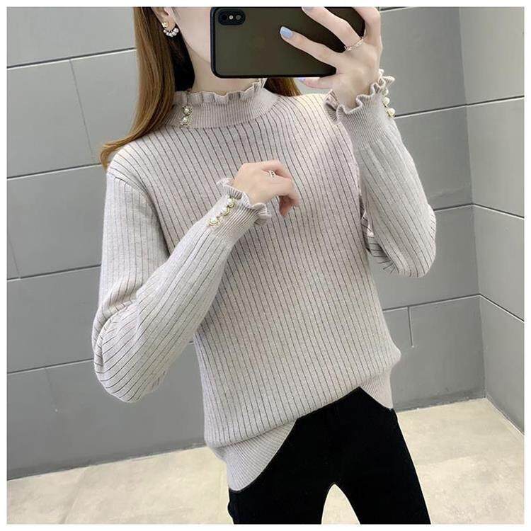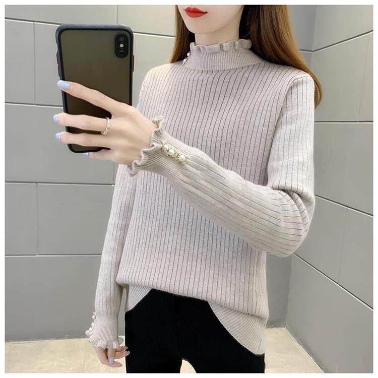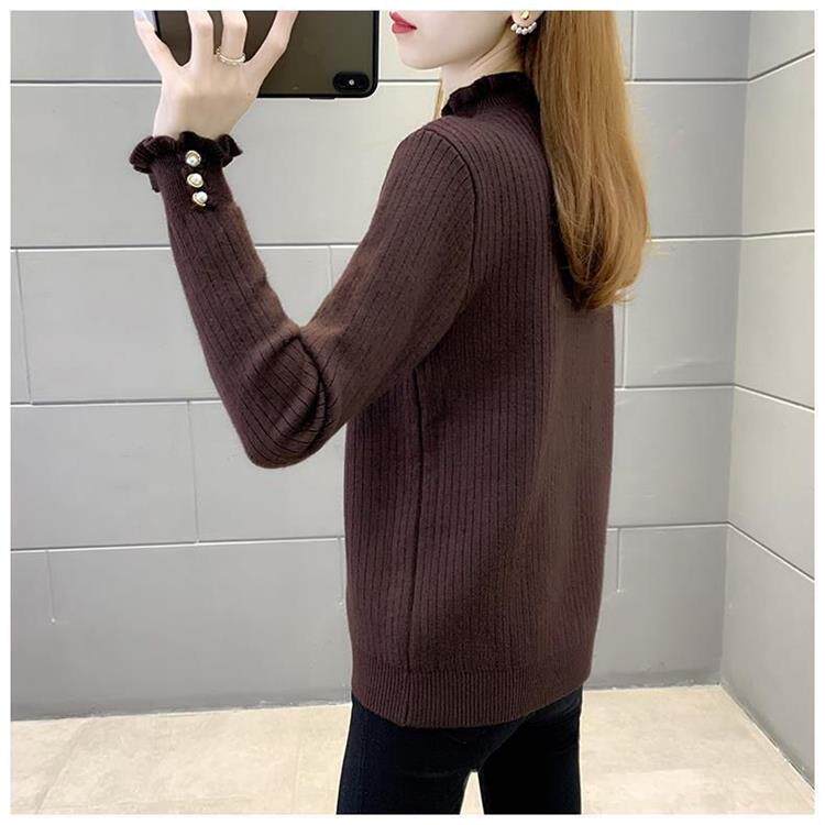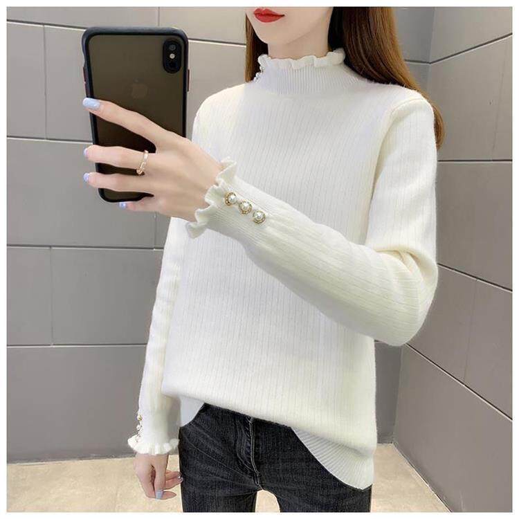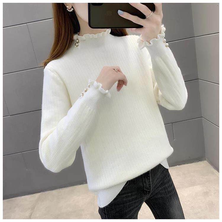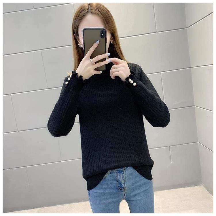 一體絨保暖修身毛衣女秋冬半高領加絨加厚針織打底衫女內搭套頭