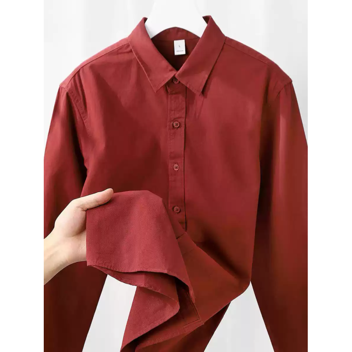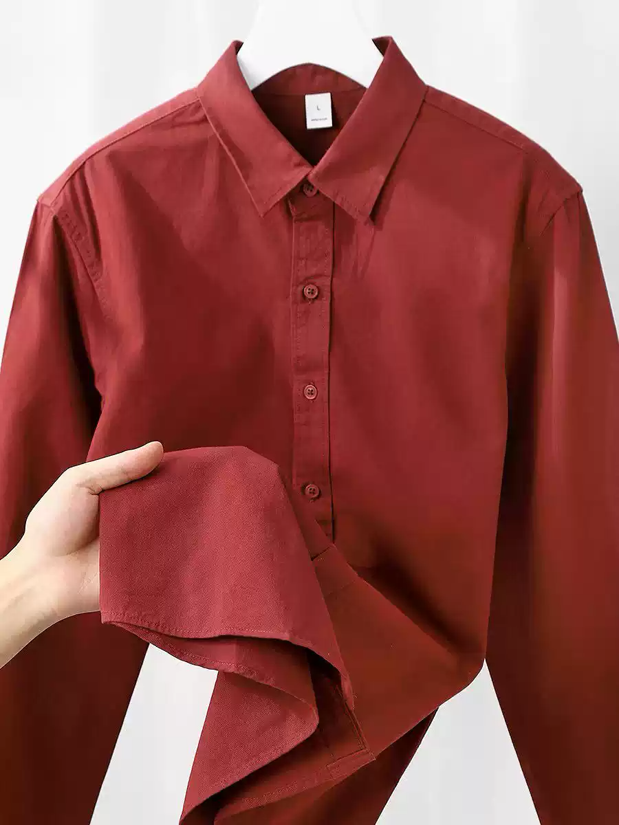 100%棉輕奢復古安可拉紅襯衫女內搭純棉寬鬆遮肉顯瘦長袖襯衣外套
