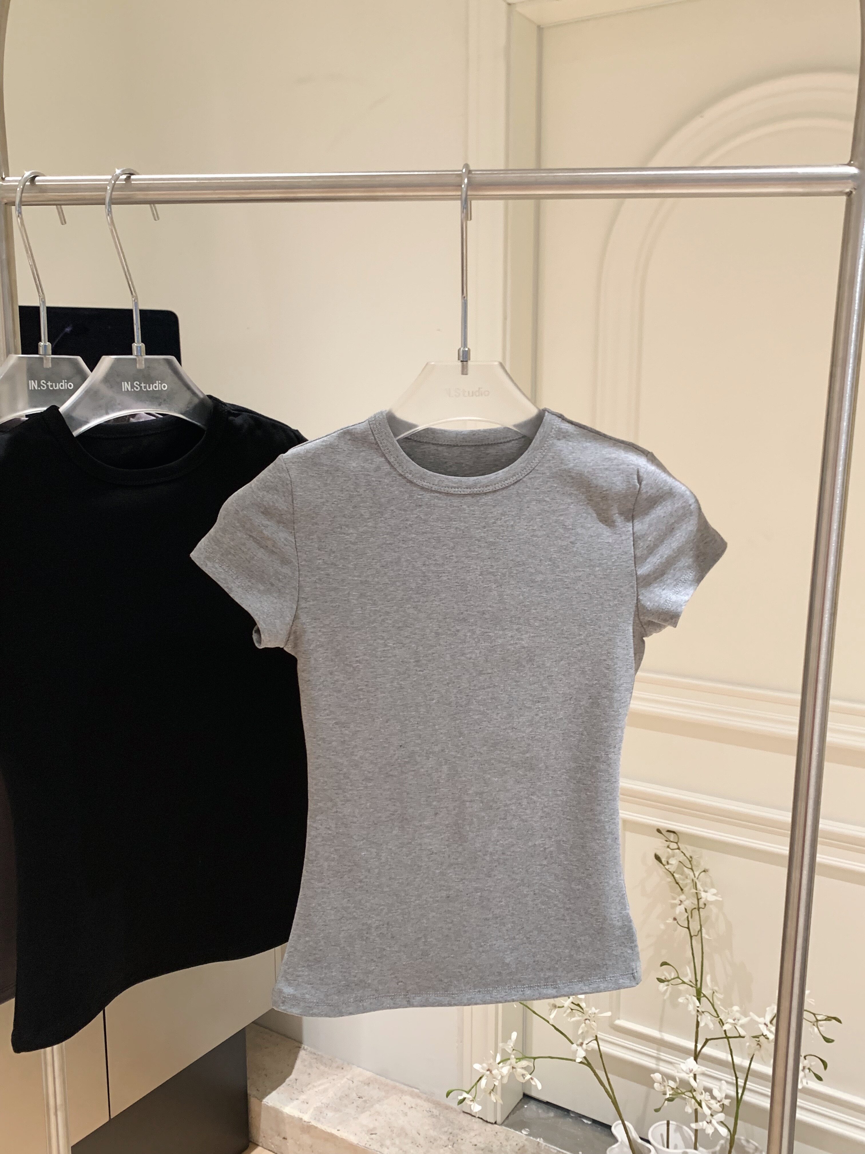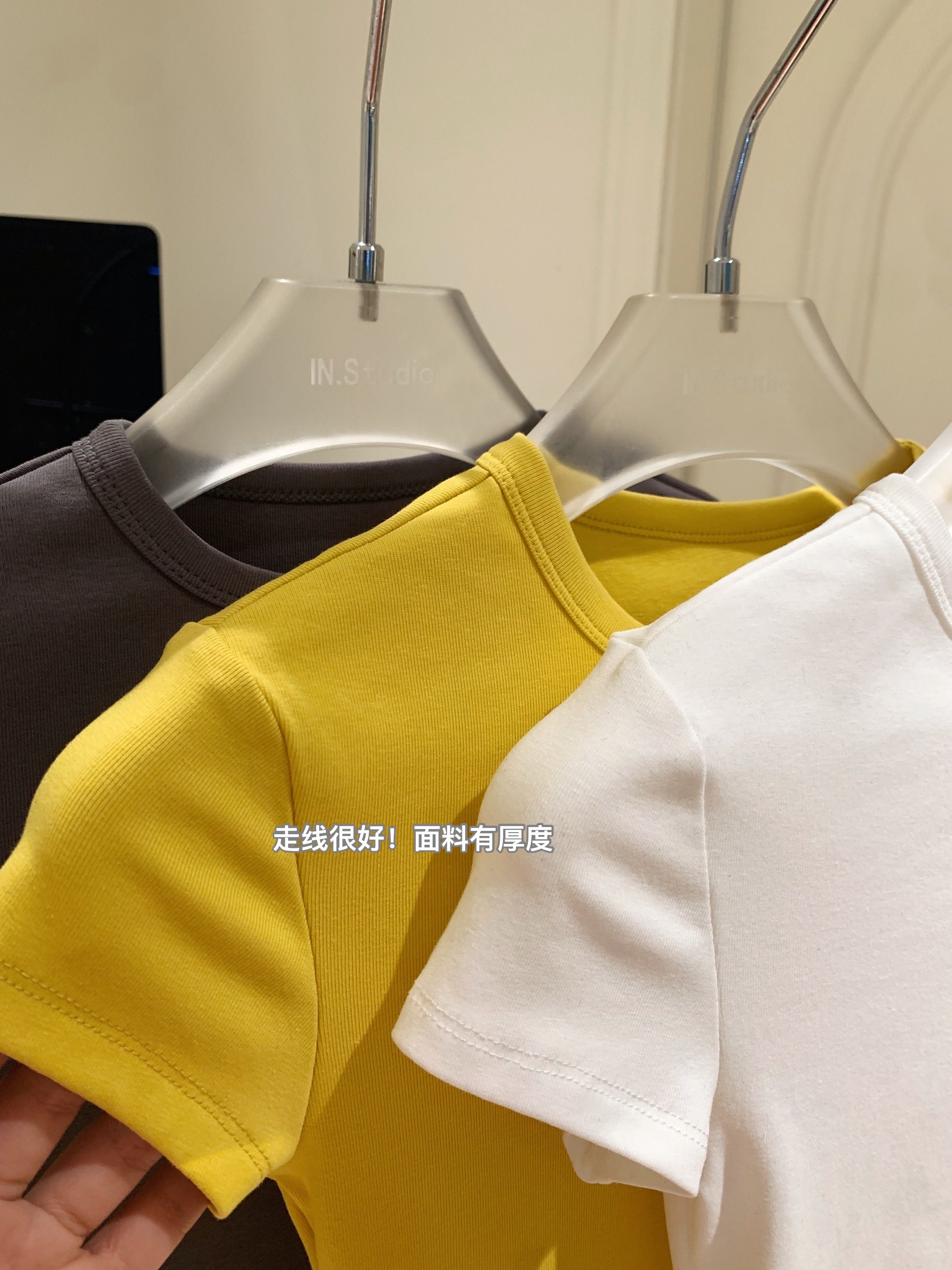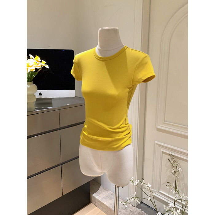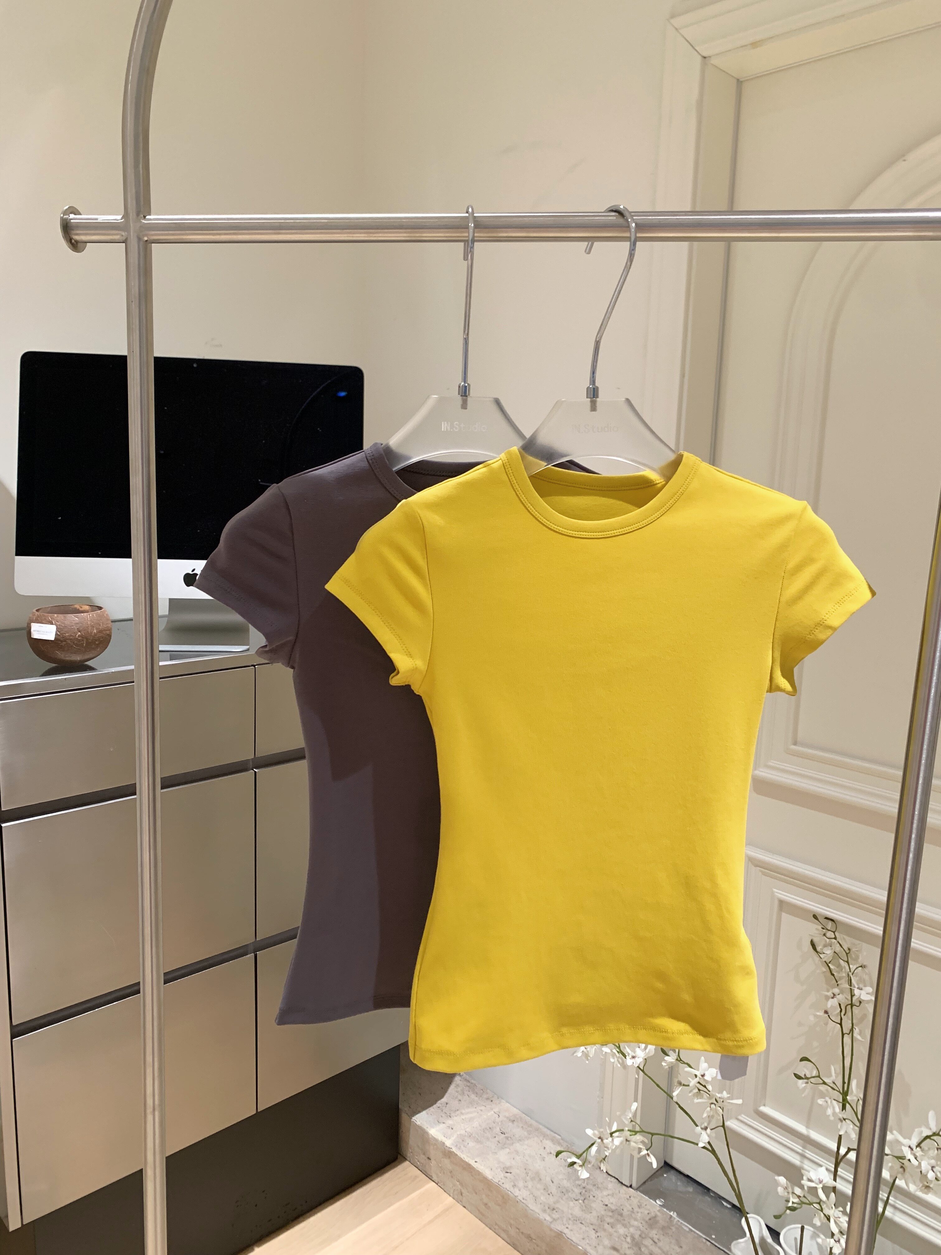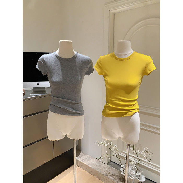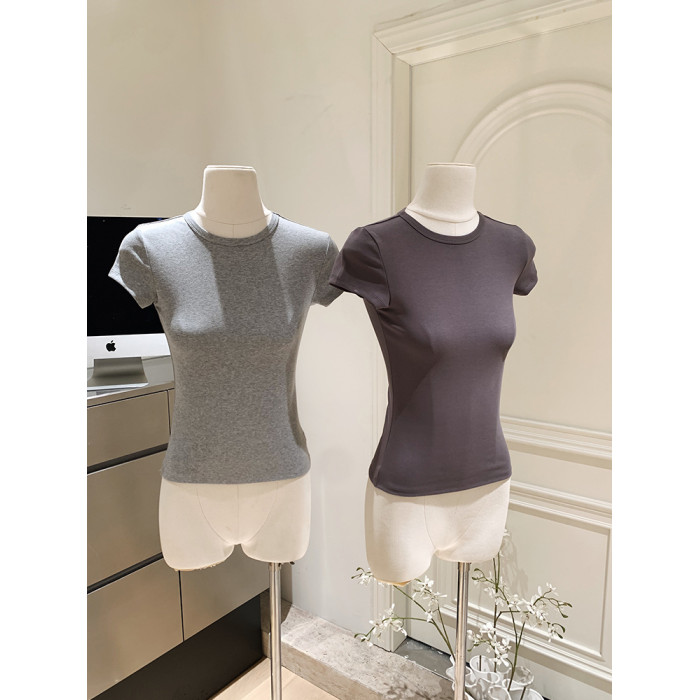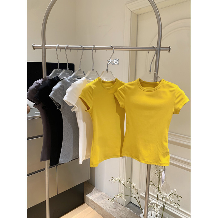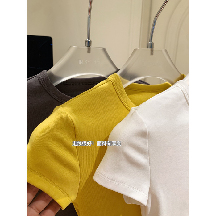 LINAN自製 新款感韓系正肩神仙百搭簡約圓領修身針織短袖T恤