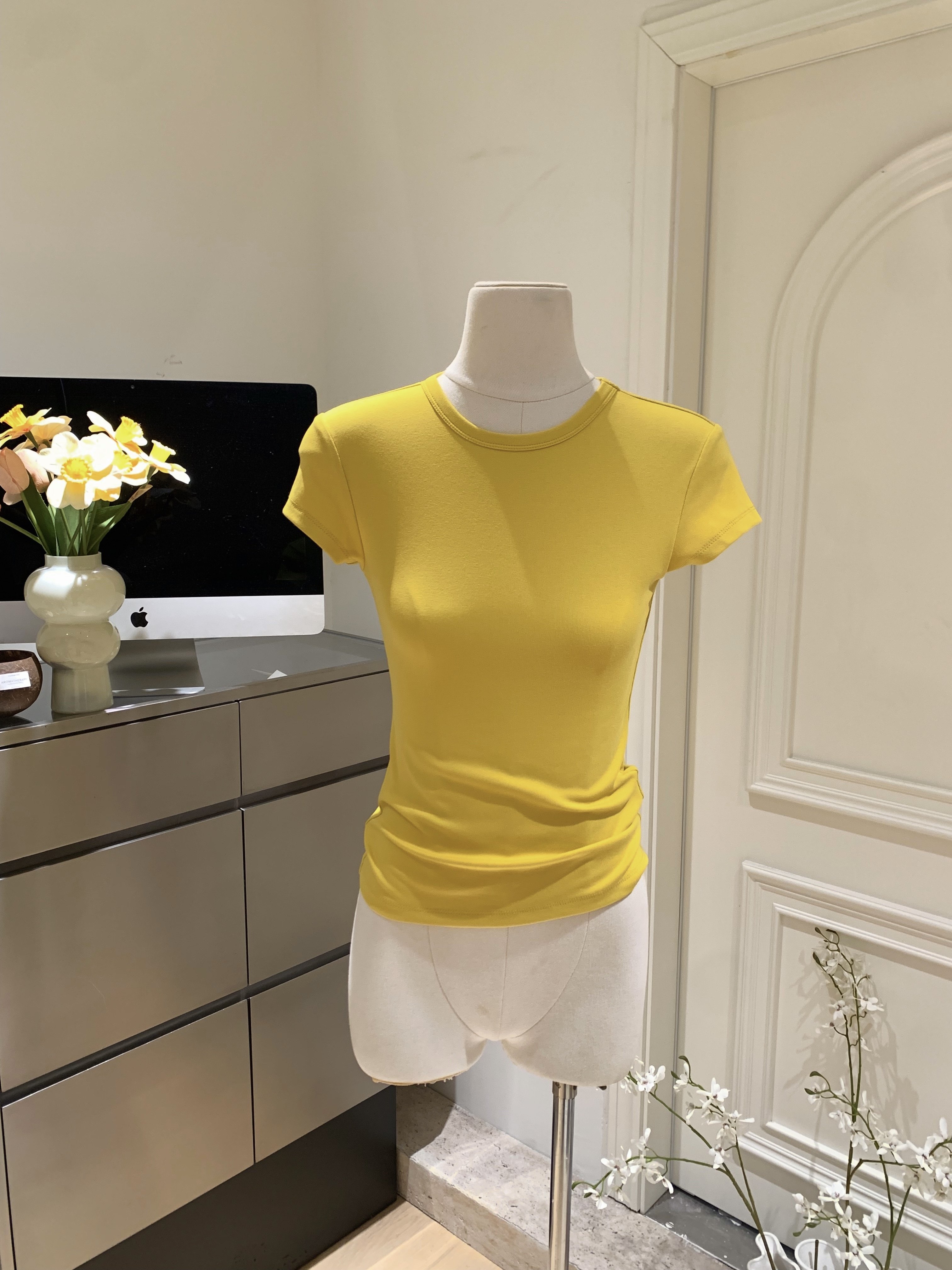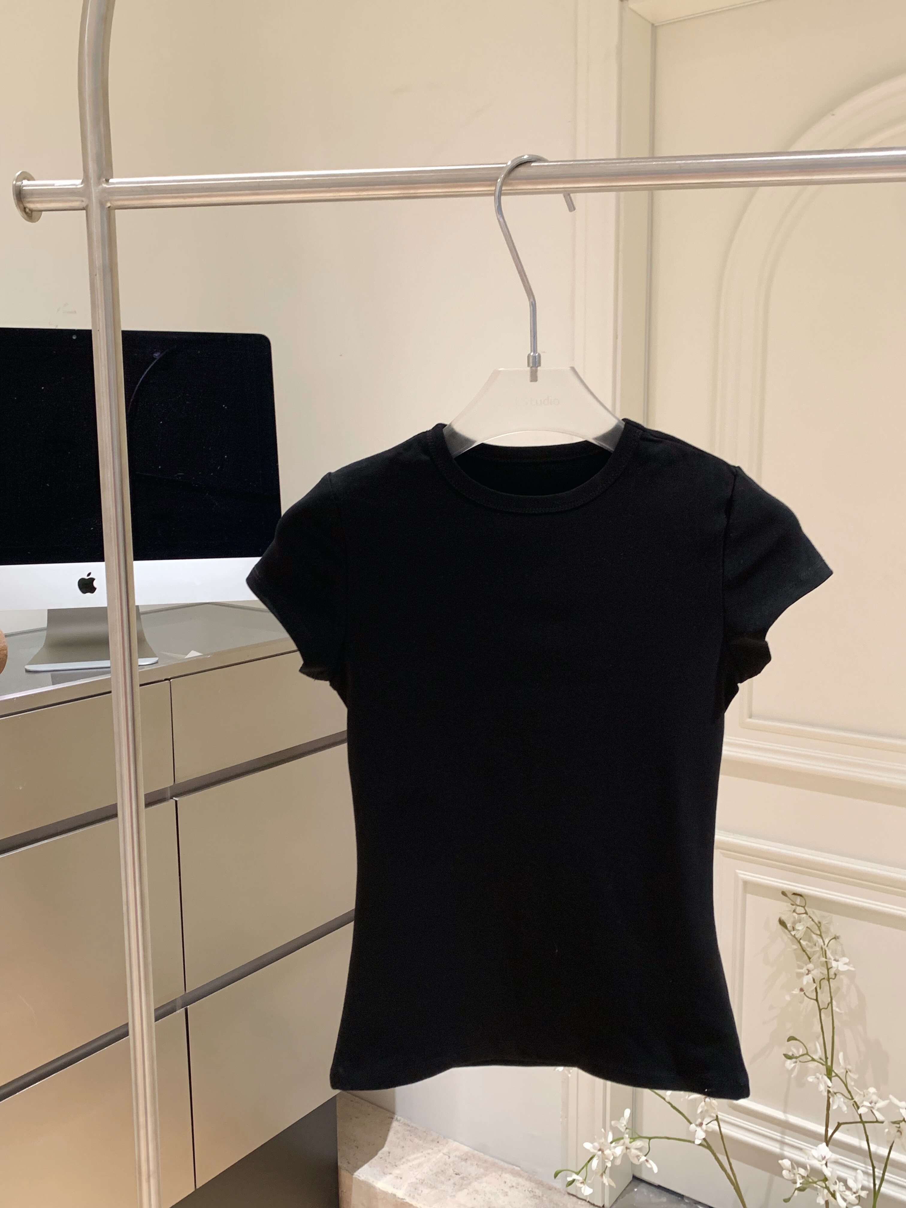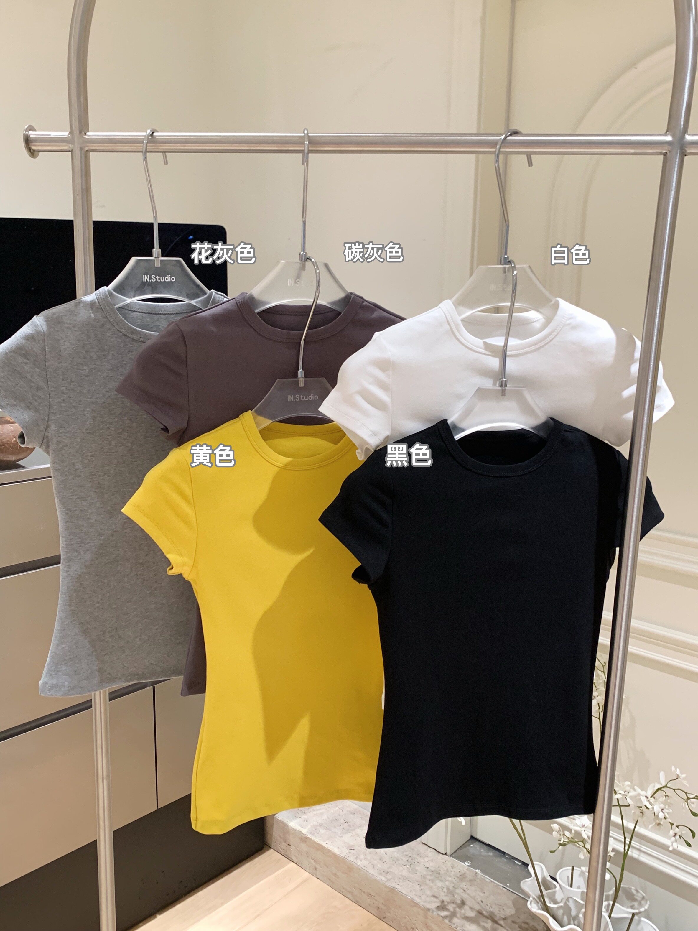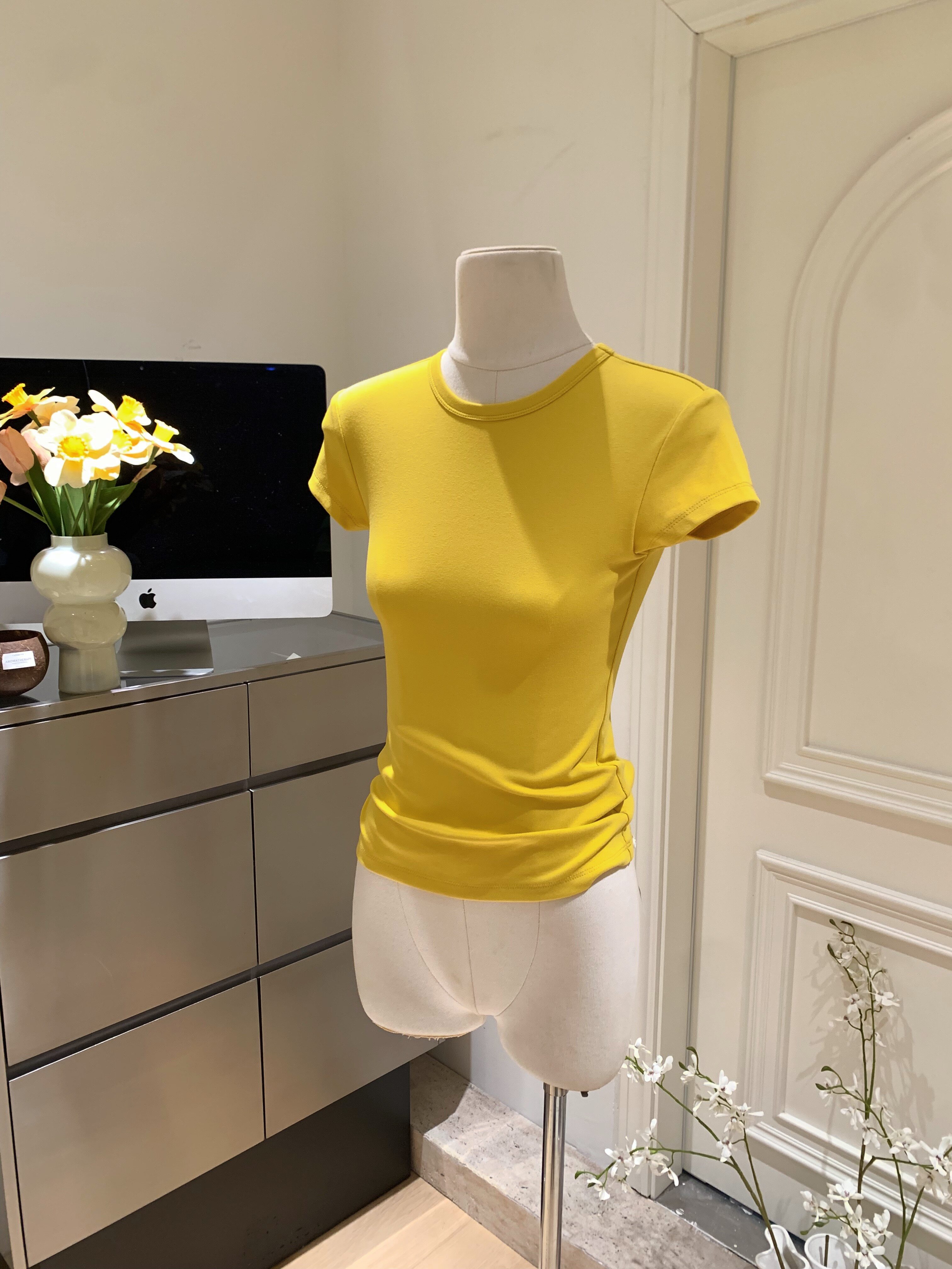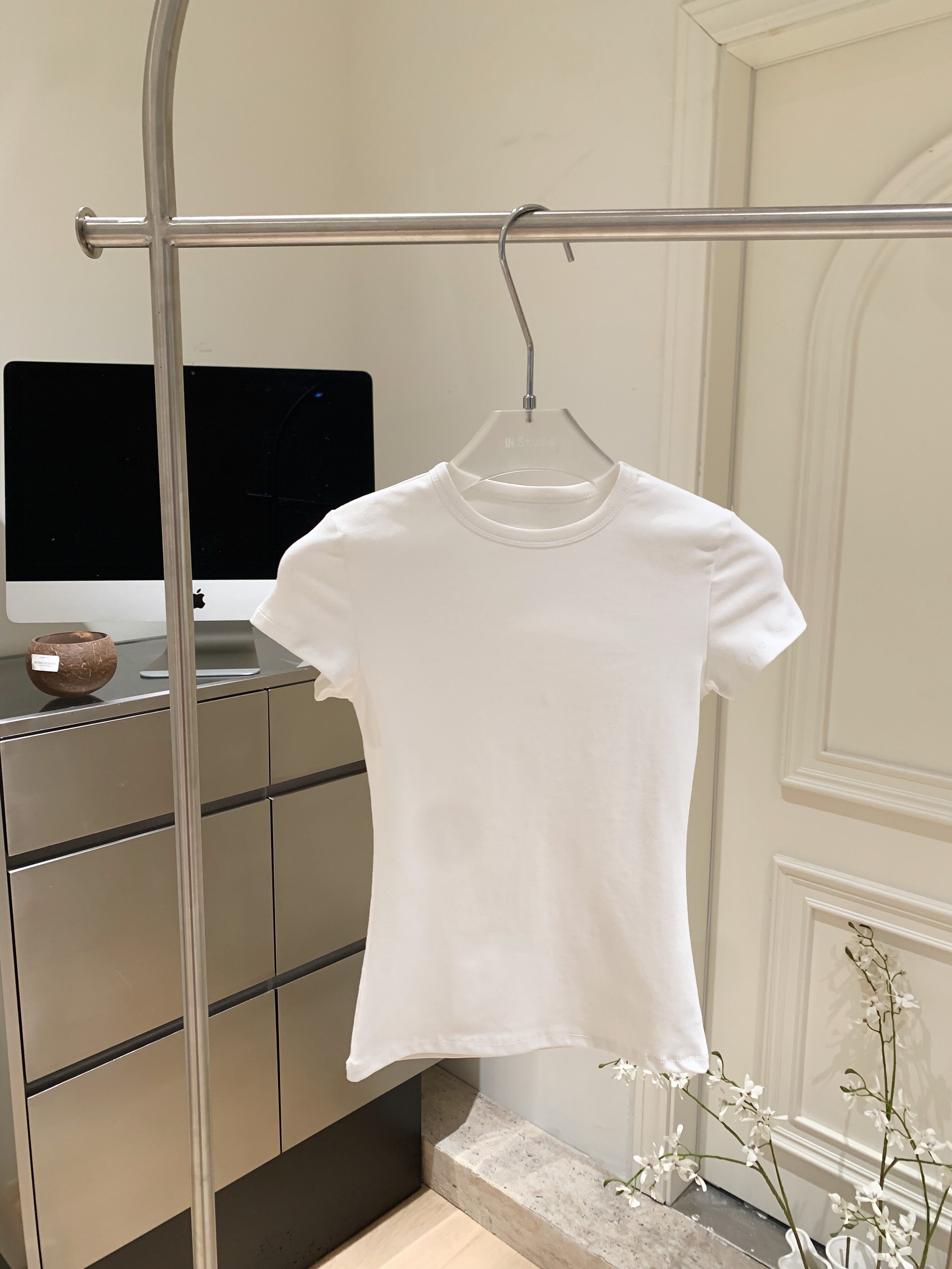LINAN自製 新款感韓系正肩神仙百搭簡約圓領修身針織短袖T恤