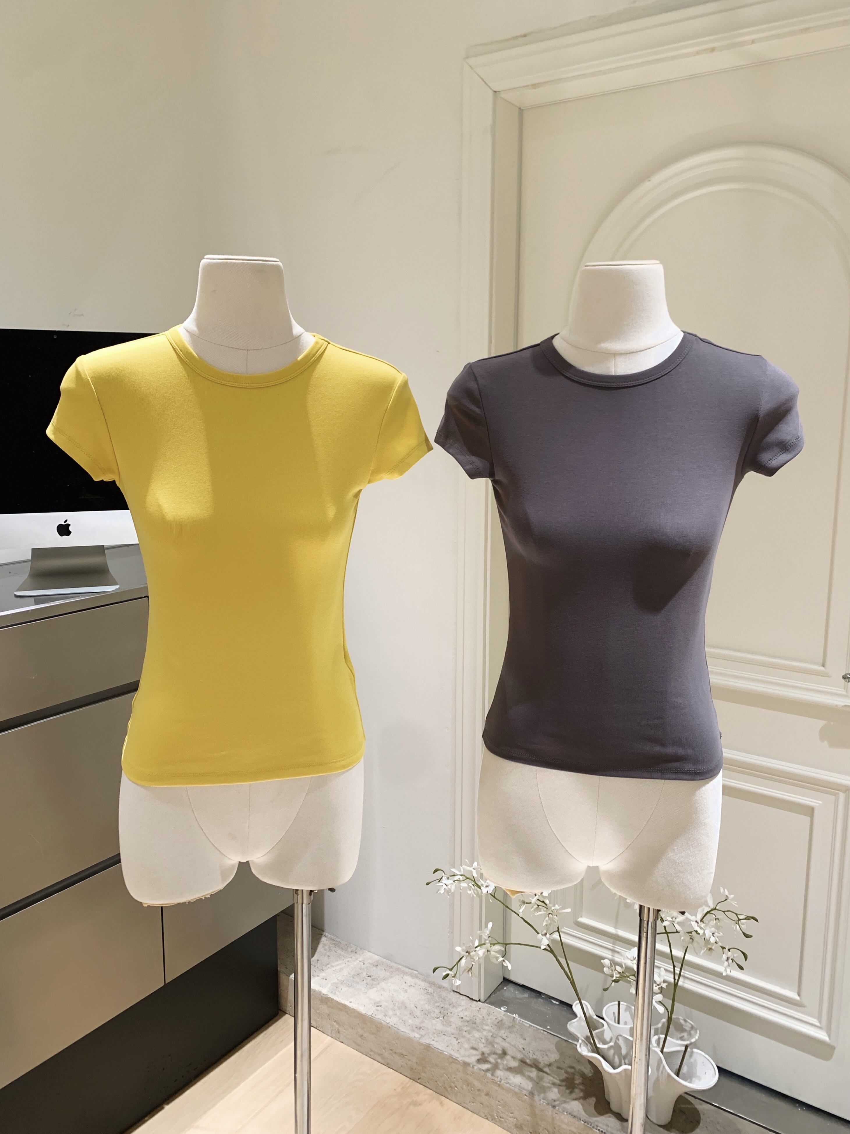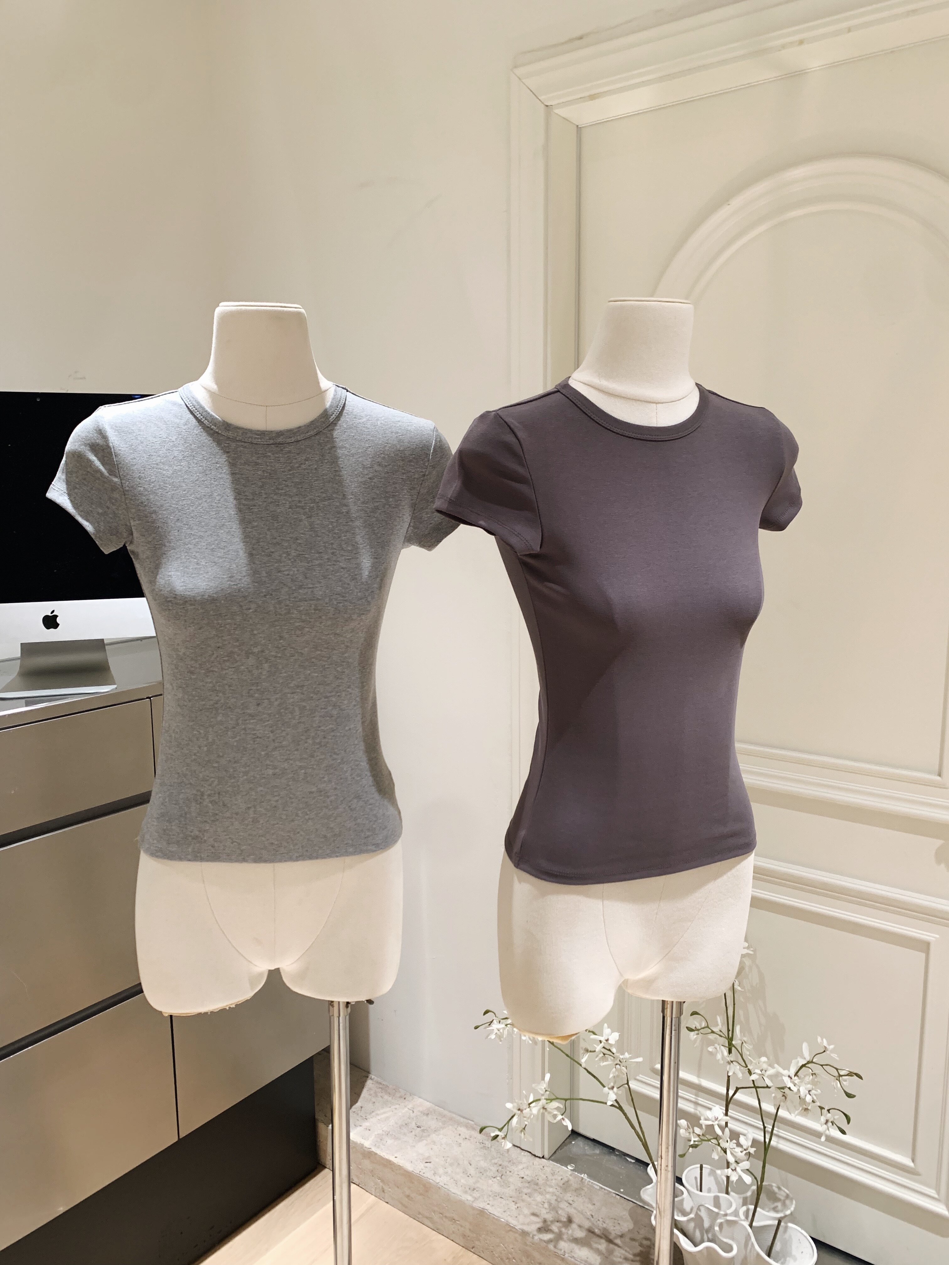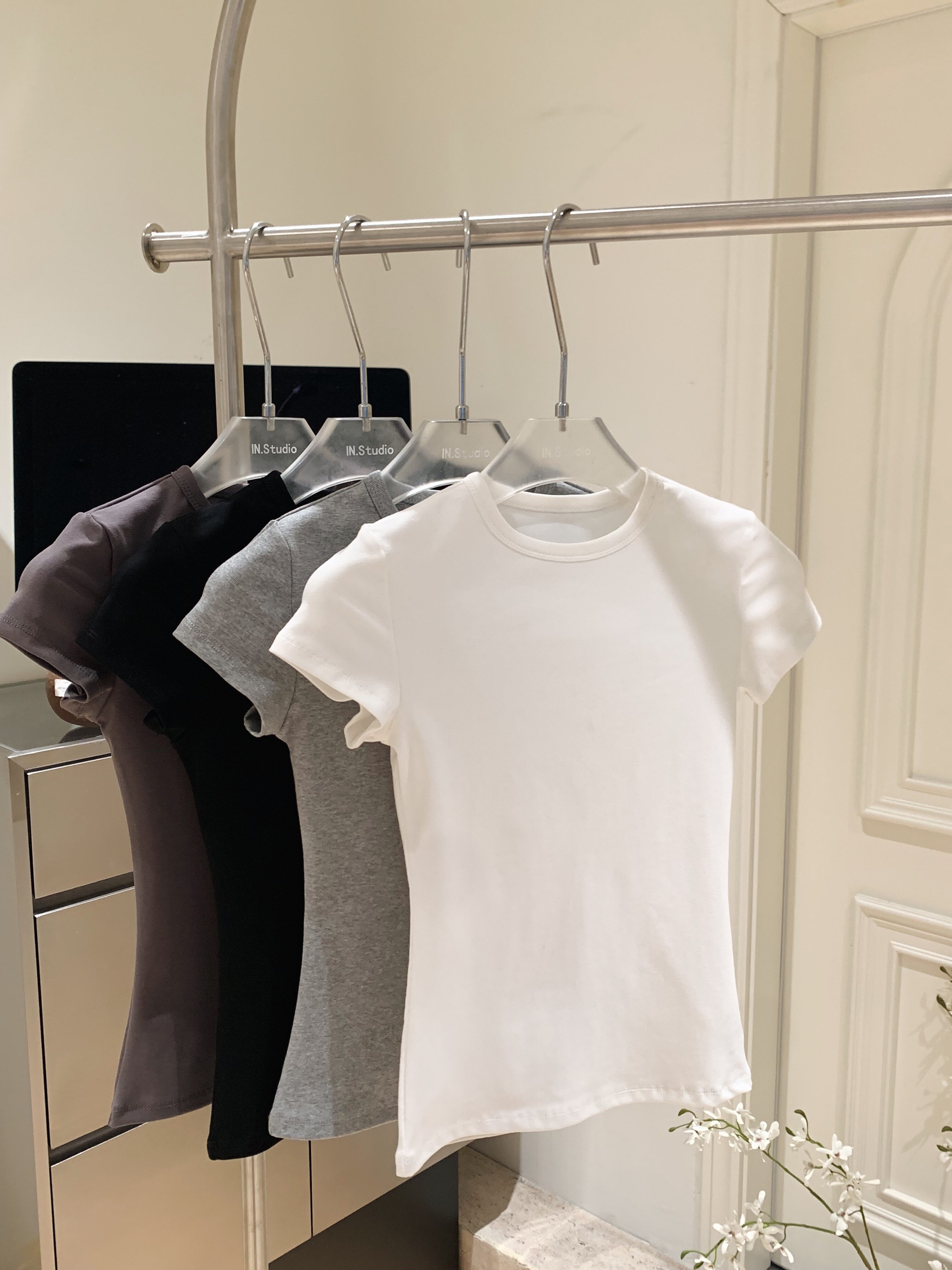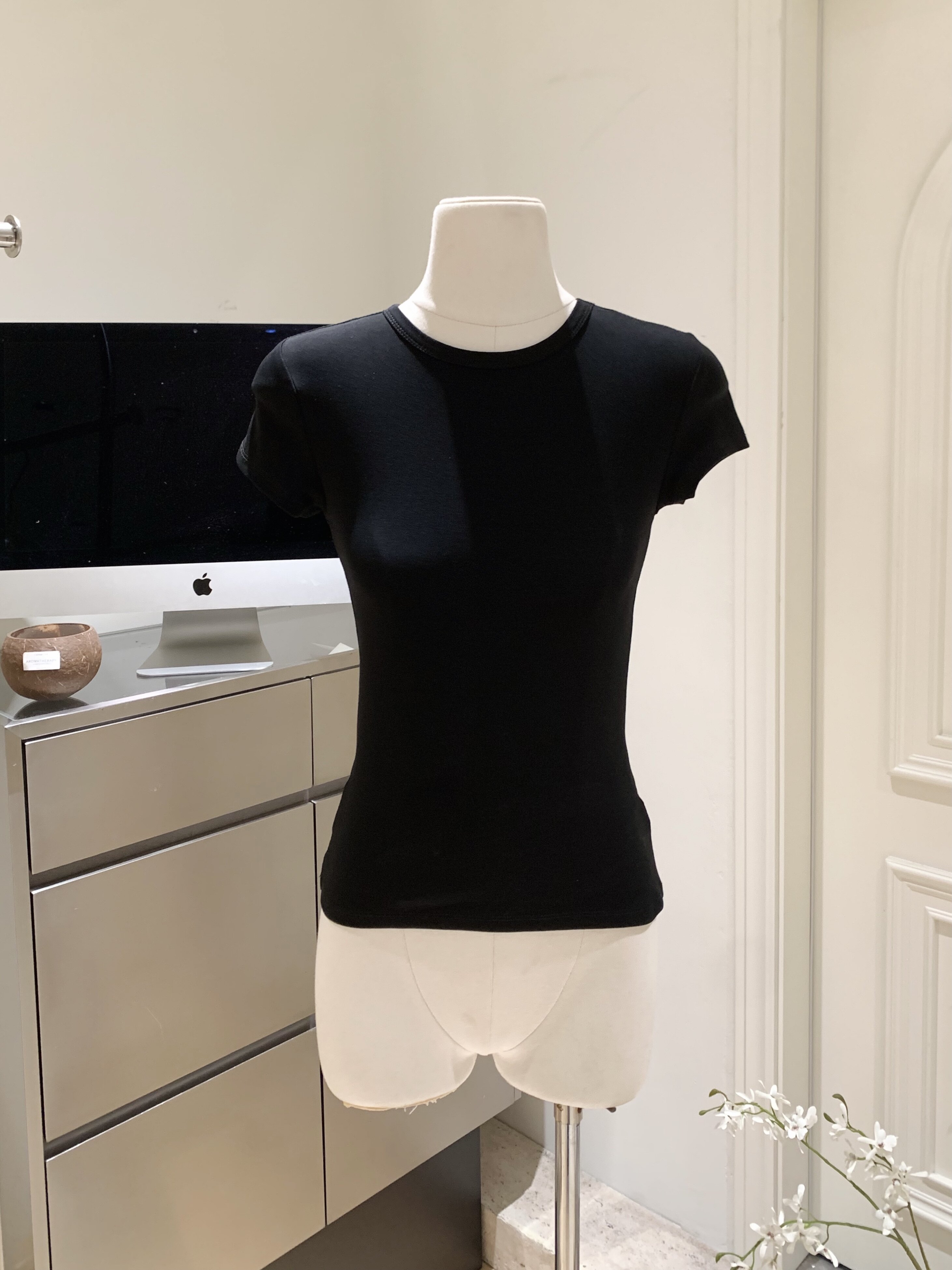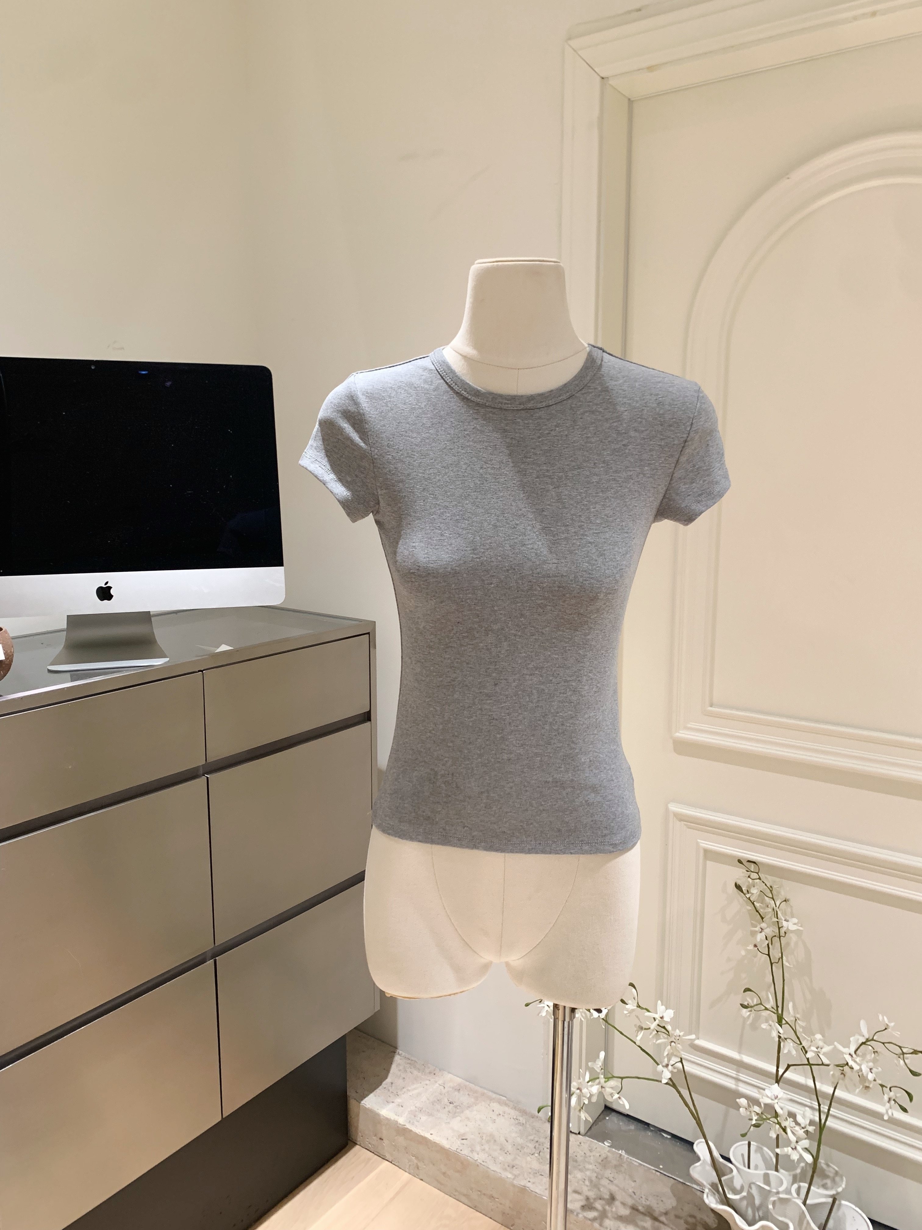LINAN自製 新款感韓系正肩神仙百搭簡約圓領修身針織短袖T恤