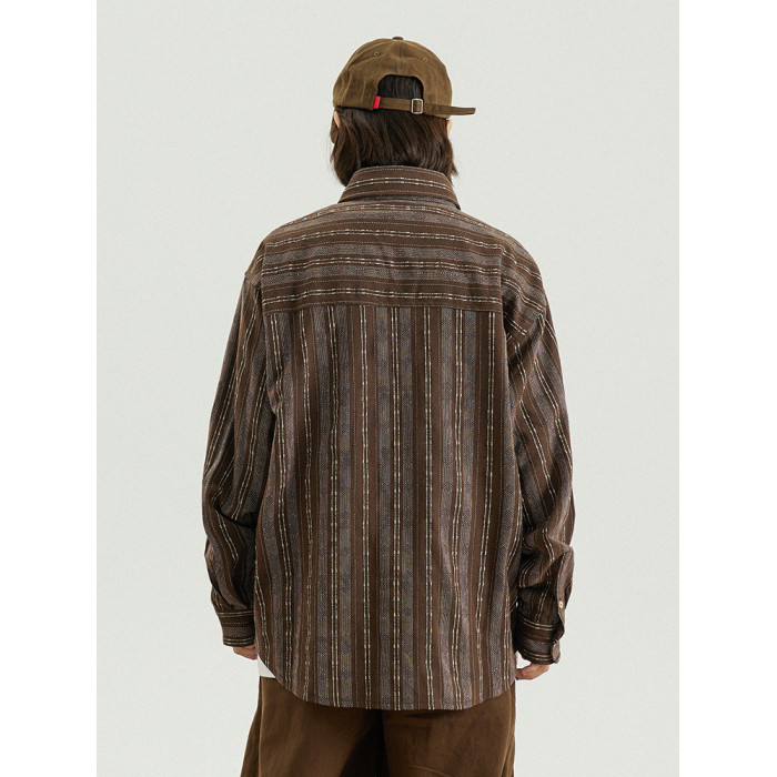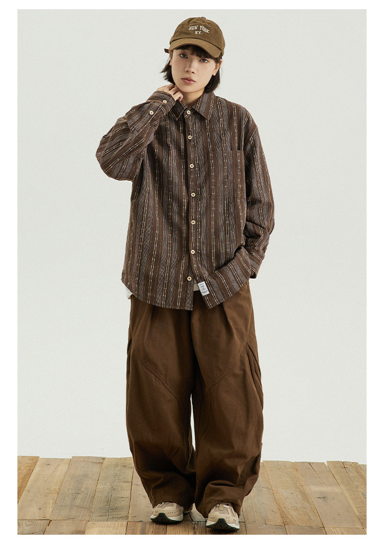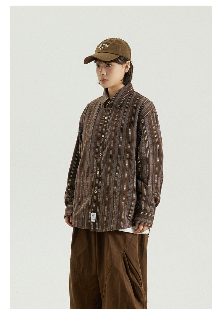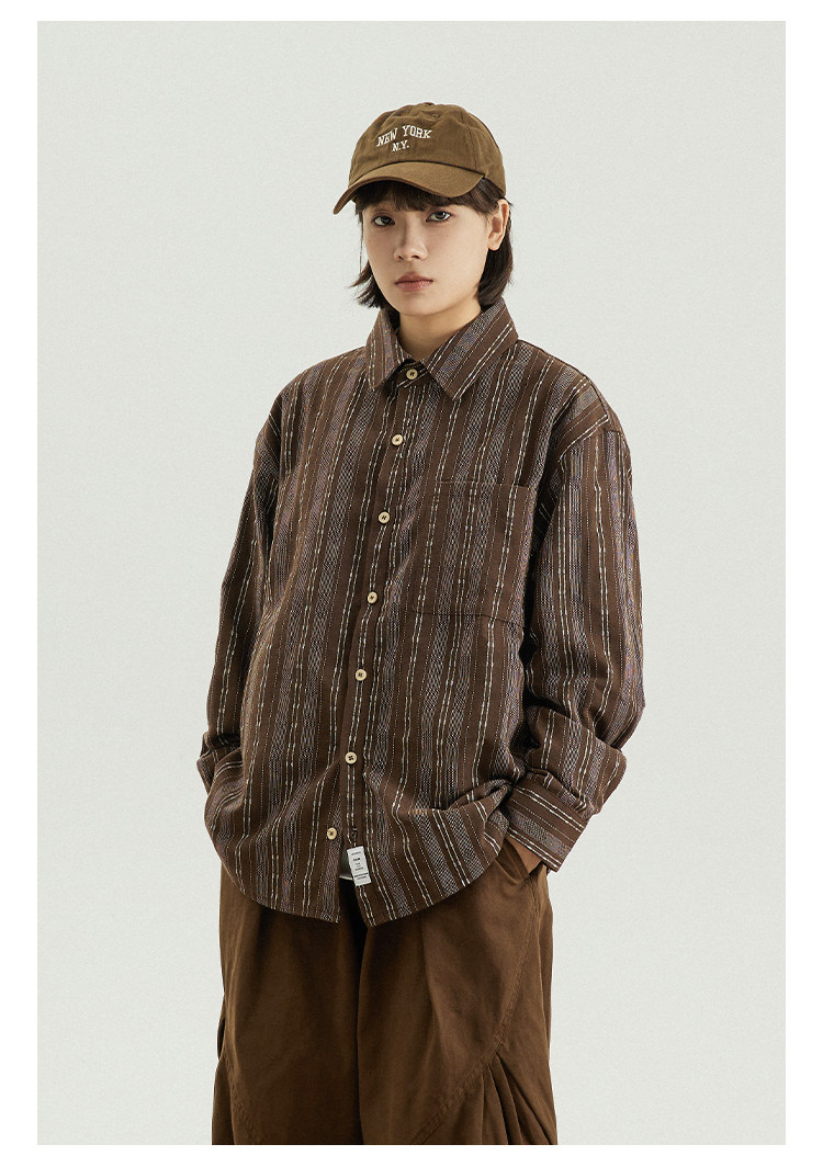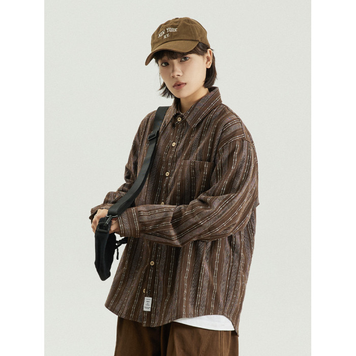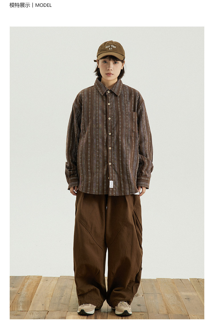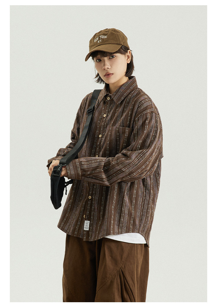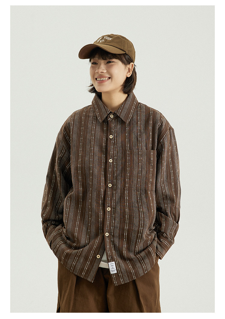GoodNorth 2025新款日系文藝復古竪條紋長袖襯衫男女同款寬鬆襯衣