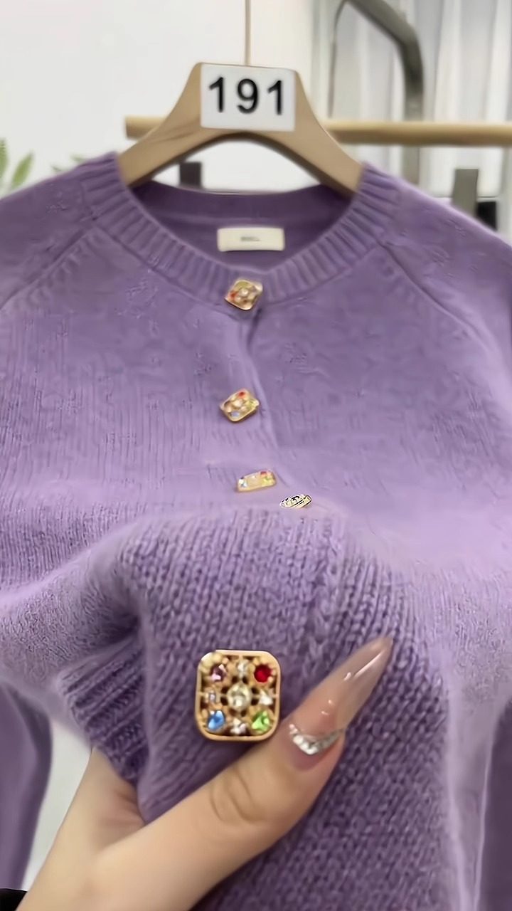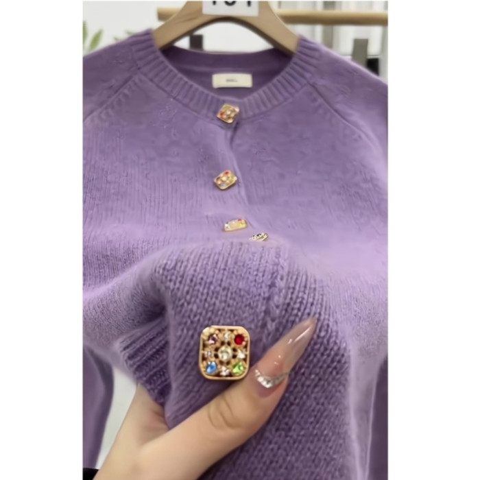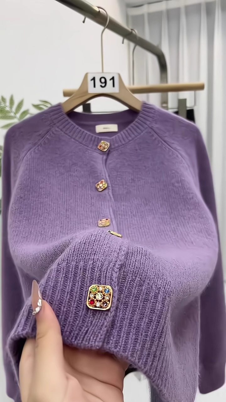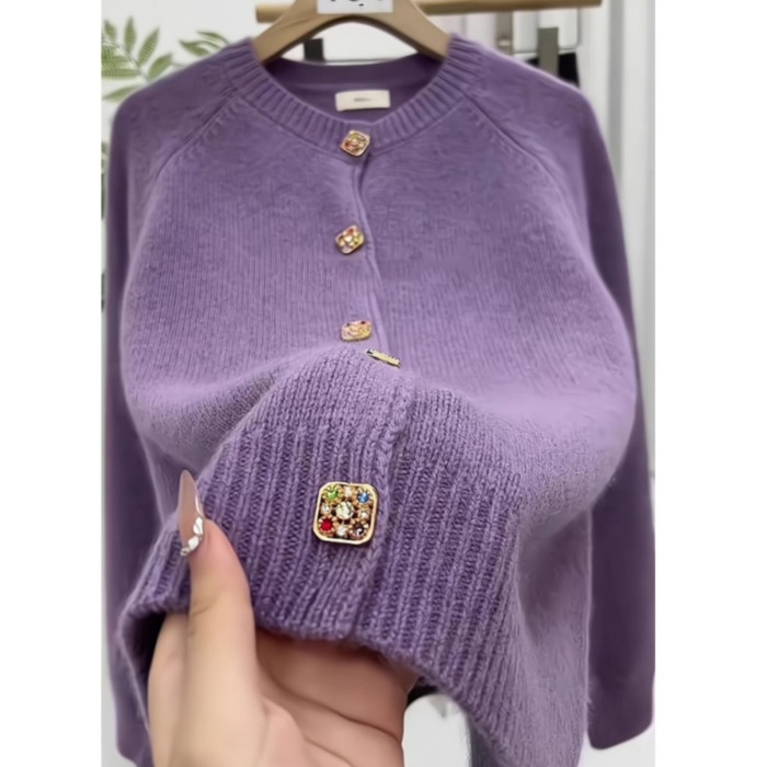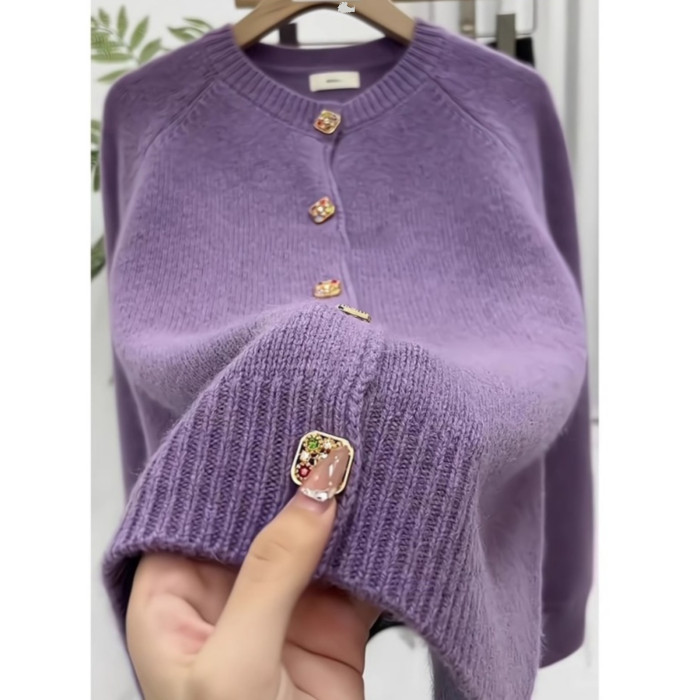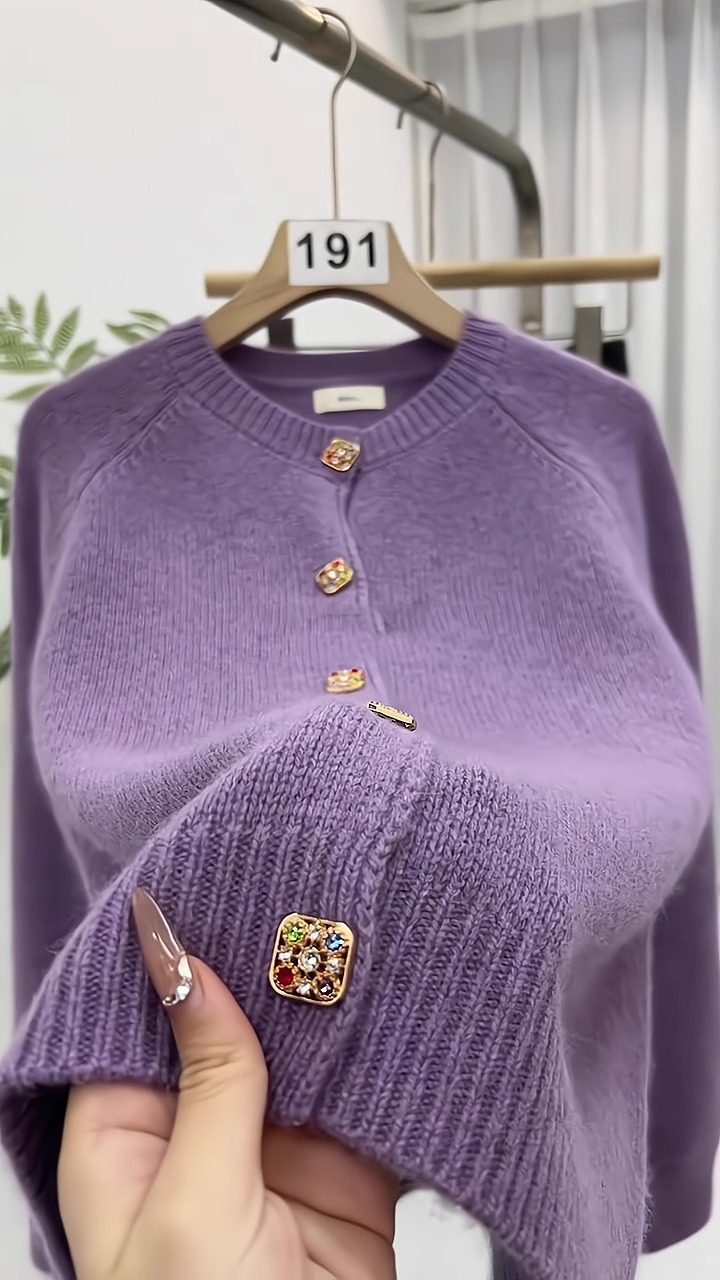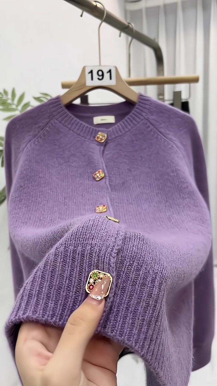 杭州四季青女裝廣州十三行香芋紫色毛衣外套女秋冬季針織開衫外搭