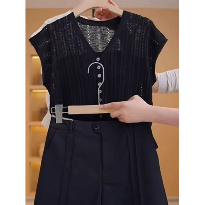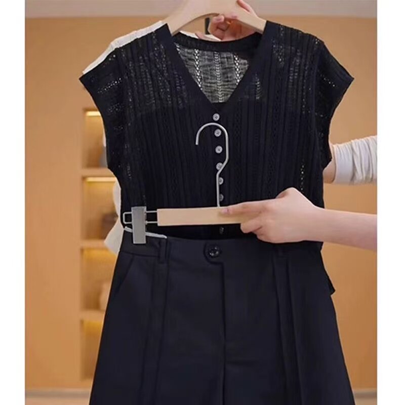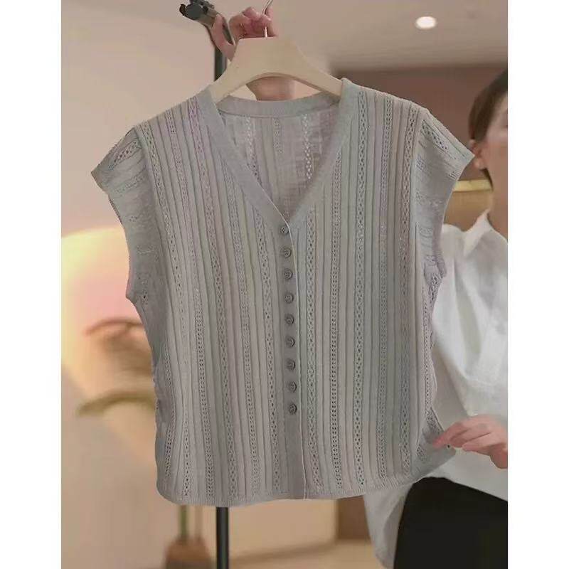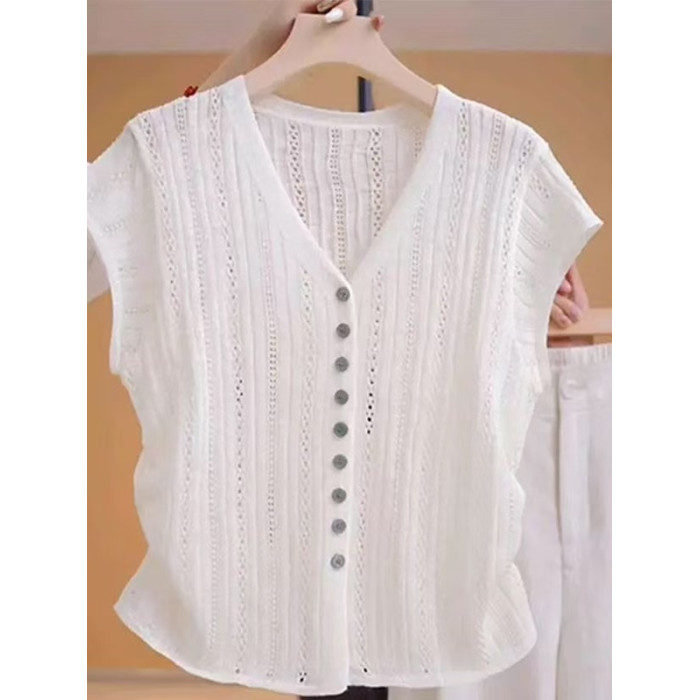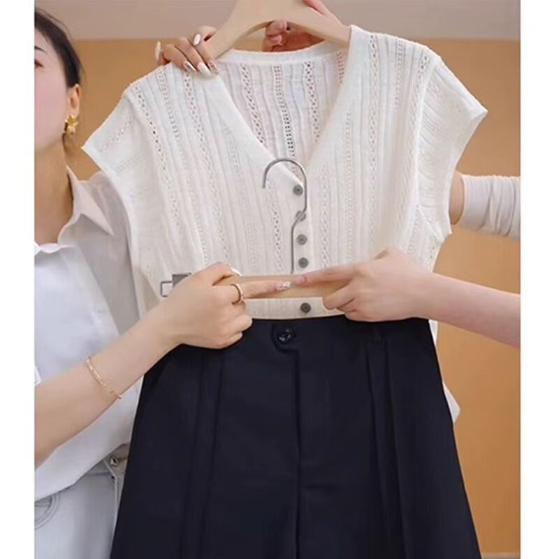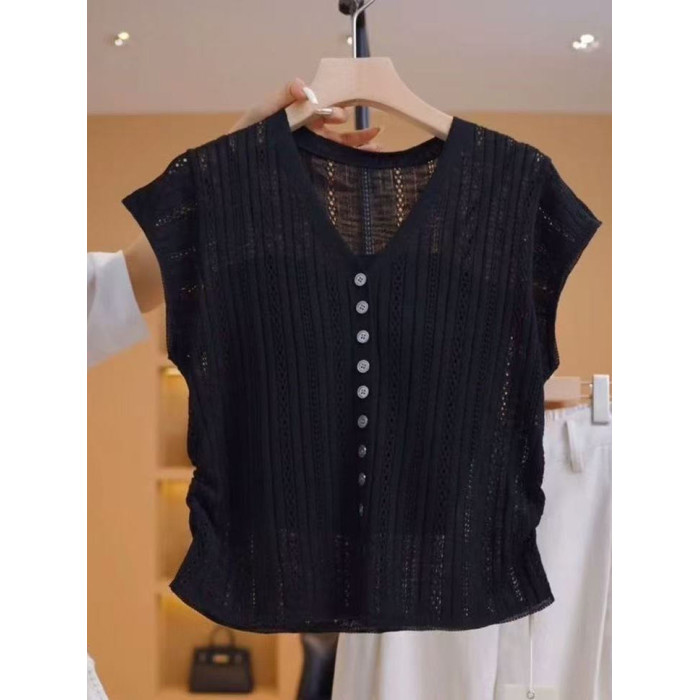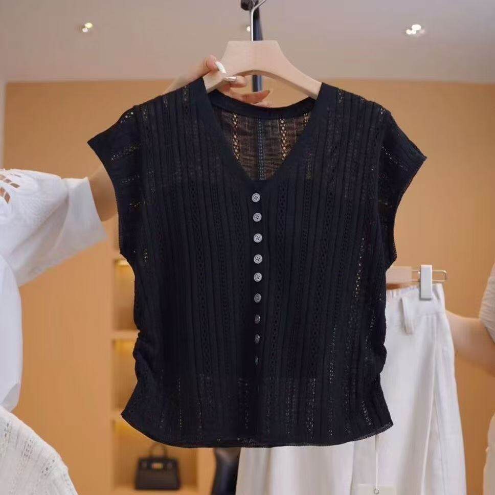 今年流行的V領短袖T恤女短款鏤空冰絲針織衫薄款時尚洋氣小衫上衣