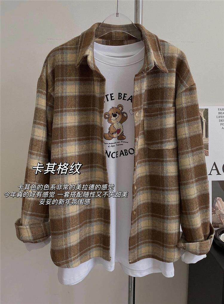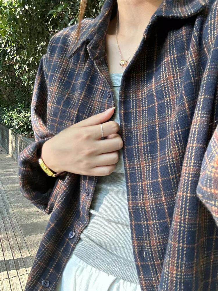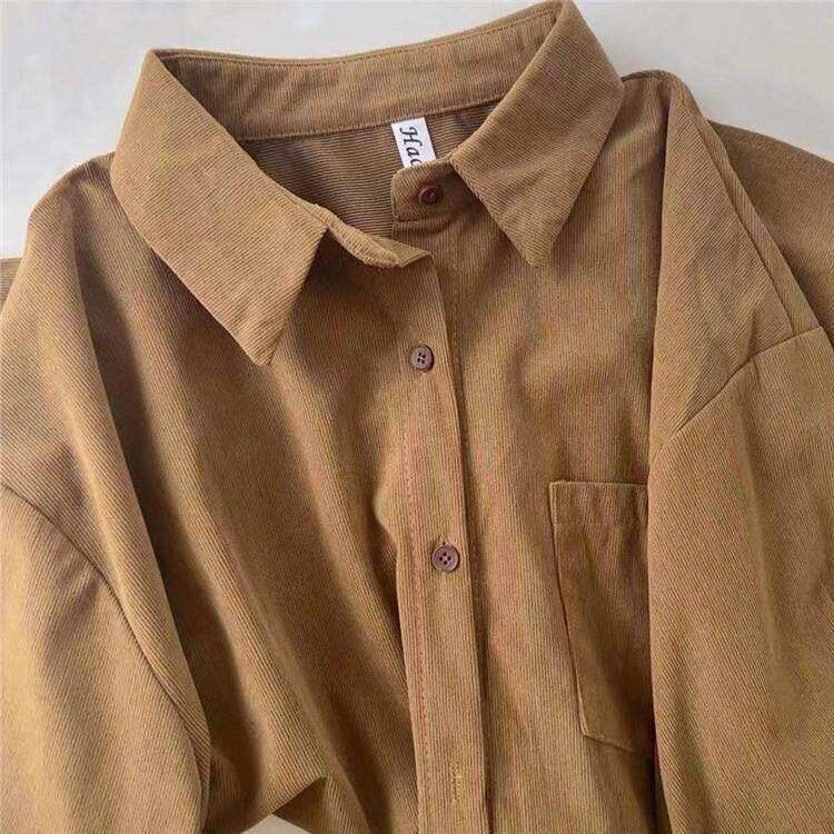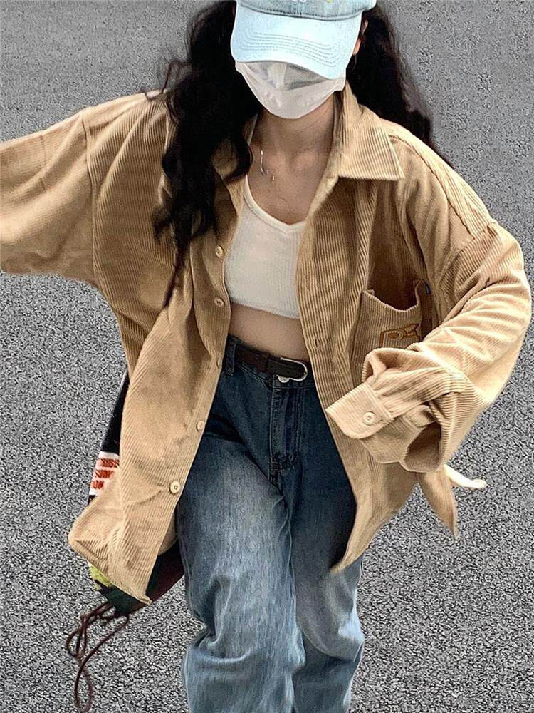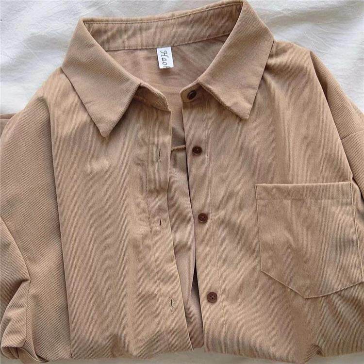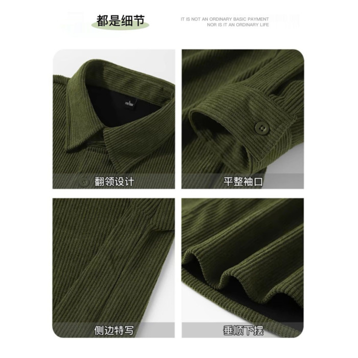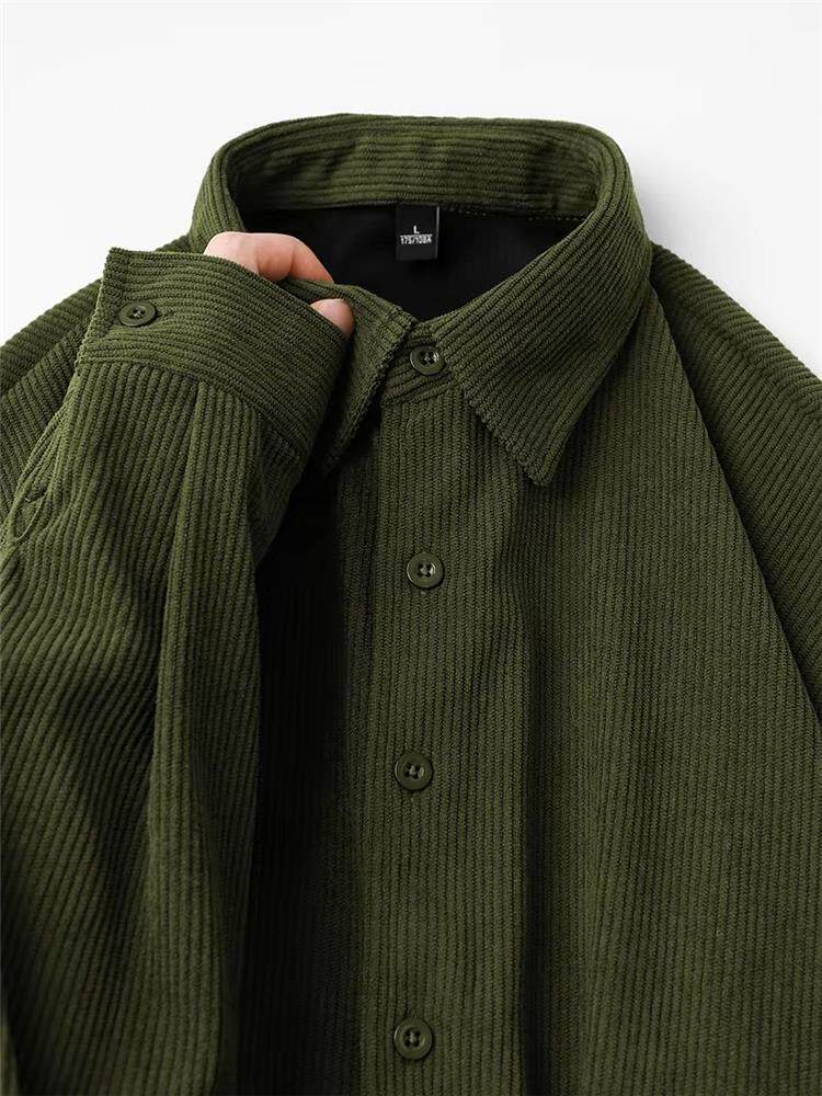 燈芯絨襯衫加厚復古高級感條紋襯衣內搭曡穿打底長袖上衣外套開衫