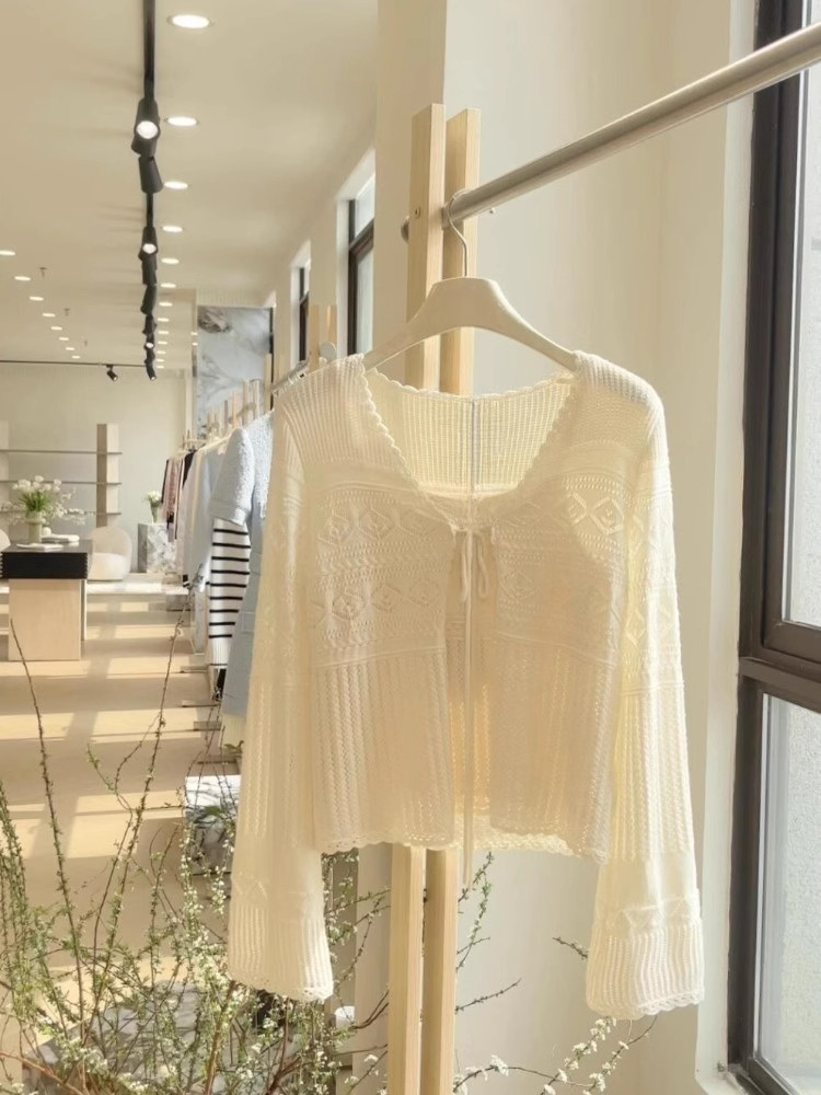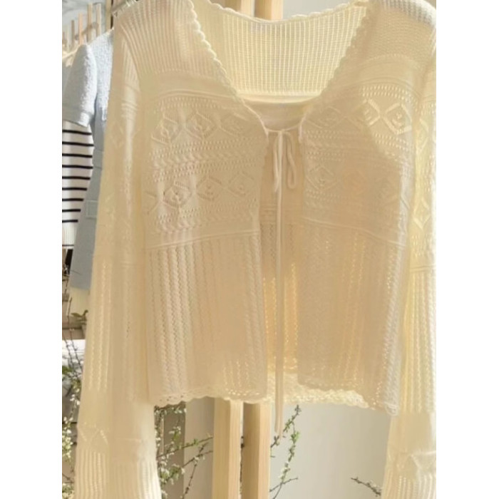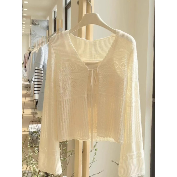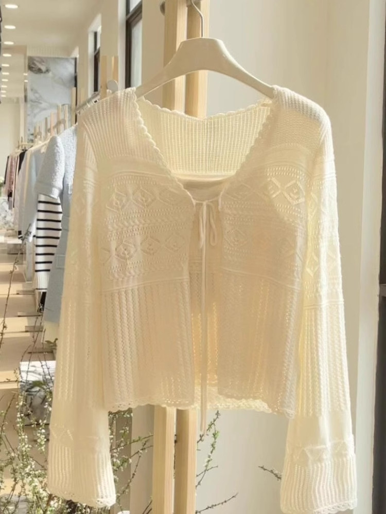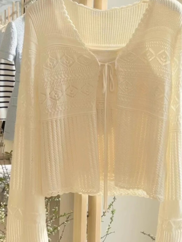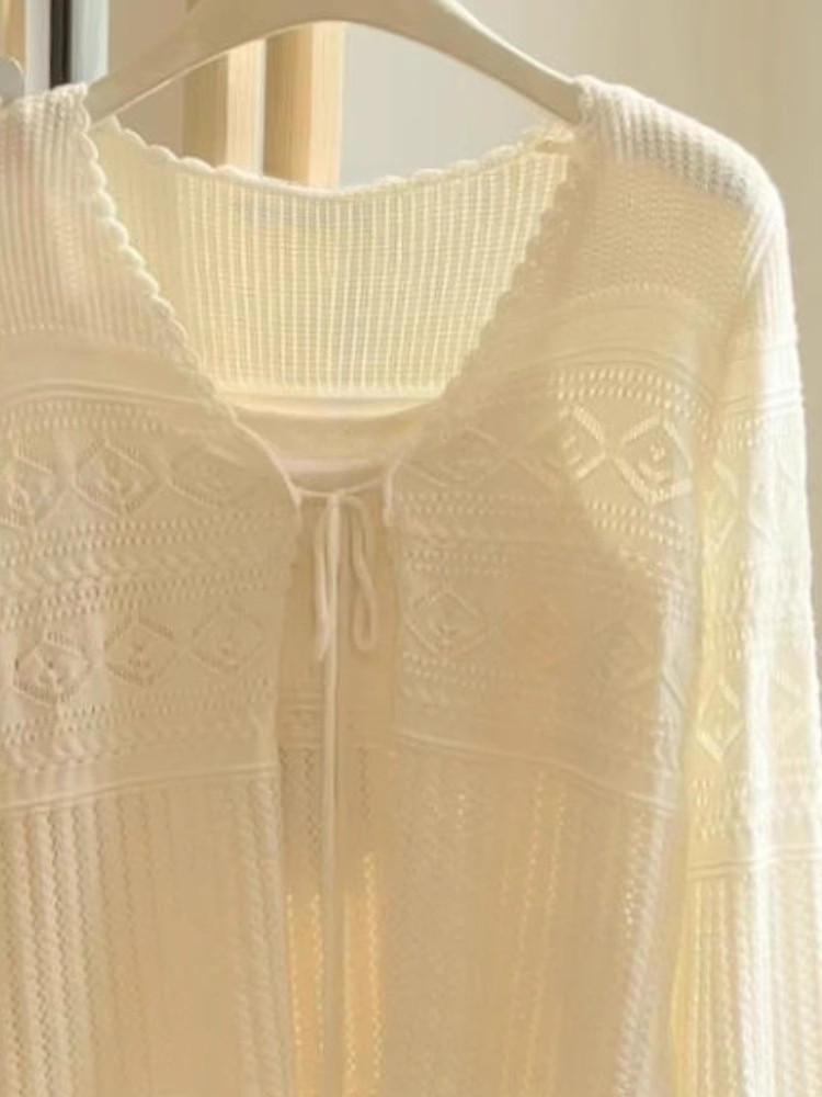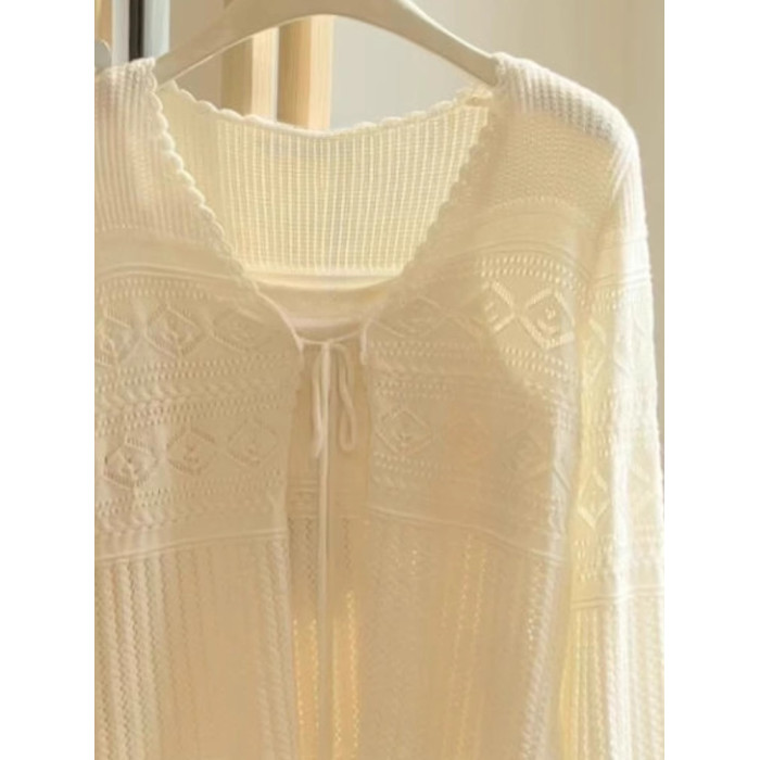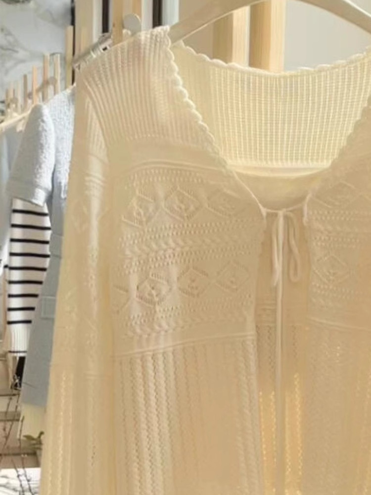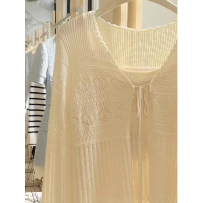 白色吊帶鏤空針織開衫兩件套女2025秋季新款穿搭防曬罩衫絕美上衣