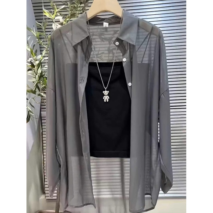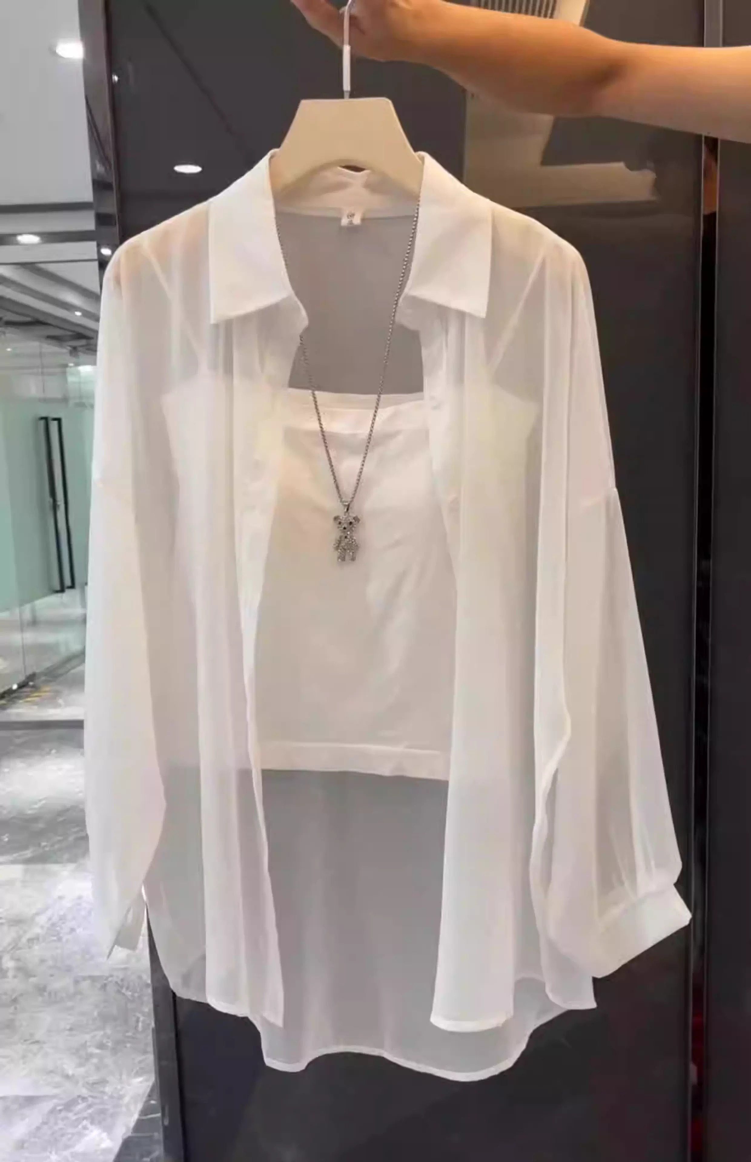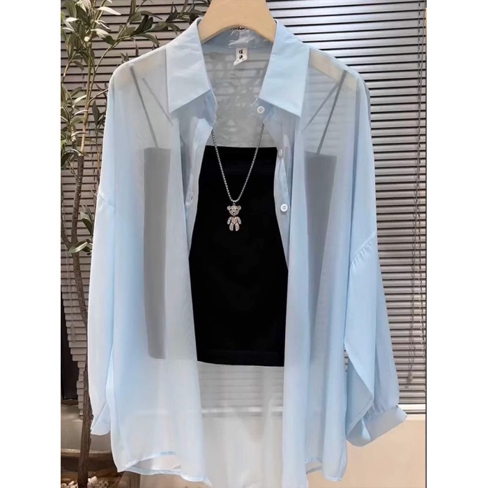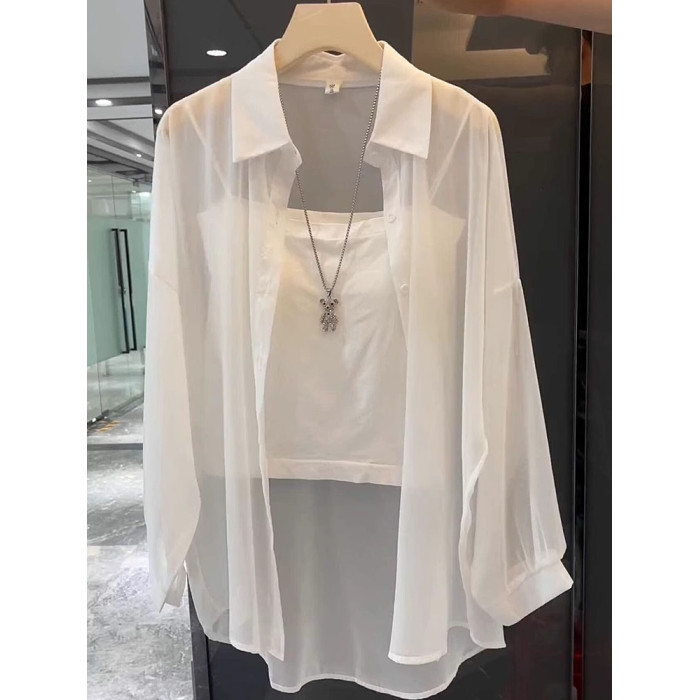 單/兩件裝 雪紡防曬開衫女夏薄款配吊帶裙罩衫防曬衣冰絲襯衫上衣