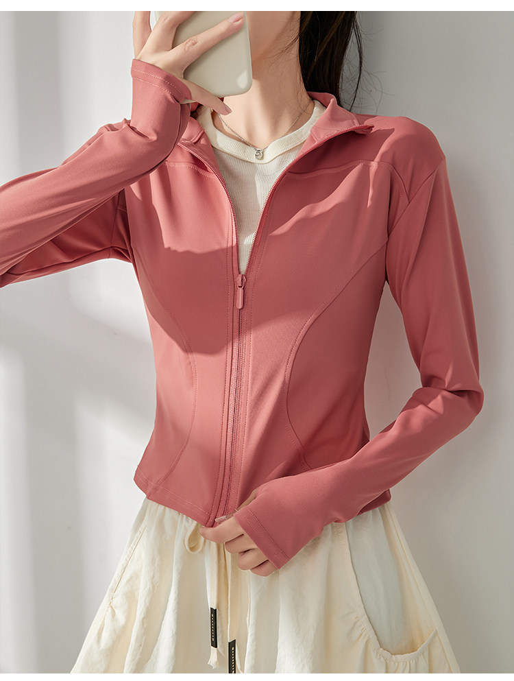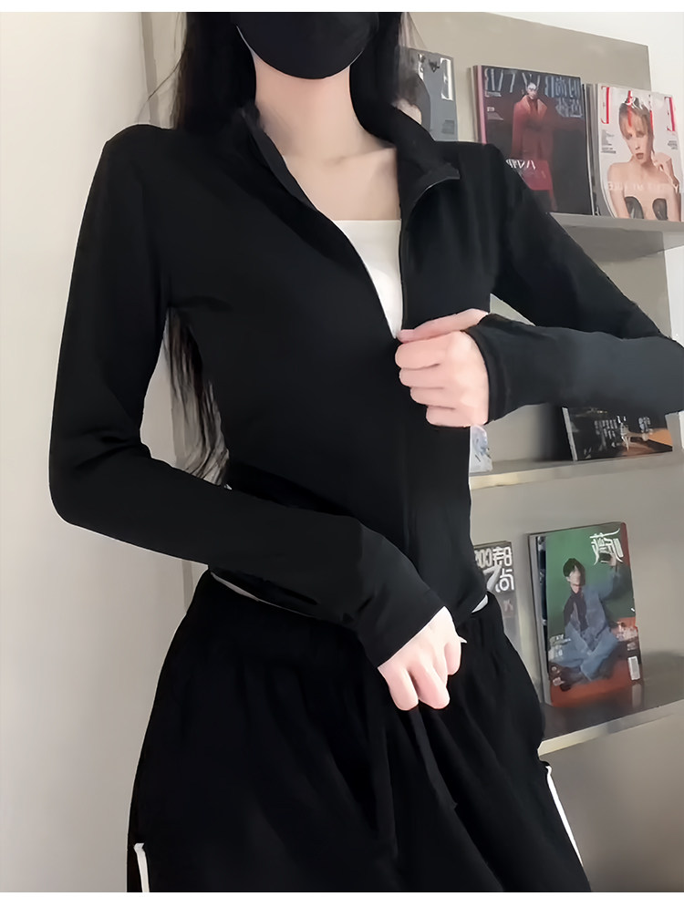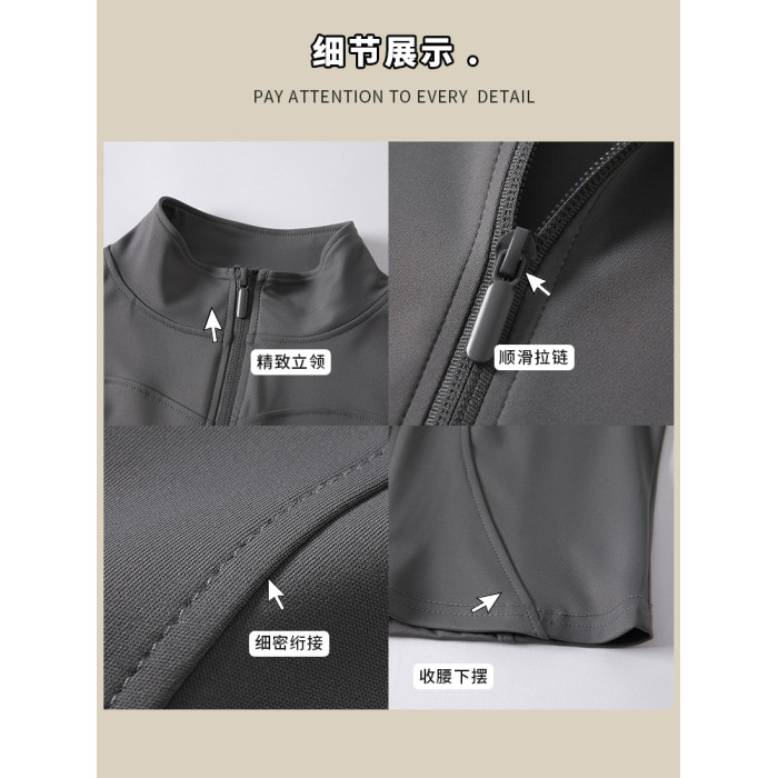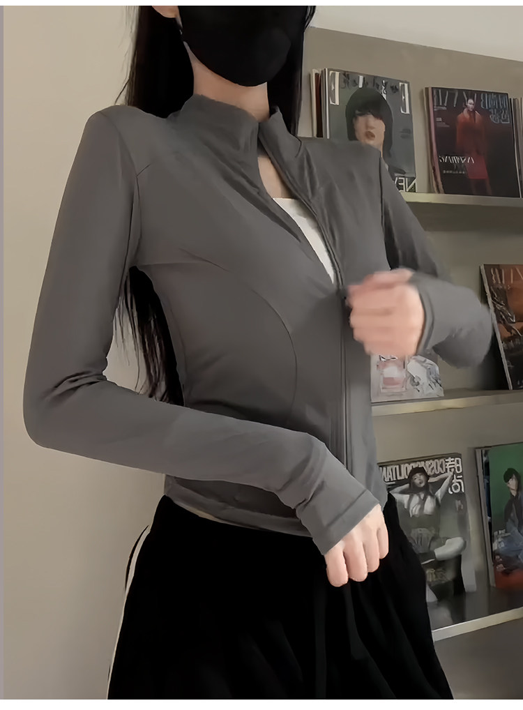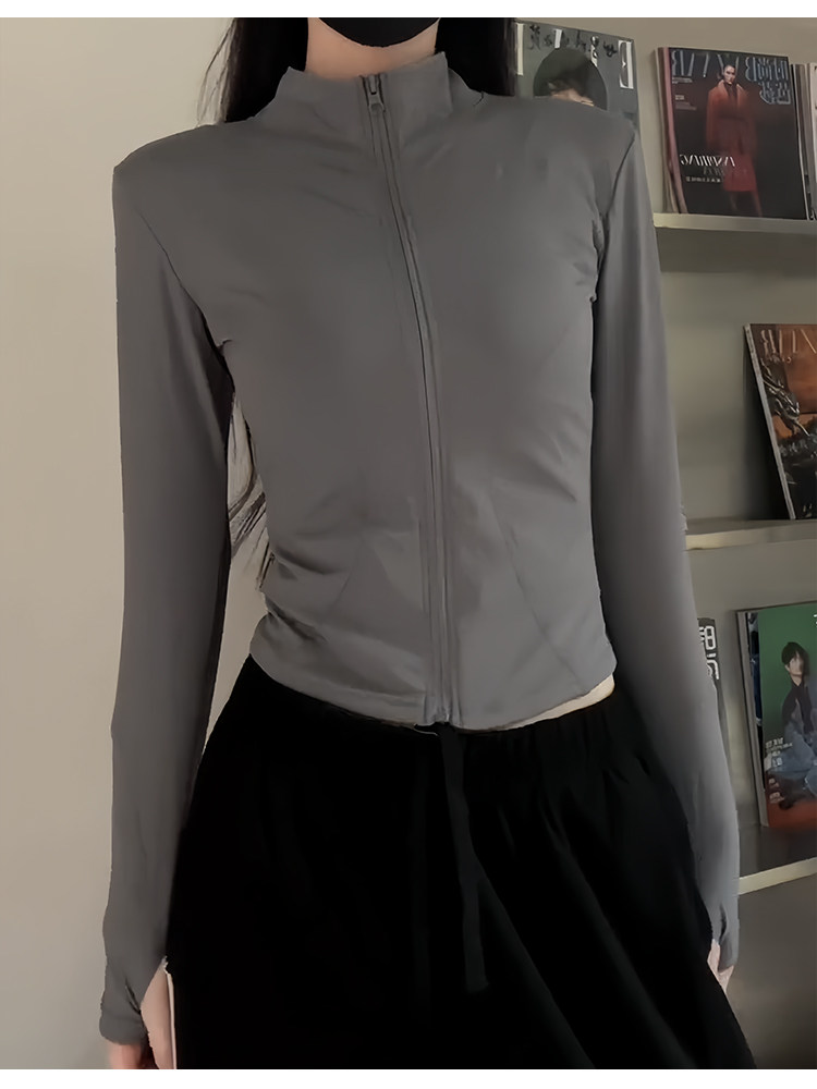 灰色防曬衣女款夏修身冰絲速乾瑜珈服上衣短款立領開衫防曬服外套