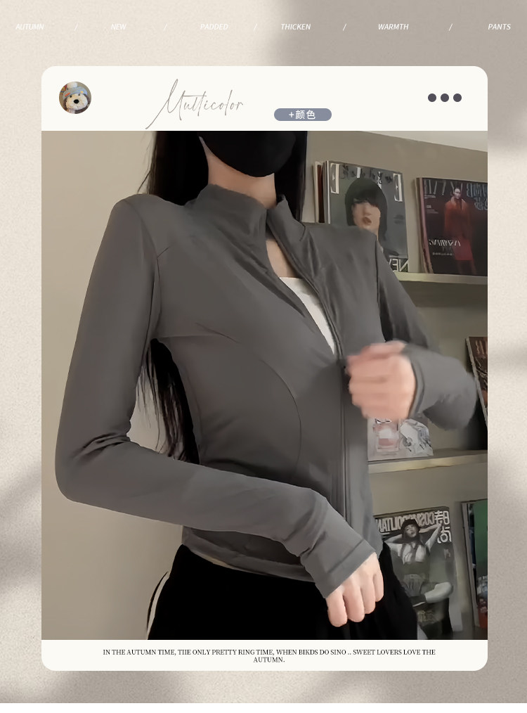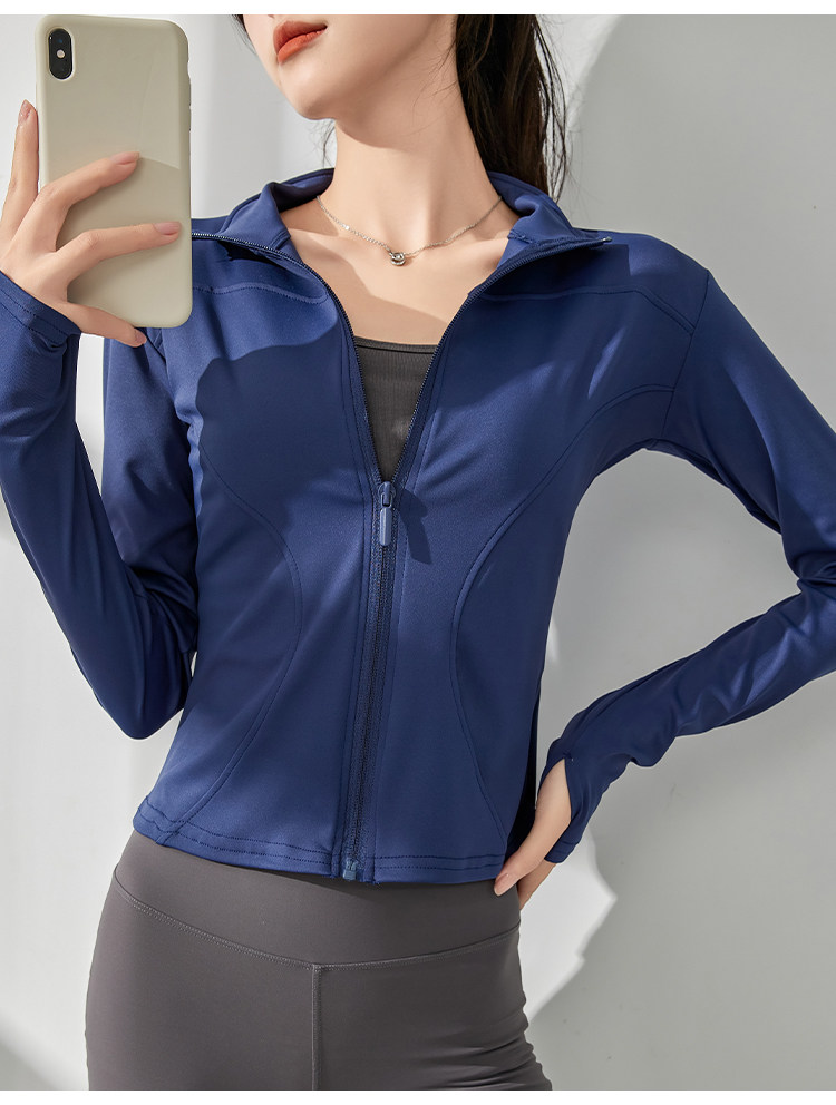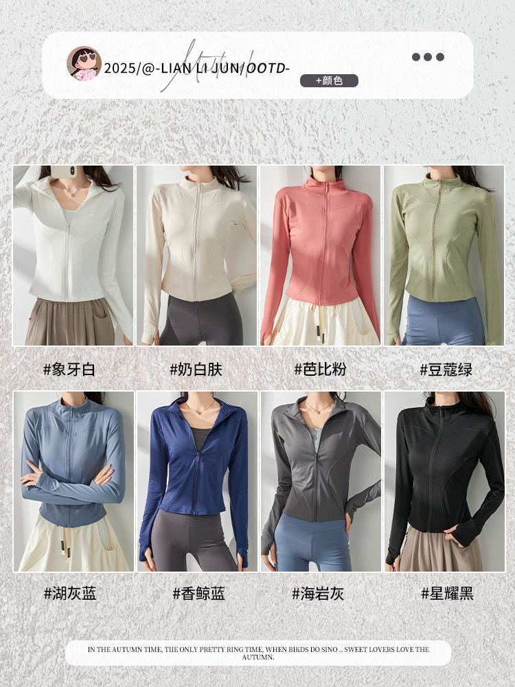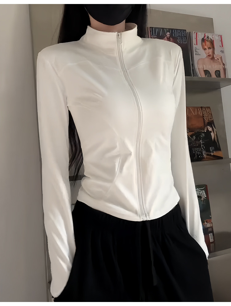 灰色防曬衣女款夏修身冰絲速乾瑜珈服上衣短款立領開衫防曬服外套