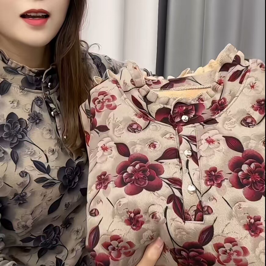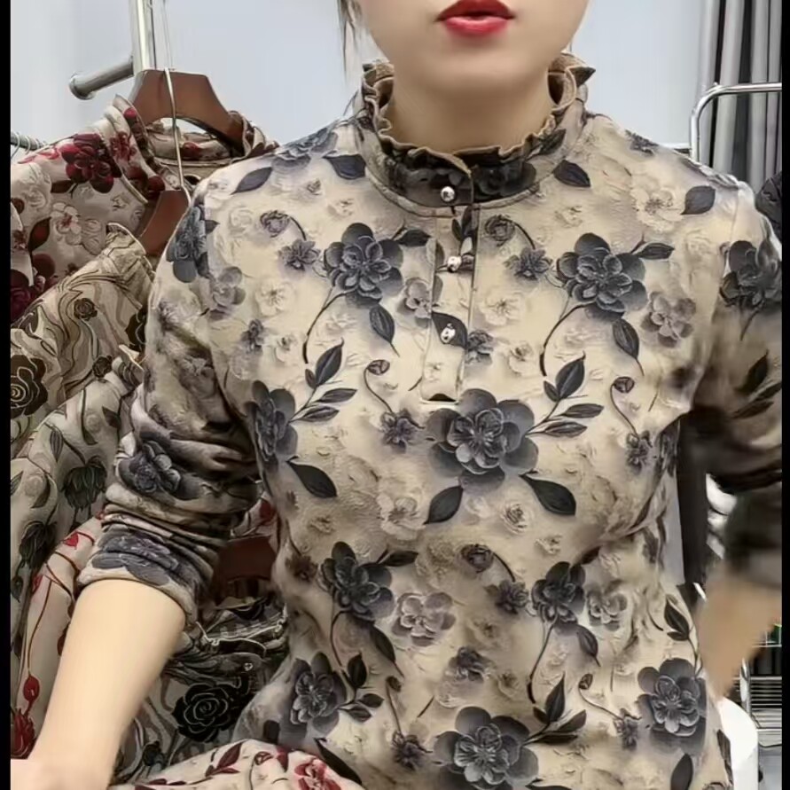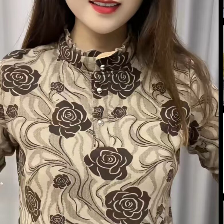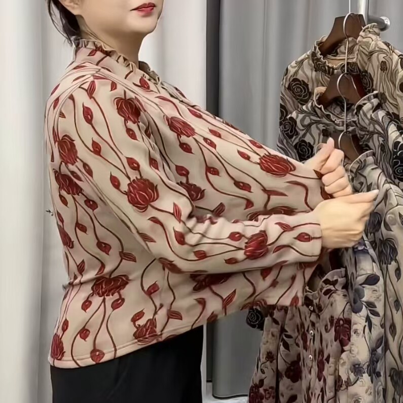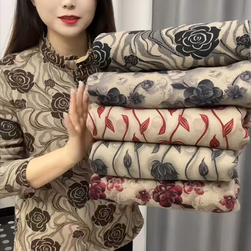 2024新款秋冬加絨洋氣小衫花邊領媽媽裝休閒顯瘦修身減齡女士小衫