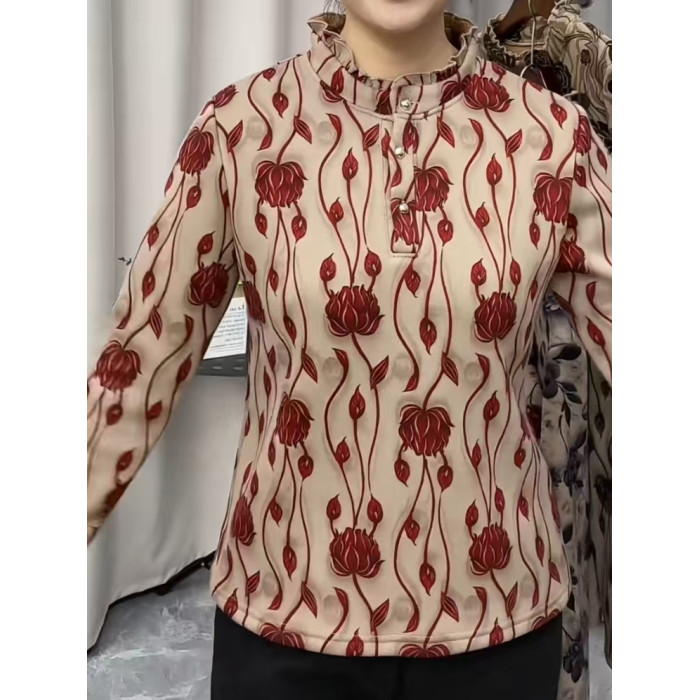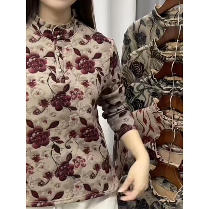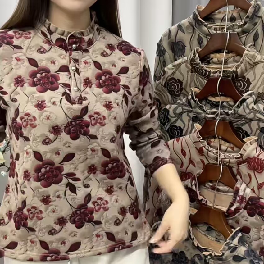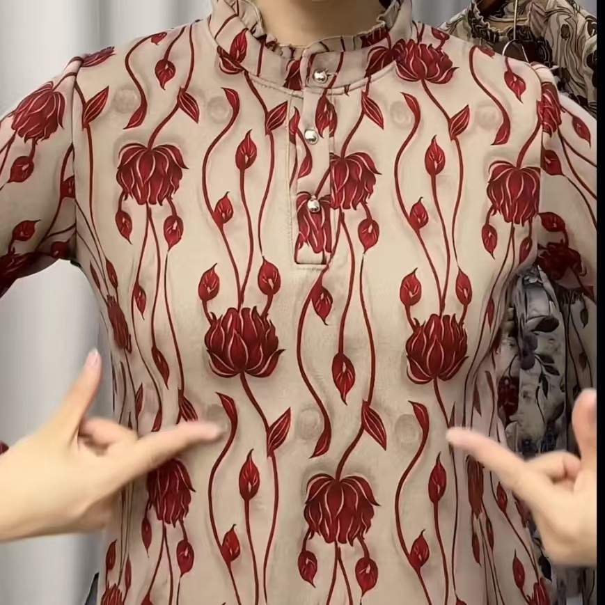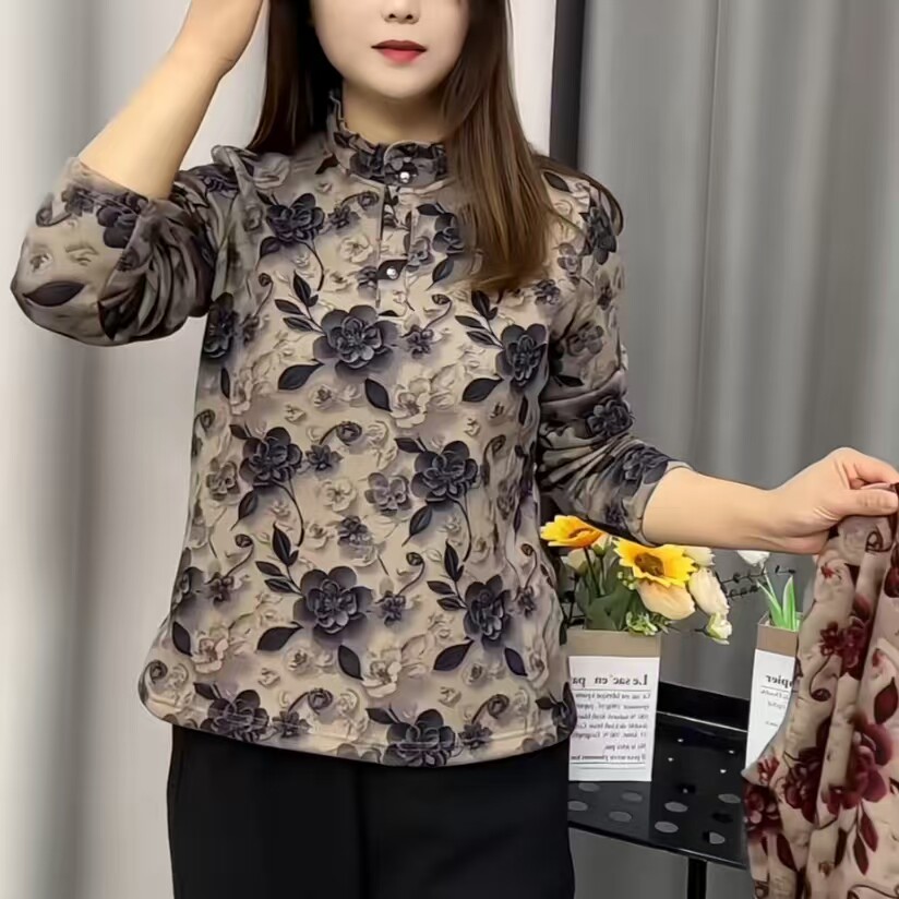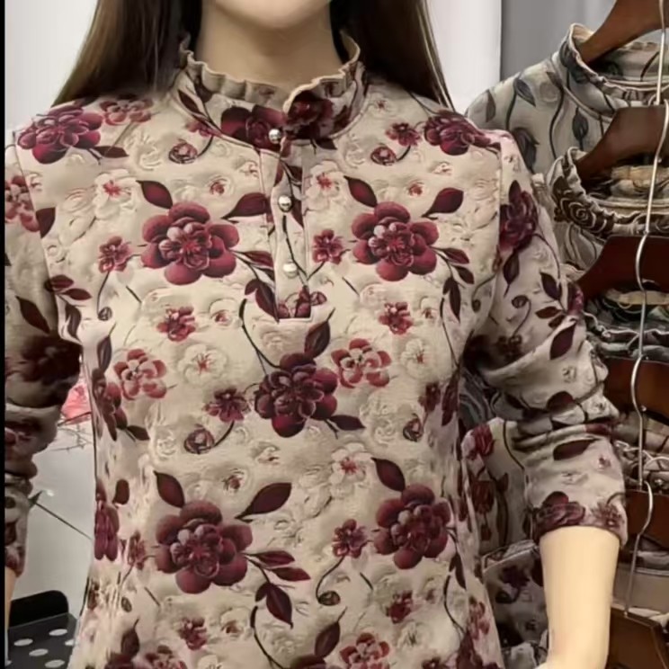 2024新款秋冬加絨洋氣小衫花邊領媽媽裝休閒顯瘦修身減齡女士小衫