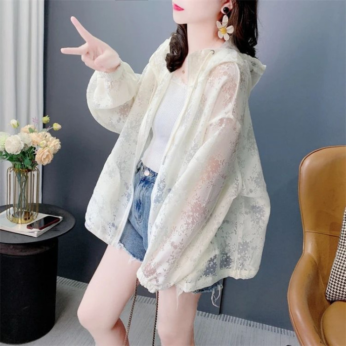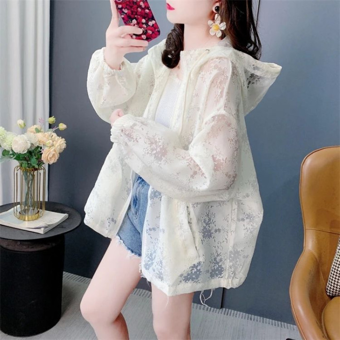 2025夏季新款大碼寬鬆慵懶風設計感鏤空薄款防曬上衣拉鍊開衫外套