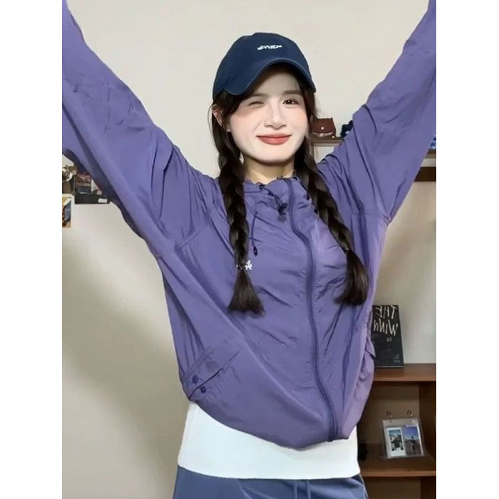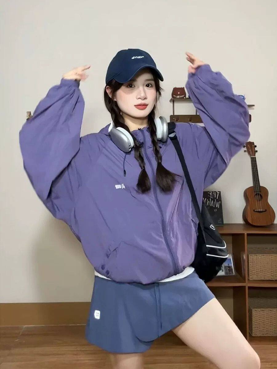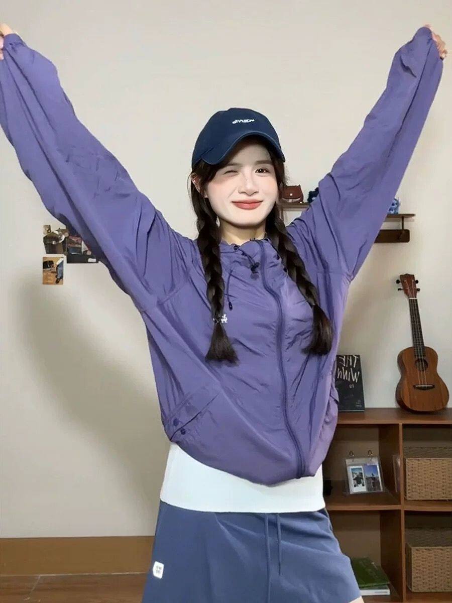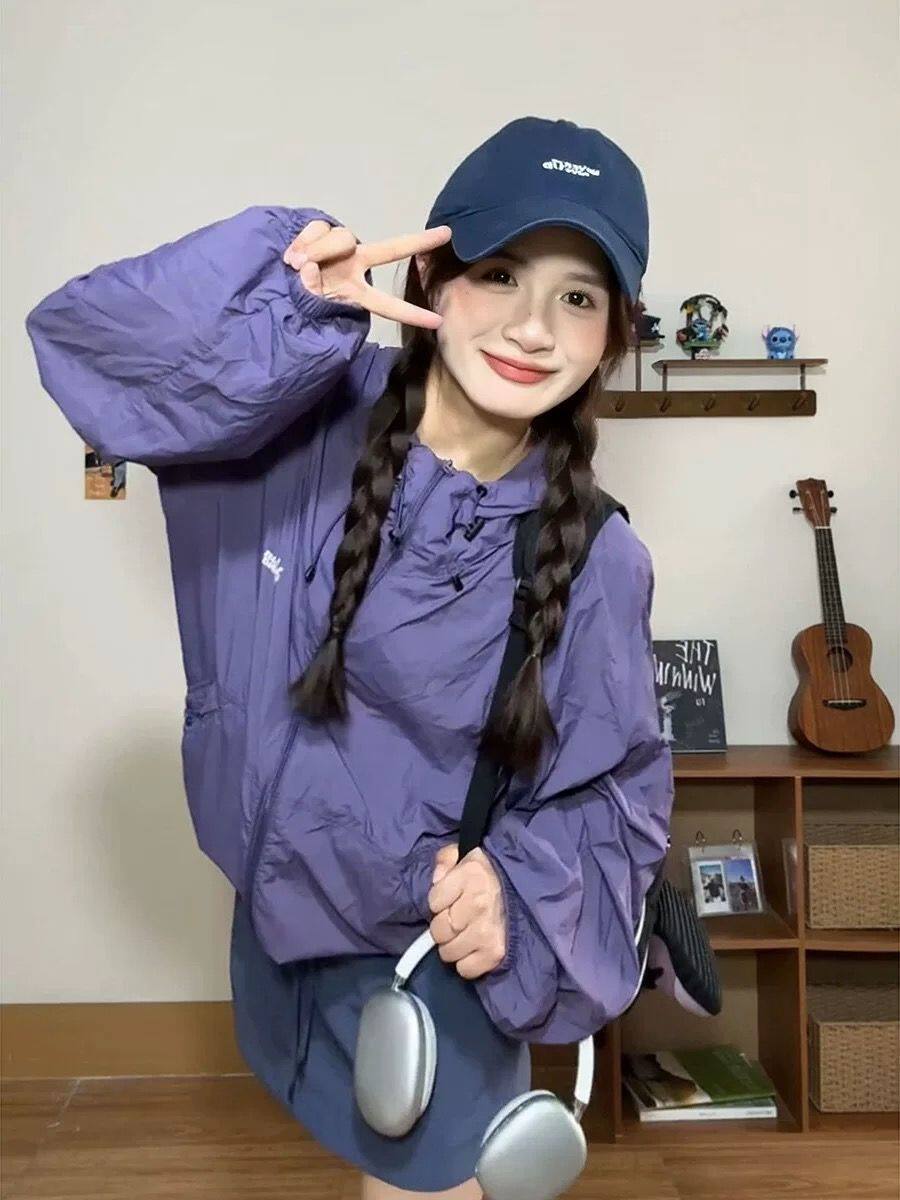 原野空間夏季薄款防曬衣套裝女款日系工裝連帽防曬服短褲裙兩件套