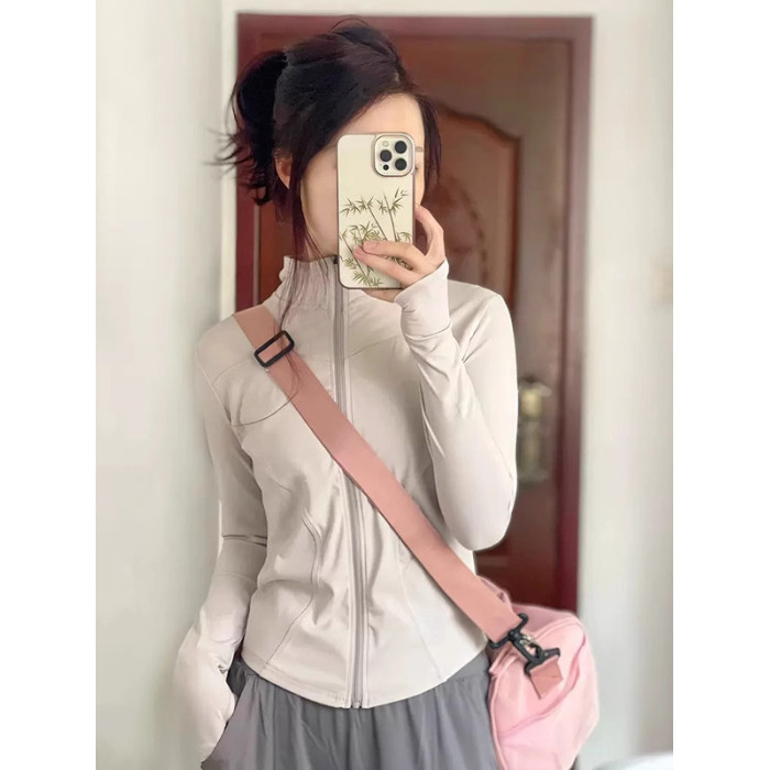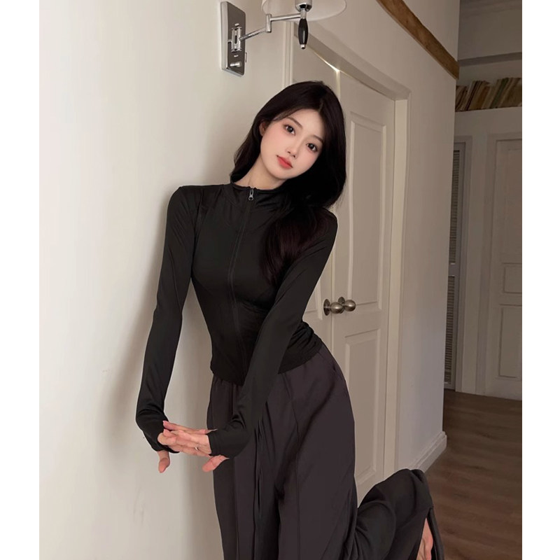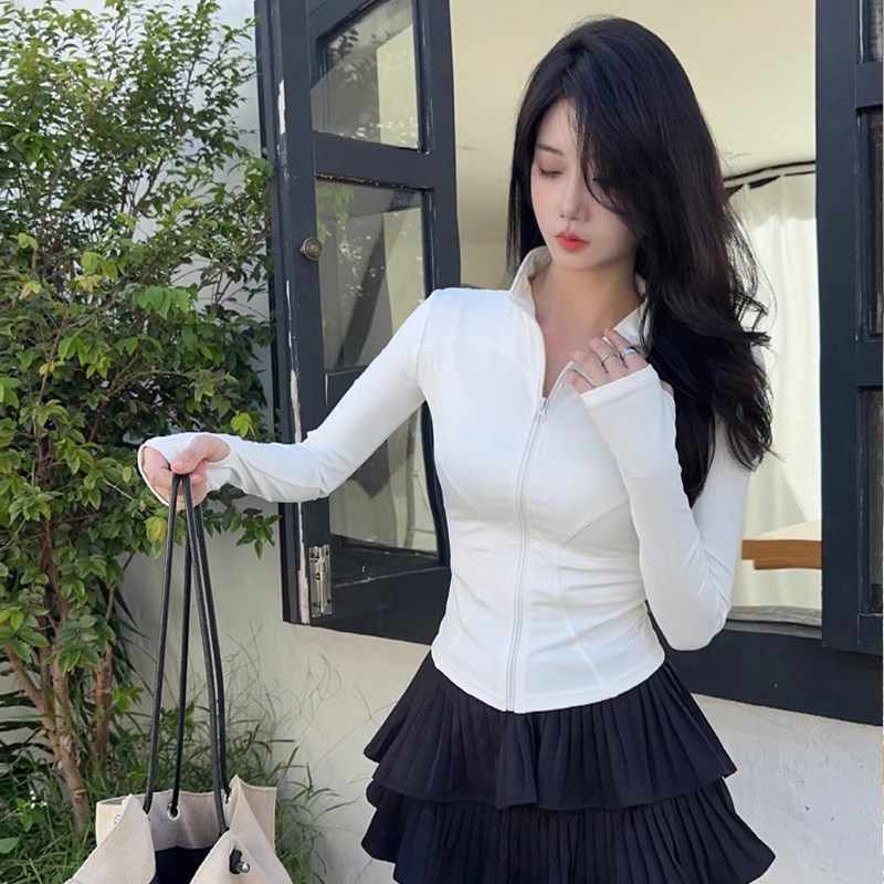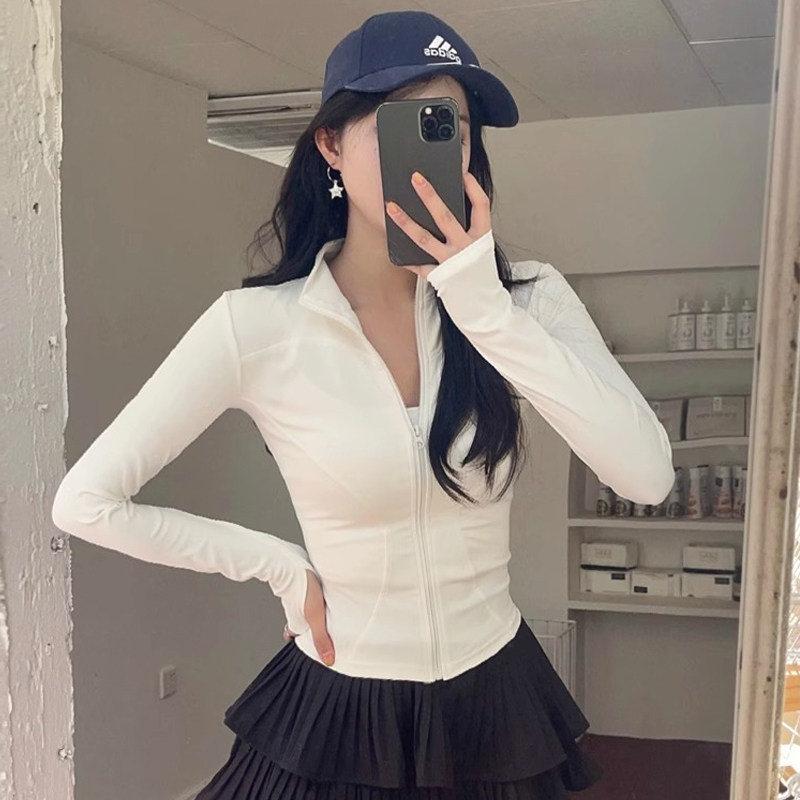 港味運動防曬長袖短外套女夏季修身顯瘦純色百搭拉鍊開衫短款上衣