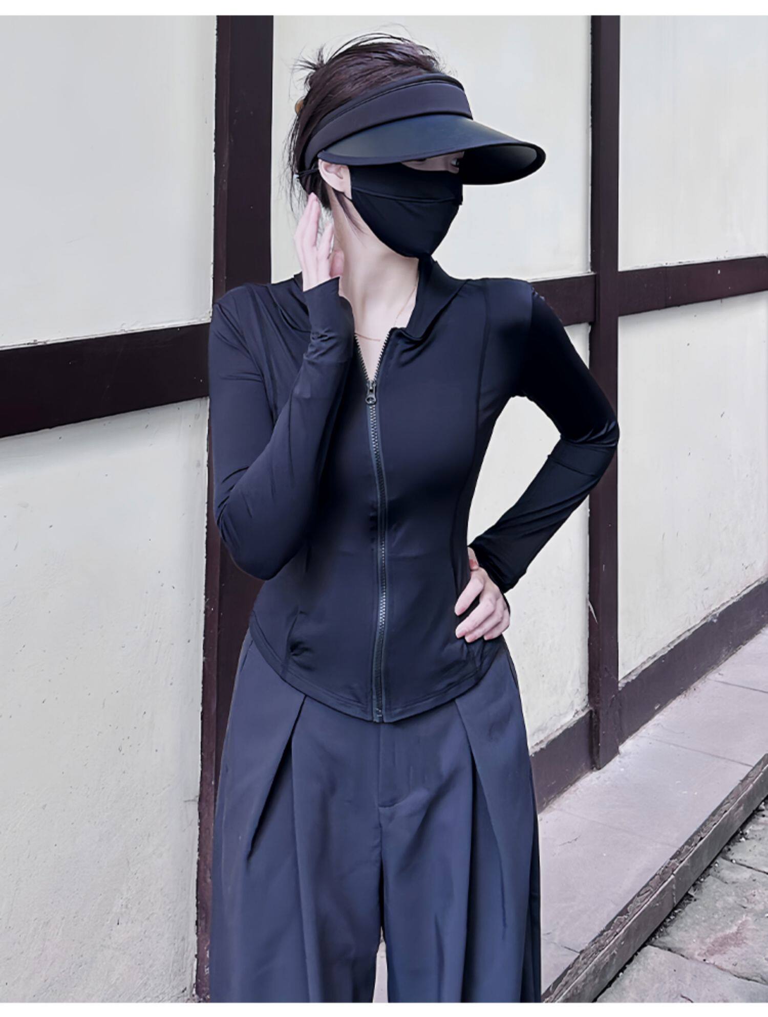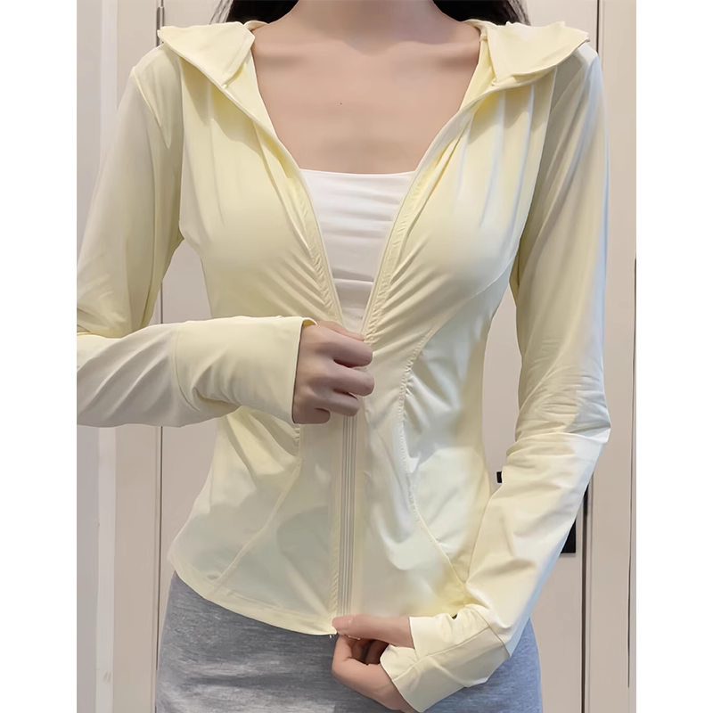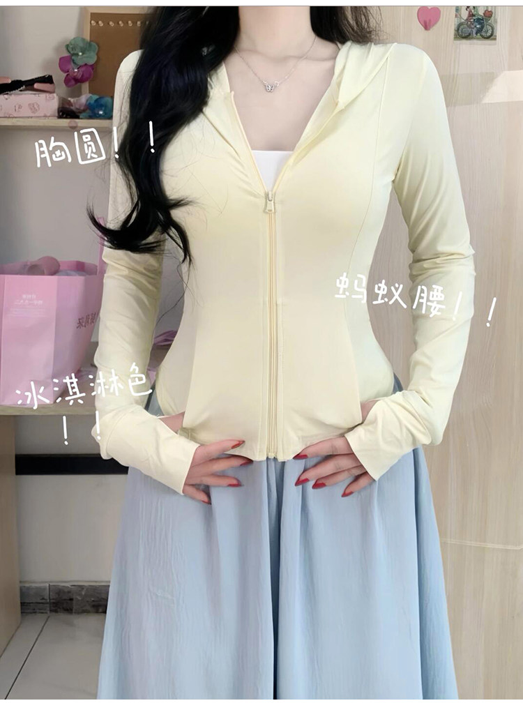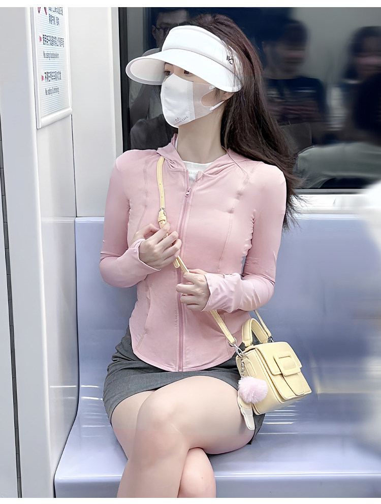 黑色連帽冰絲防曬衣女款夏薄款戶外防紫外線防曬服修身短外套上衣