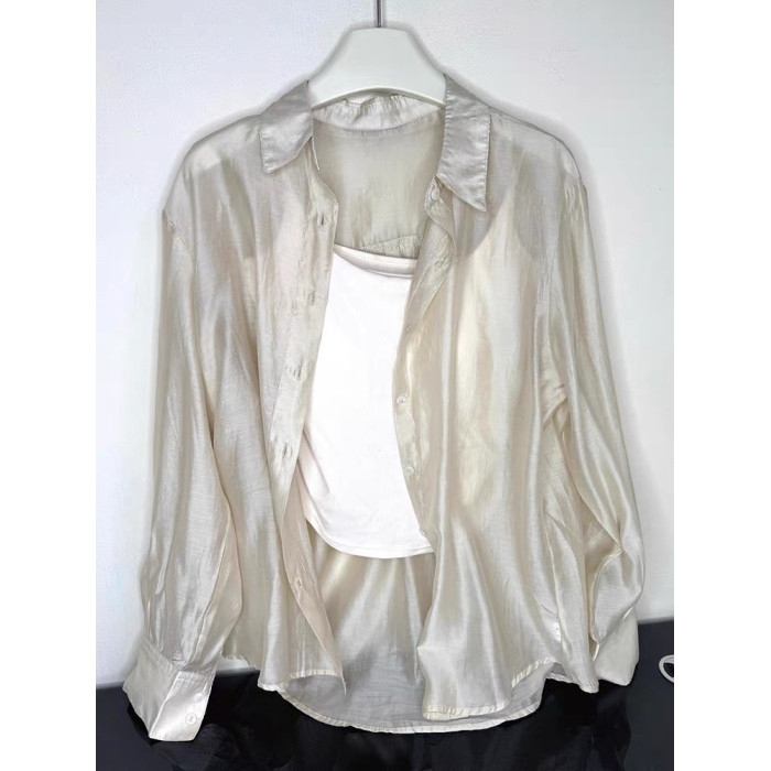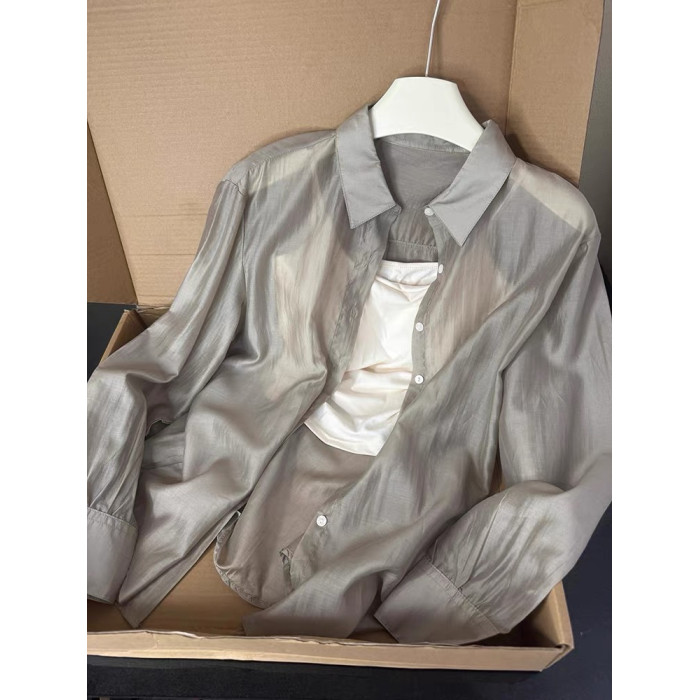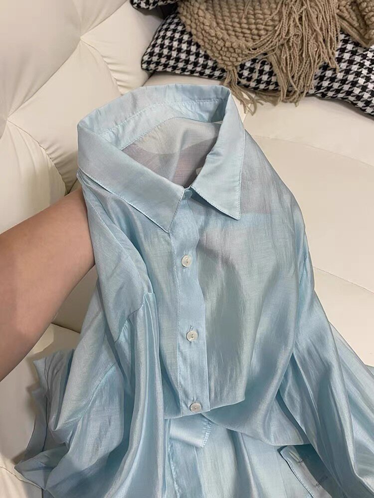 專櫃撤廻!一線大牌防曬襯衫女夏季新款單排釦透氣開衫襯衣薄外套