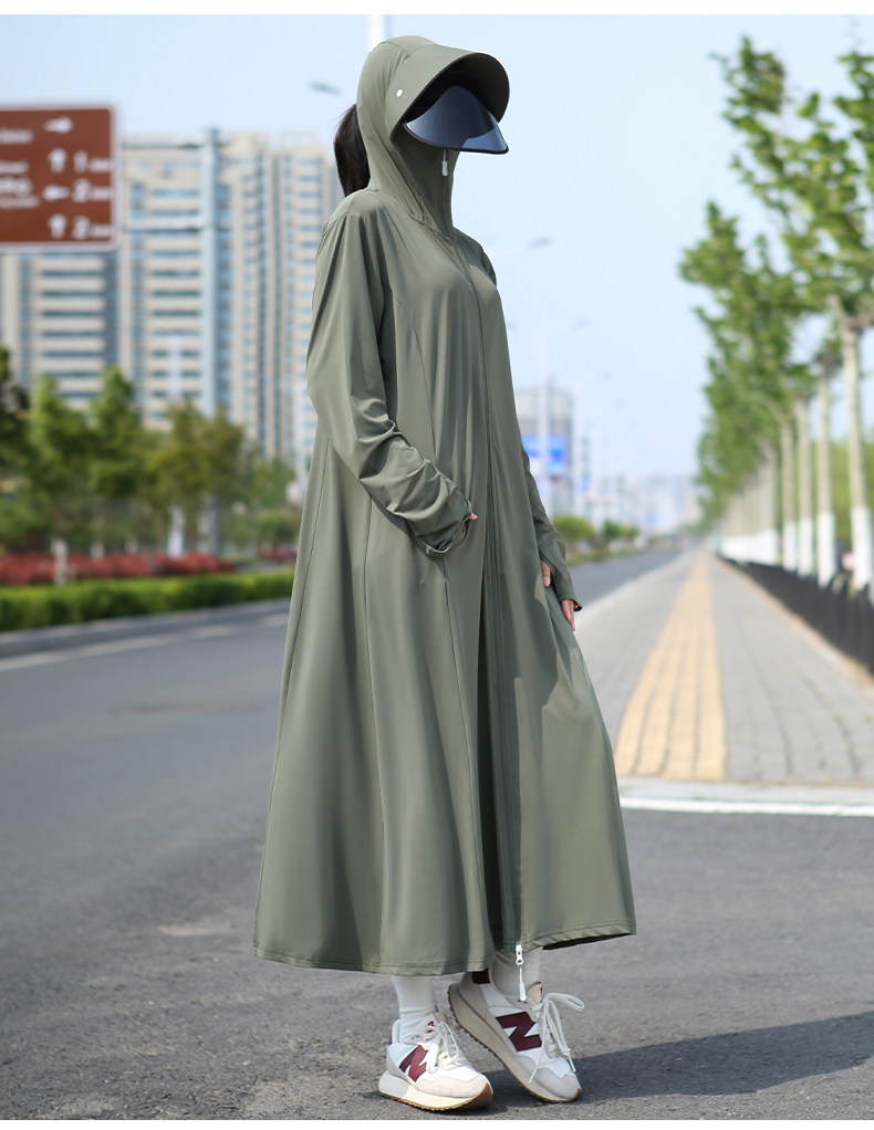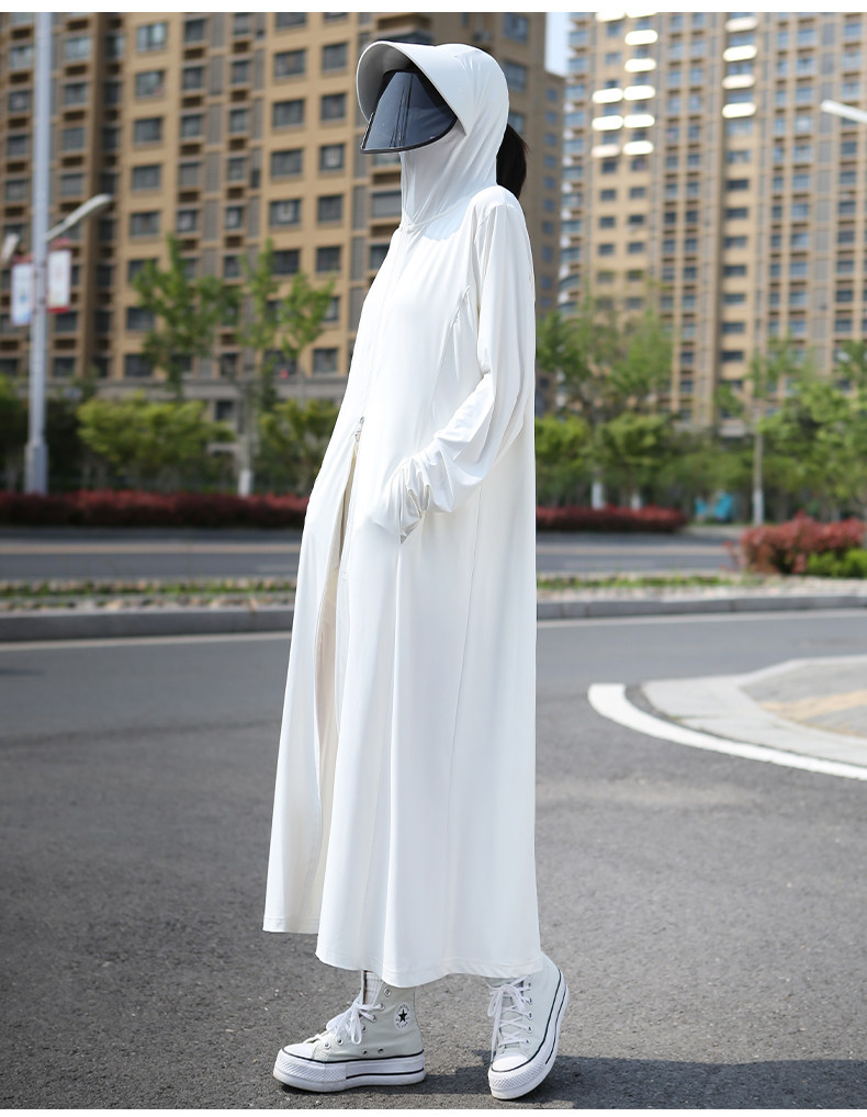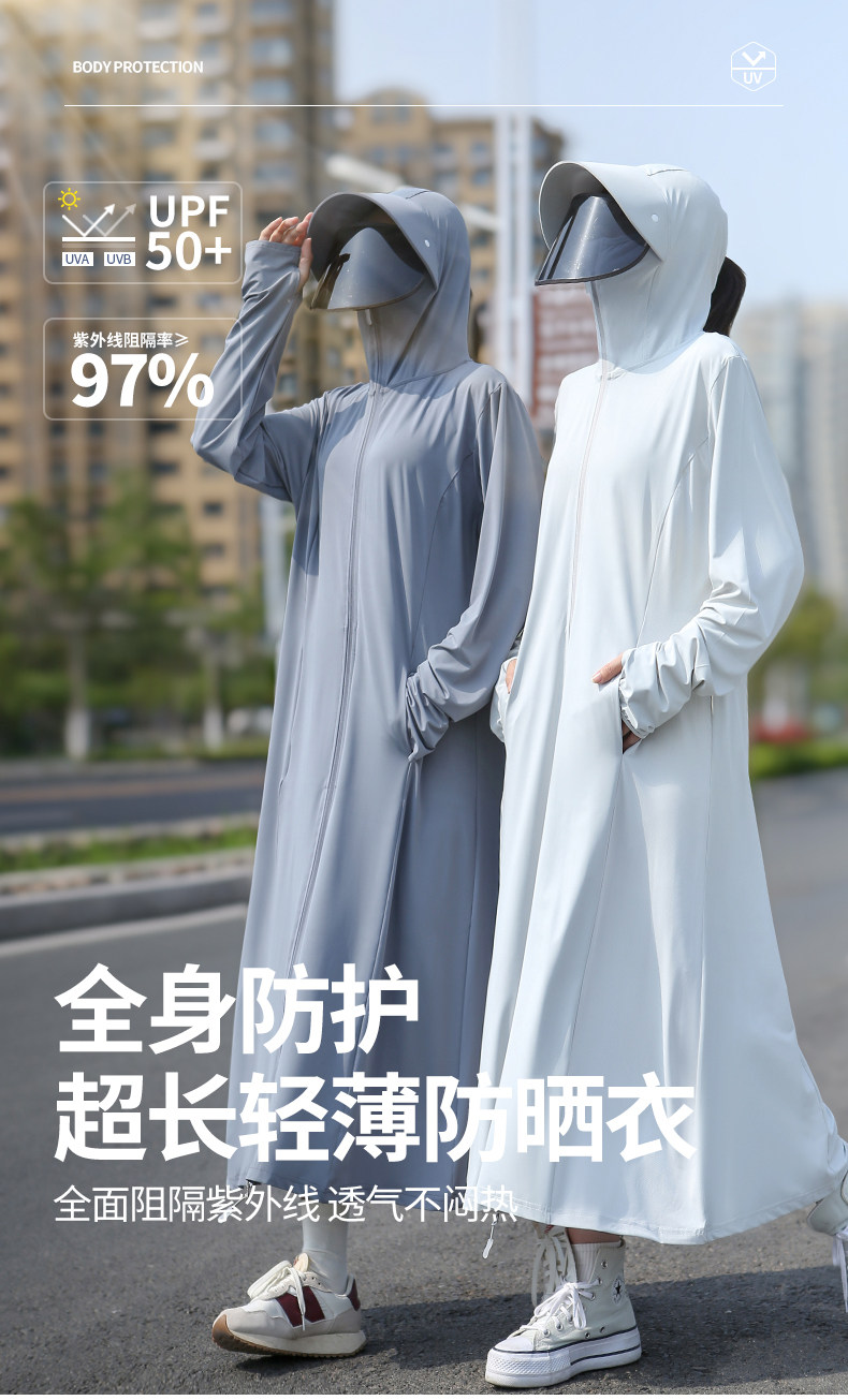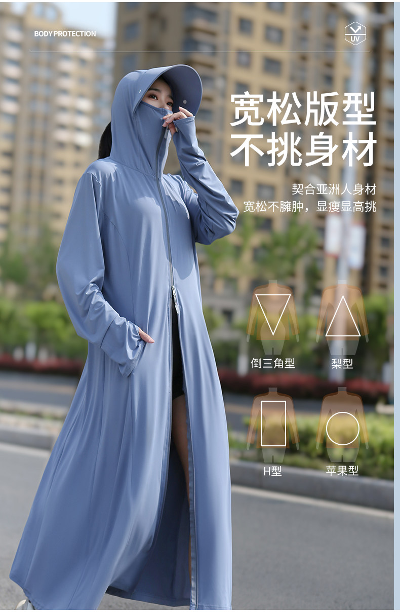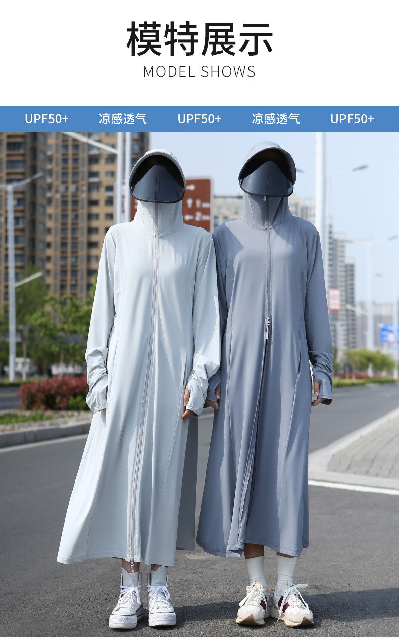 貓人冰絲長款防曬衣女夏季新款透氣涼感防紫外線外套護全身防曬服