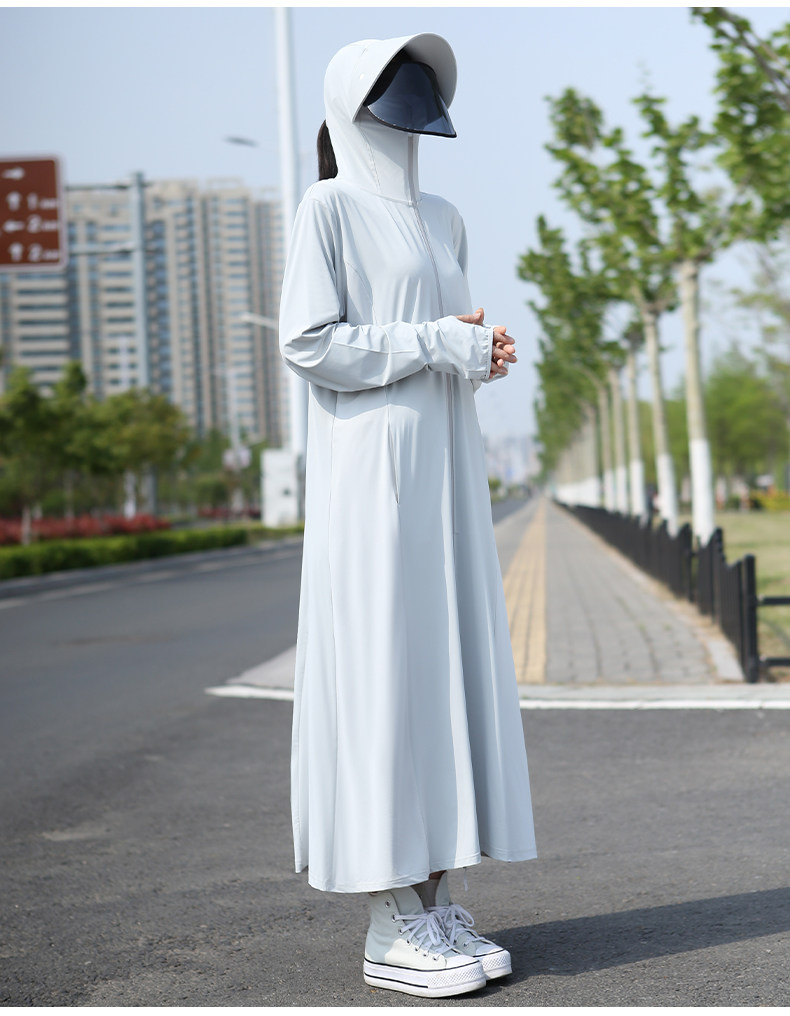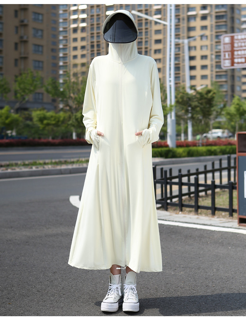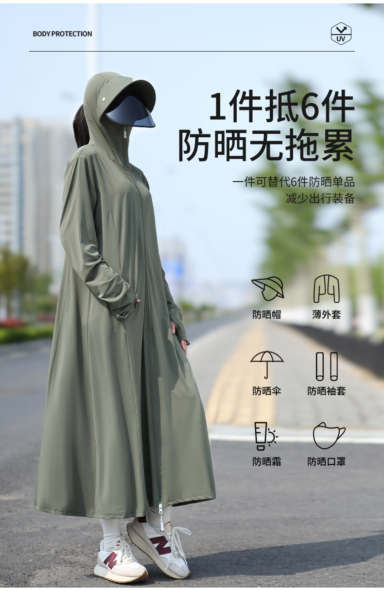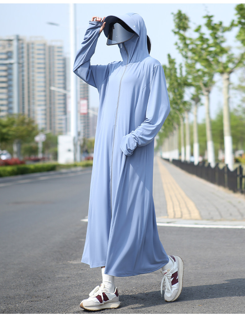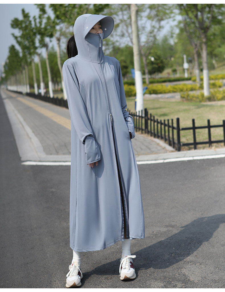 貓人冰絲長款防曬衣女夏季新款透氣涼感防紫外線外套護全身防曬服