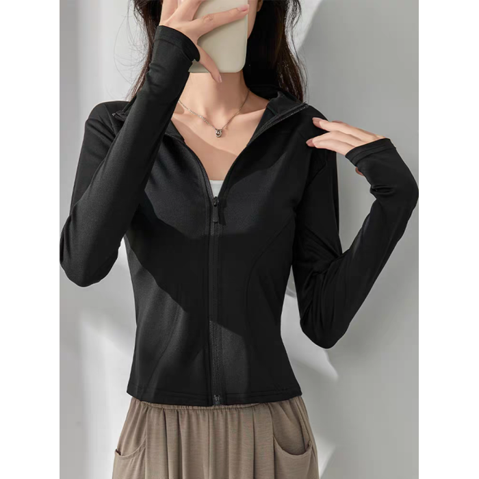 黑色防曬衣女款修身瑜珈服女2025新款輕薄速乾冰絲防曬服外套上衣