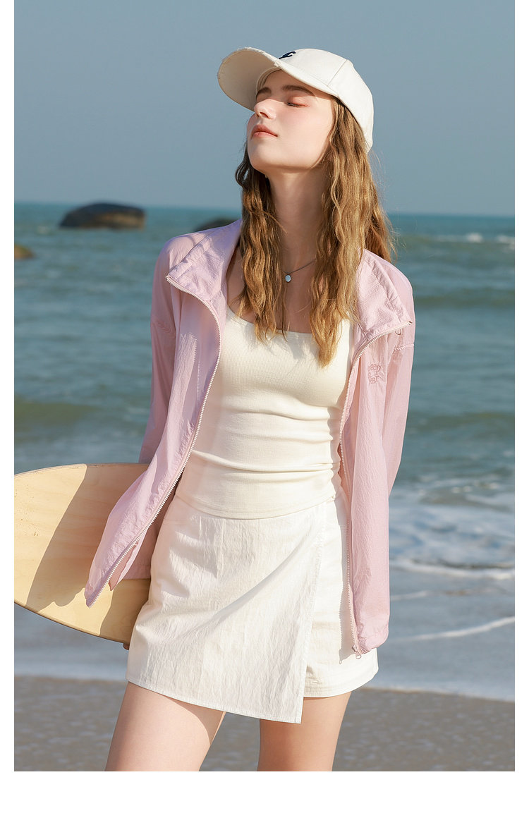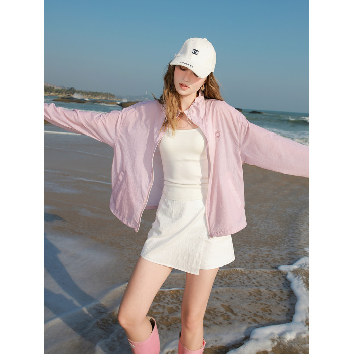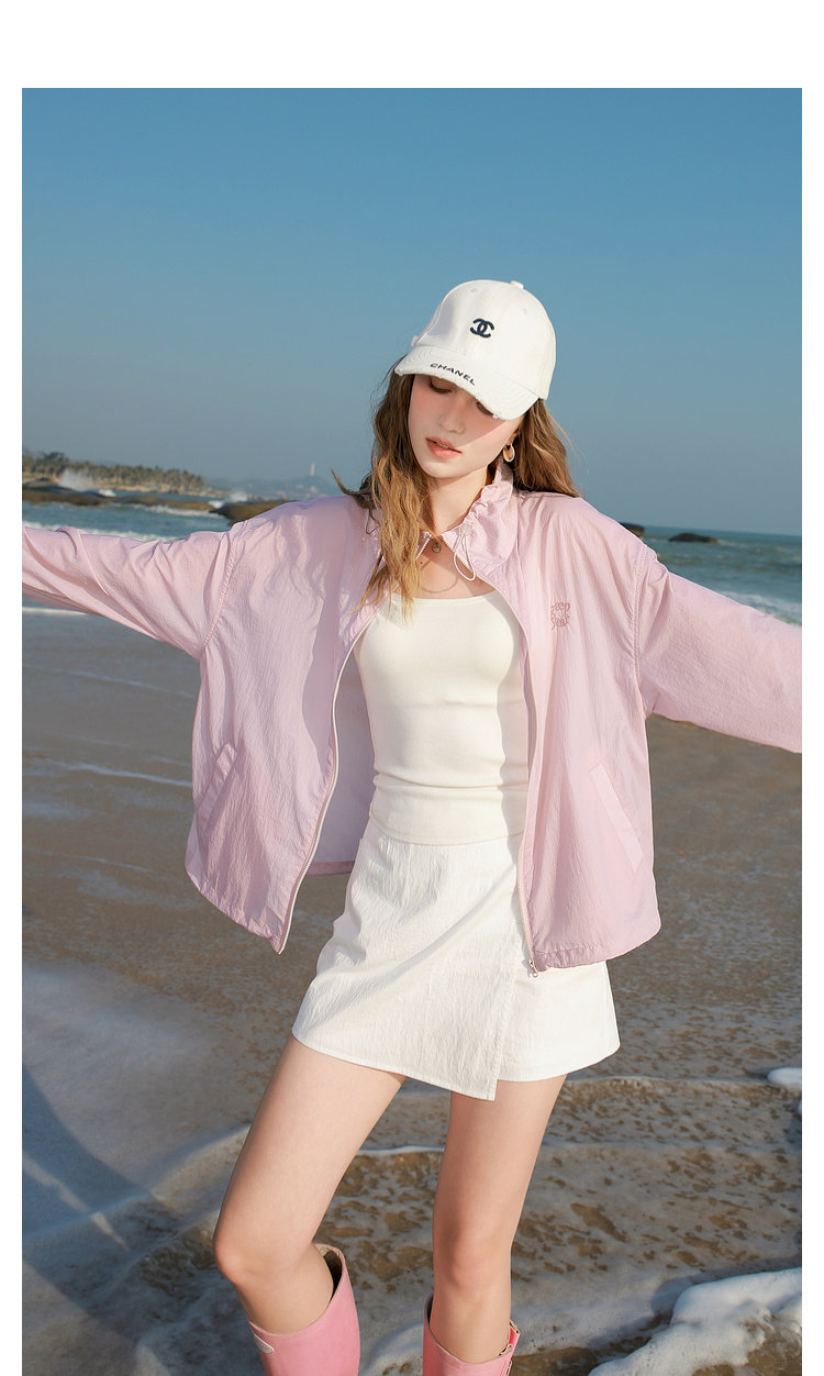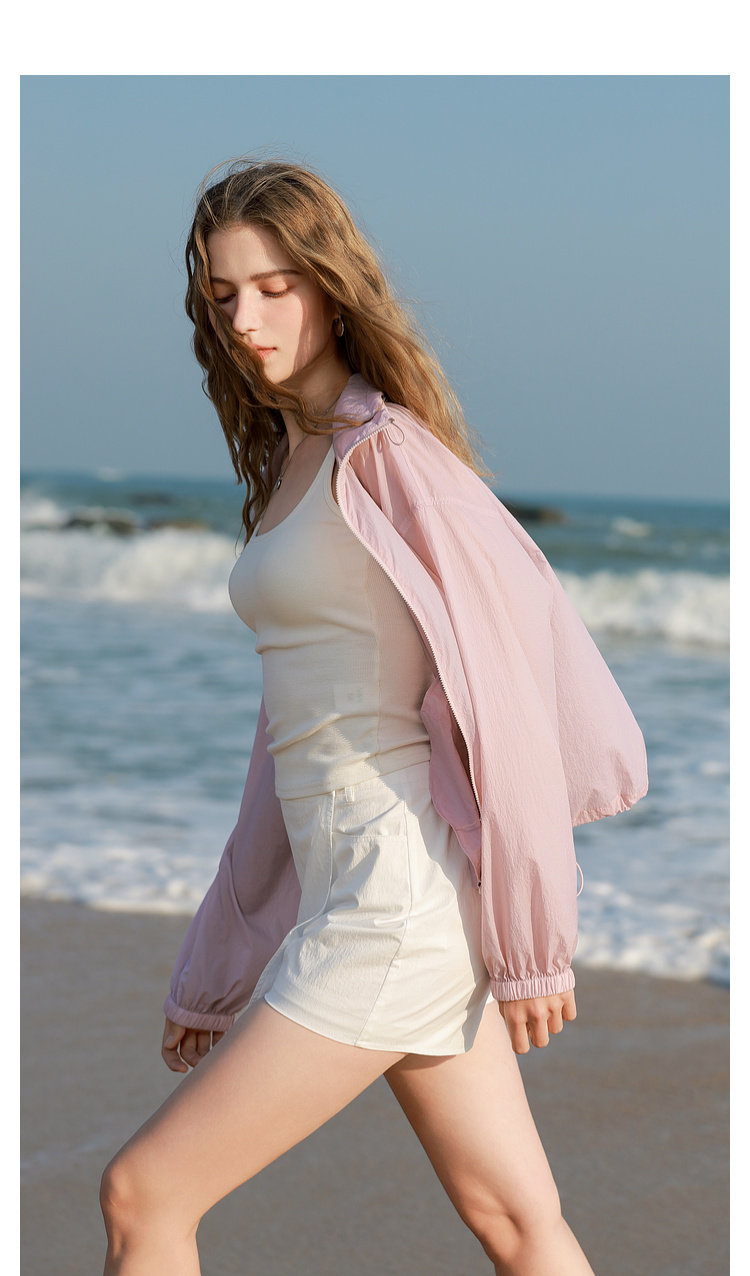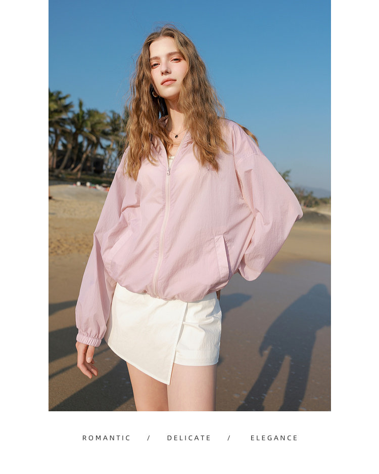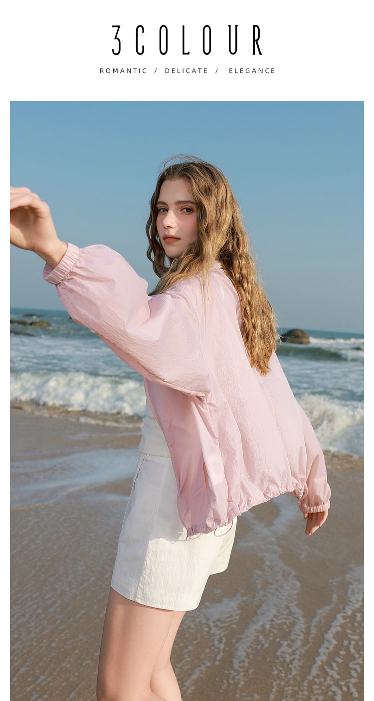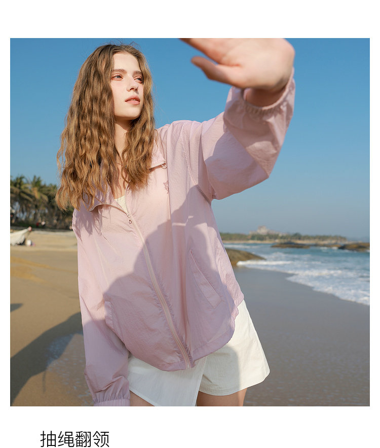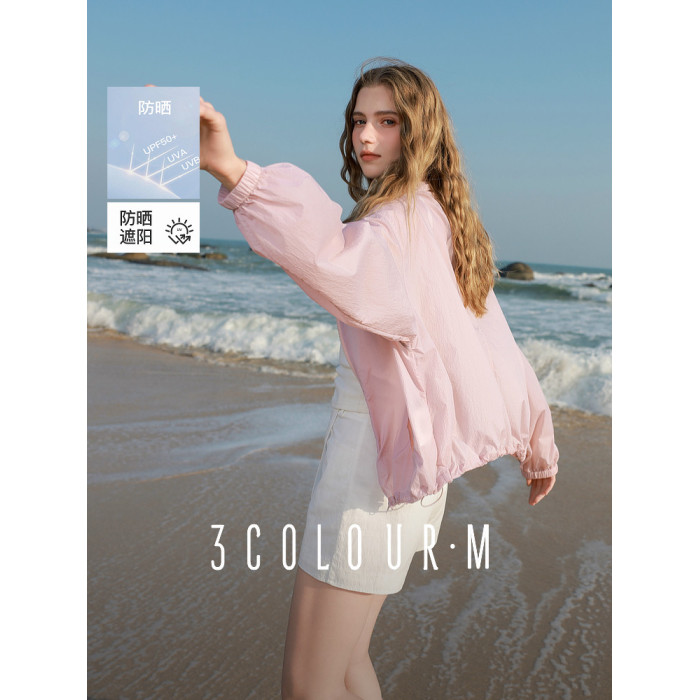 三彩2025春季新款寬鬆短款防曬衫輕薄小外套防紫外線戶外M